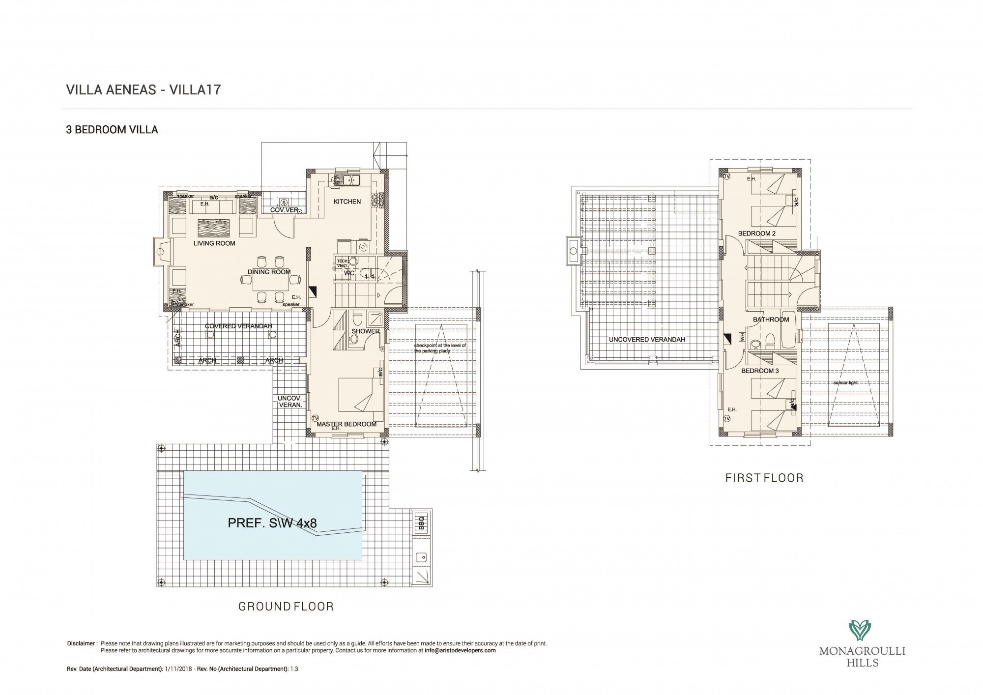 Located in a prime residential area on the outskirts of Limassol, comprising modern 2 and 3 bedroom villas on large plots.Contemporary architectural design combining external use of stone, built to the highest specifications. Not far from Limassol's renowned 'Governors' and 'St. George' beaches with organised water sports facilitiest.These villas for sale are considered to be a great investment opportunity. The project includes only a range of villa designs (two storey and bungalows) all with private swimming pools and roof gardens. The development is gated for added privacy. The benefits of these villas project is its location, in an unspoiled area surrounded by rich vegetation and fields, its low density building ratio ensuring privacy, space and ample green areas. Within 10 minutes walking distance is the picturesque village square! It also has easy access to Limassol town, all the amenities and various golden sandy beaches.