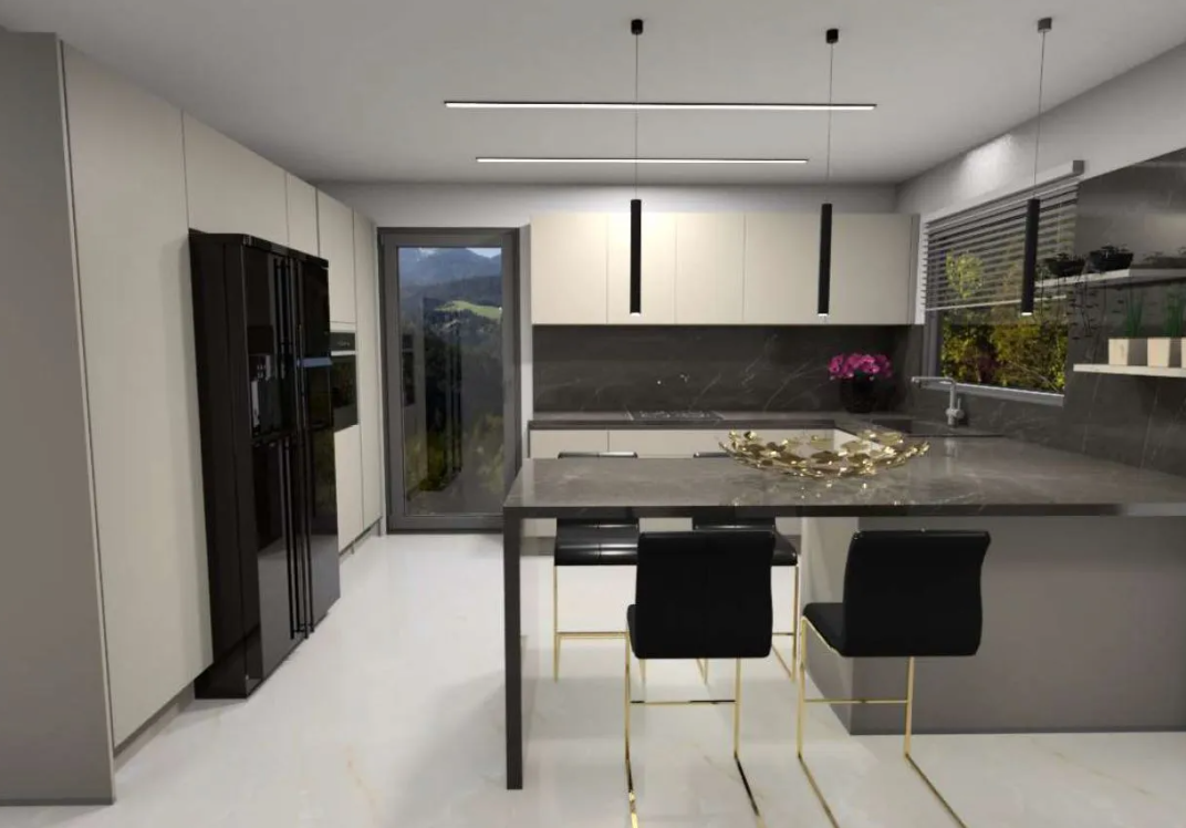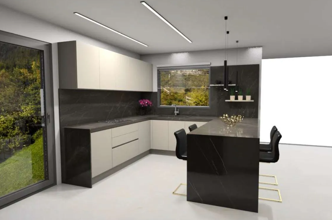 It offers 3 bedrooms (1 master with en-suite WC/shower), a bright open-plan kitchen, dining, and living space, and a two-sided energy fireplace for aesthetic warmth and comfort.