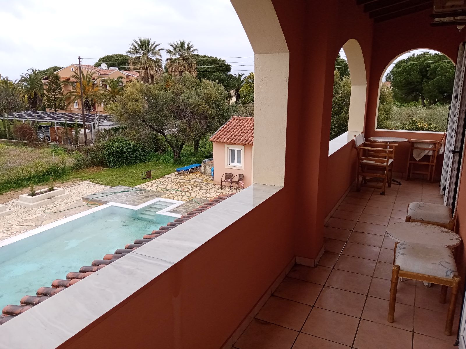 A 158sqm villa with a swimming pool within a fenced plot of 2000sqm, with a sea view , and close to the sea in Almiros Acharavis.