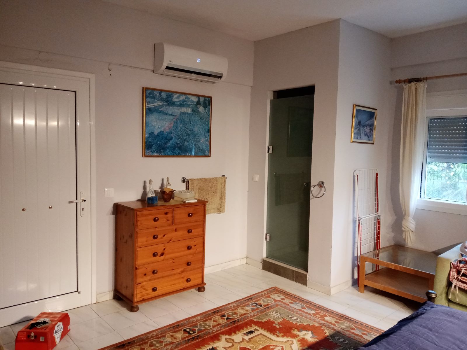 The residence consists of a two-story section, which consists of a bedroom, bathroom, kitchen, dining room in a single space with the living room on the ground floor, while the first floor consists of two bedrooms and a bathroom. There is also a studio, i.e. a bedroom with w.c and a separate shower.