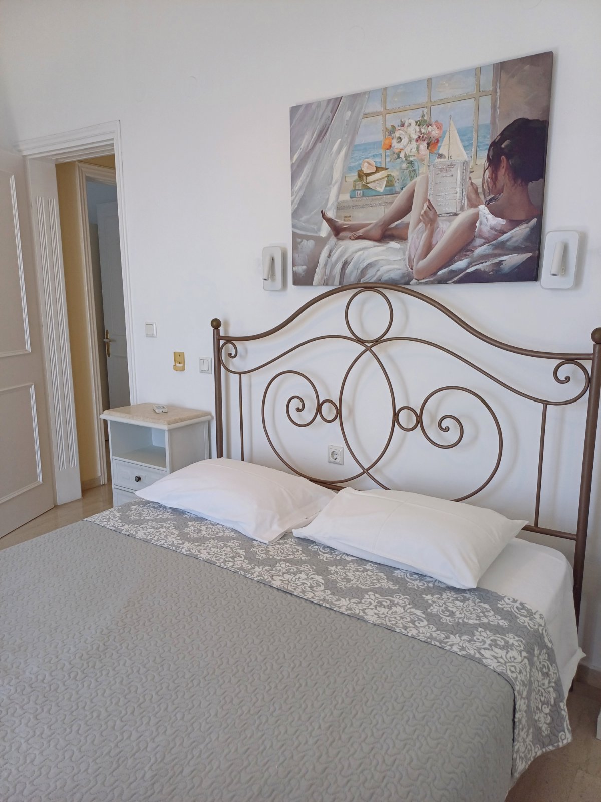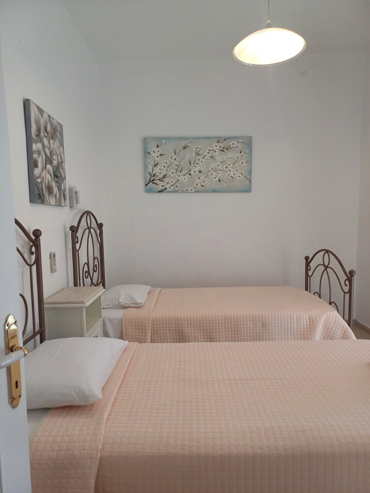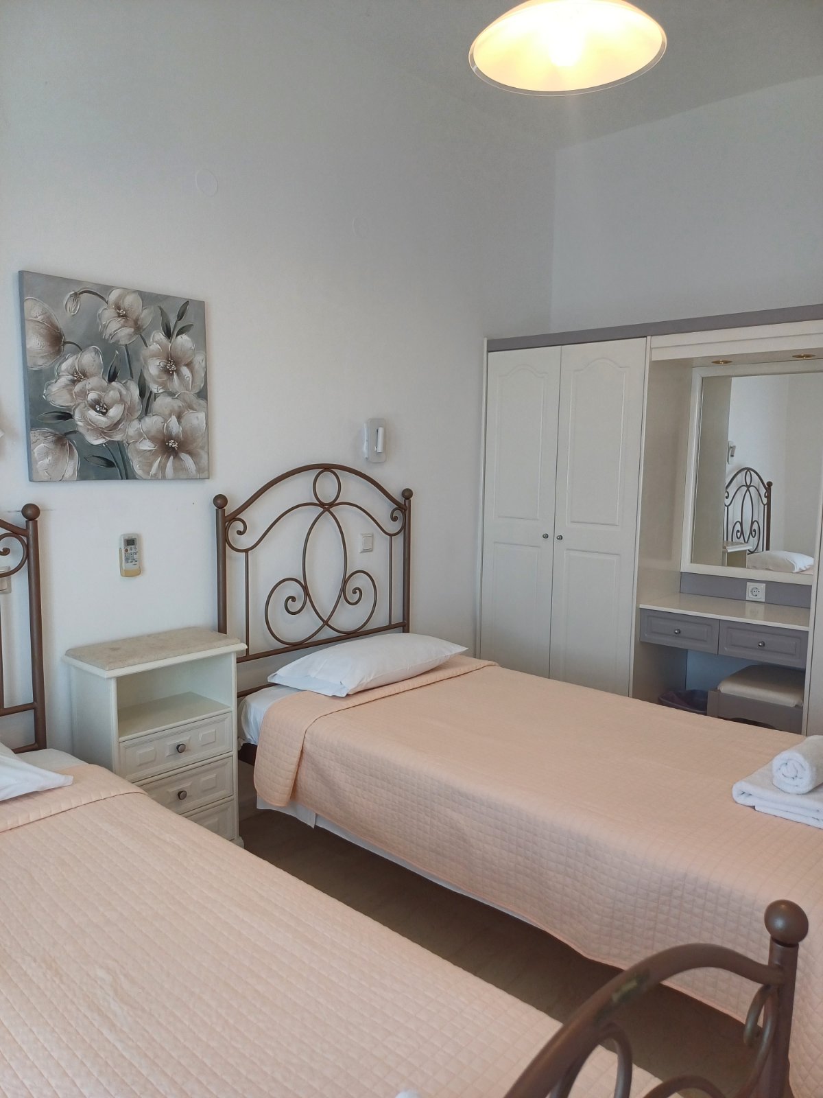 The outside area is beautifully landscaped with trees and flowers. At the edge of the garden there is a sitting area where one can enjoy the sea and the beautiful sunset in the afternoon. The maisonettes are located in a plot of land with olive groves and combine unobstructed views of the sea and greenery.