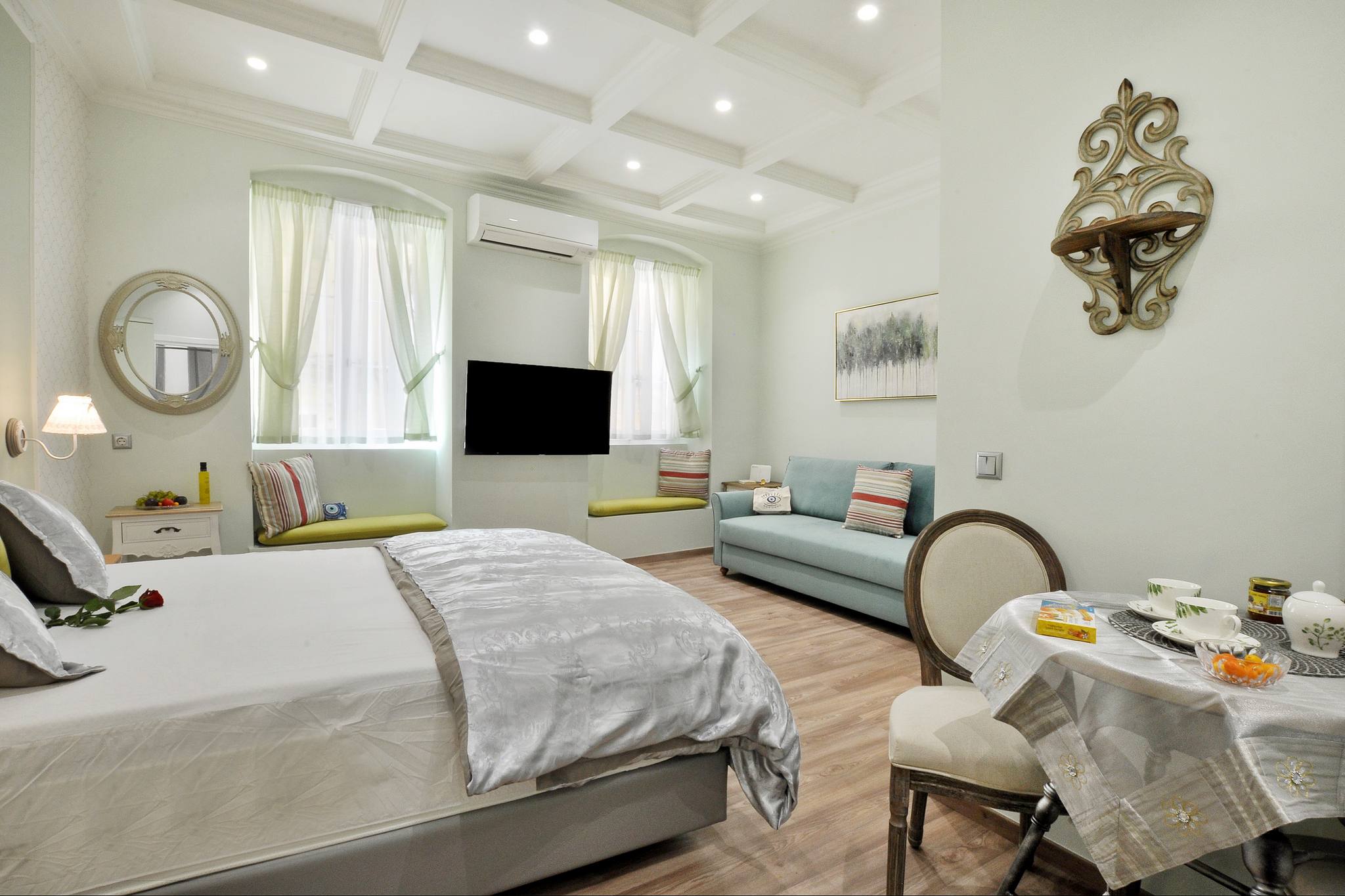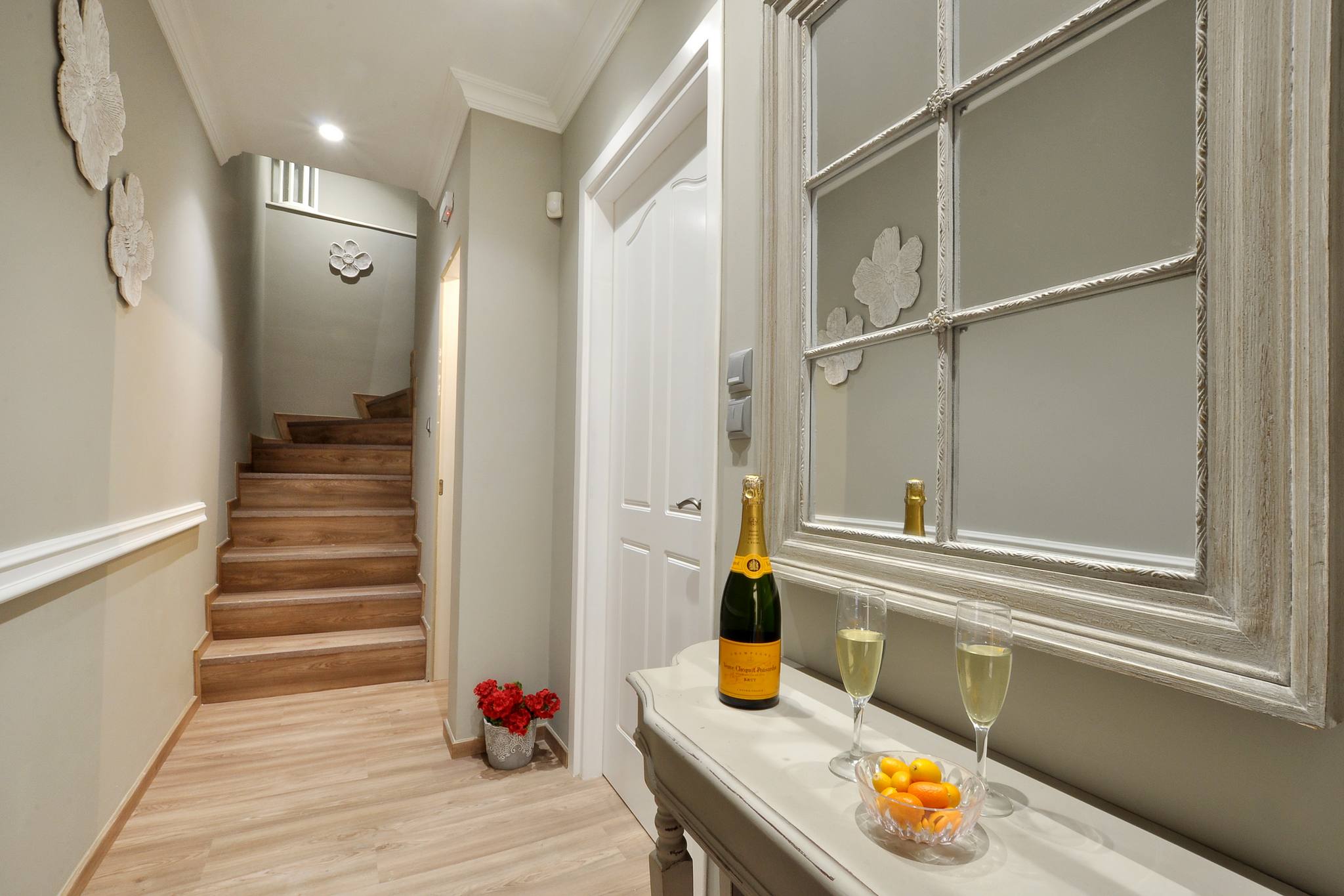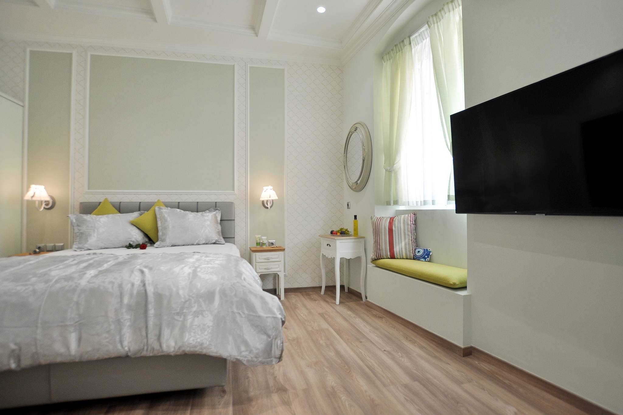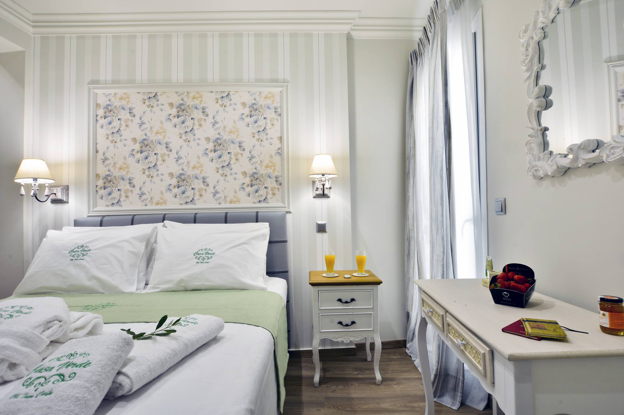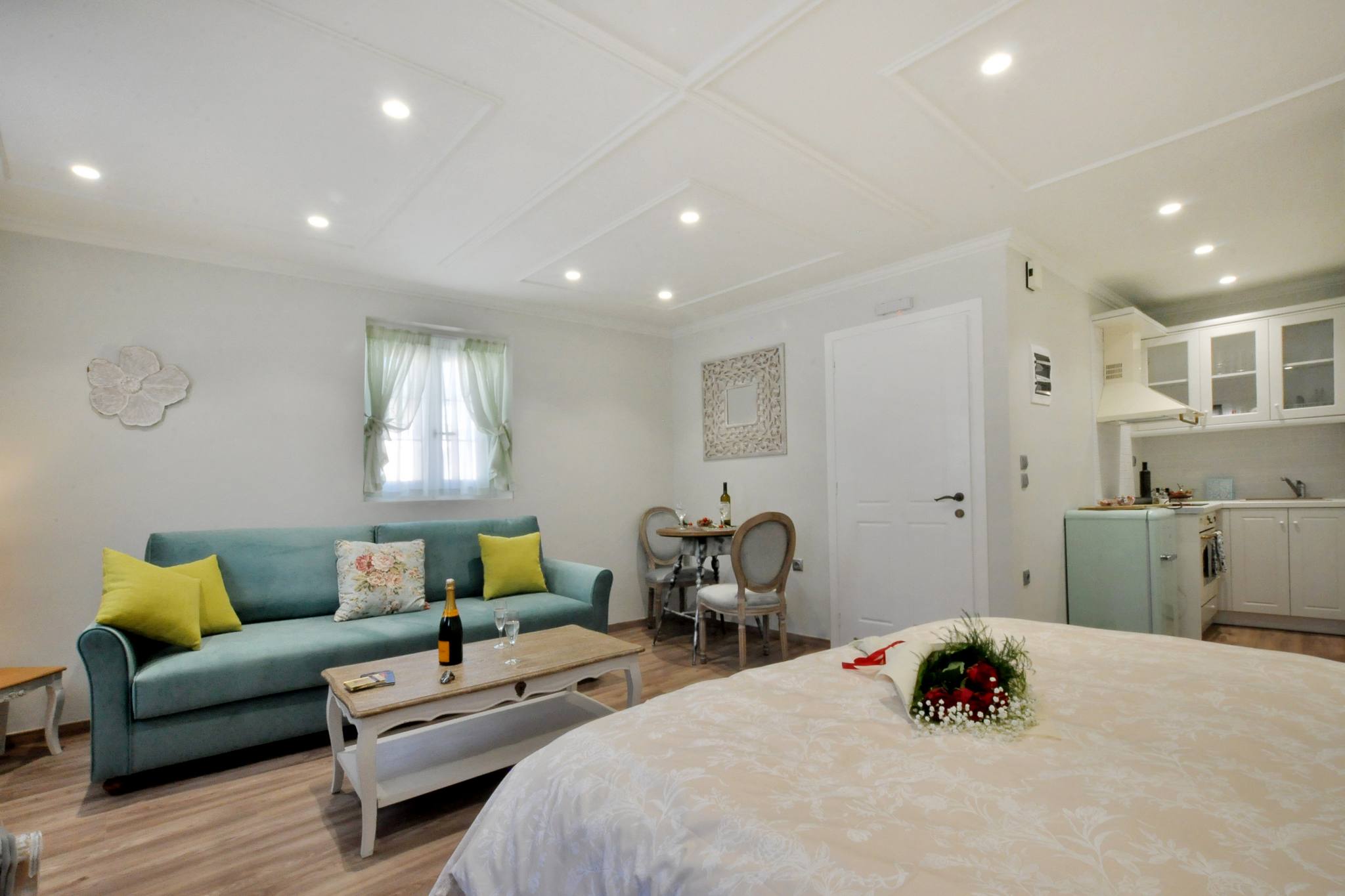 Today the building has been radically restored and renovated with natural materials and concerning its past and history. It consists of ground floor, 1st, 2nd and 3rd floor, 210sq.m total area approx. Internally, it has two staircases divided into 7 independent apartments (studios) from 18sq.m to 30sq.m, fully equipped, and decorated with elegant furniture and wooden floors. The decor exudes old-time glamor adapted to today. Large windows on both sides of the floors ensure adequate lighting and ventilation. In each studio apartment, there are fully equipped bathrooms, double beds, TVs, a/c, wardrobes, armchairs, tables, sofas, refrigerators, electric cookers, extractor hoods, kitchen cabinets, decorative elements, and small furniture, as well as small appliances-safes, clothes iron, fire extinguishers and clothing for hosting customers. On the ground floor, there are 2 washer-dryers and 3 ironing presses in specially designed work areas. For the largest part of the building, a license has been issued by the E.O.T. with benefits at the level of 3 keys.
