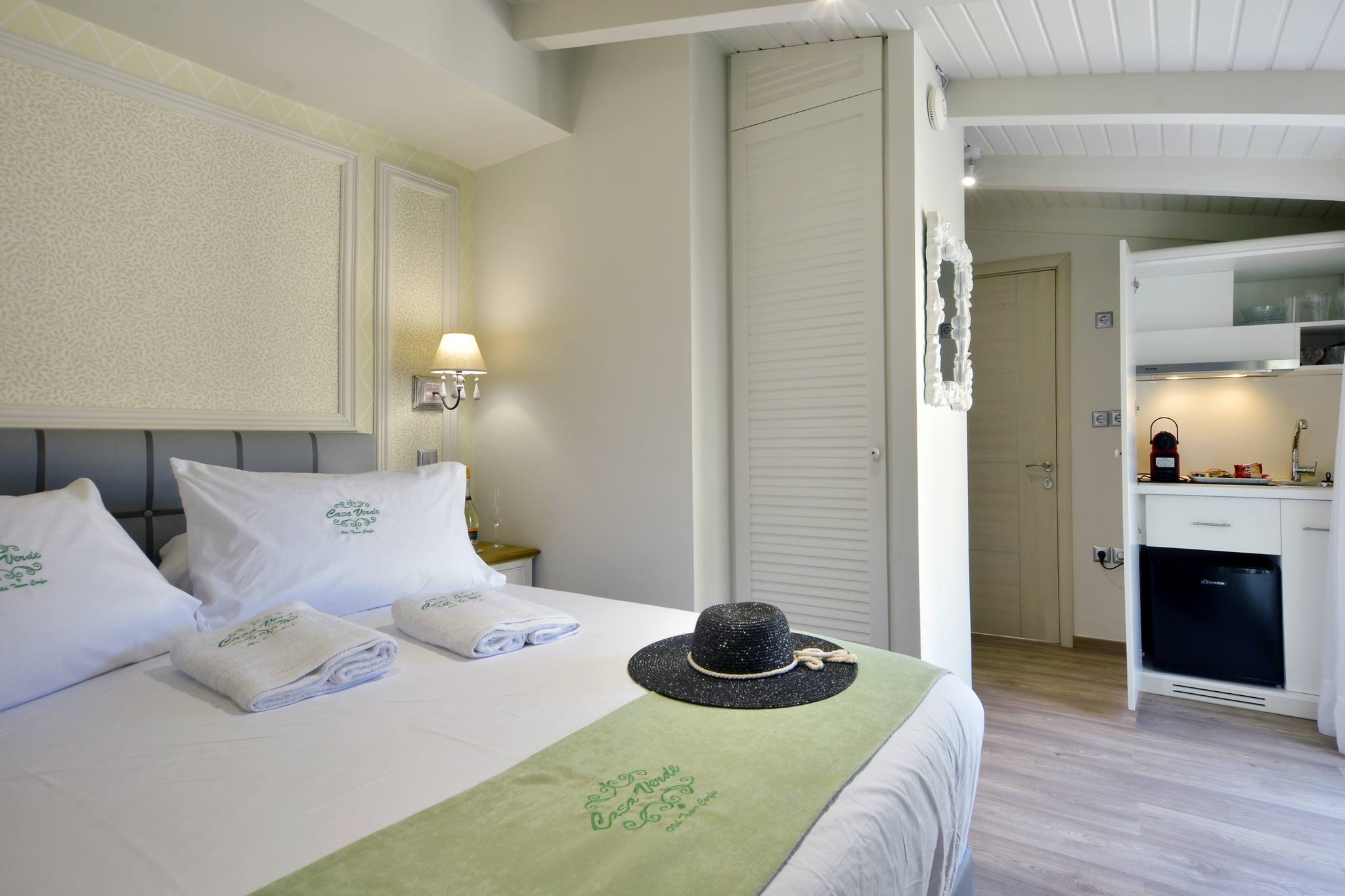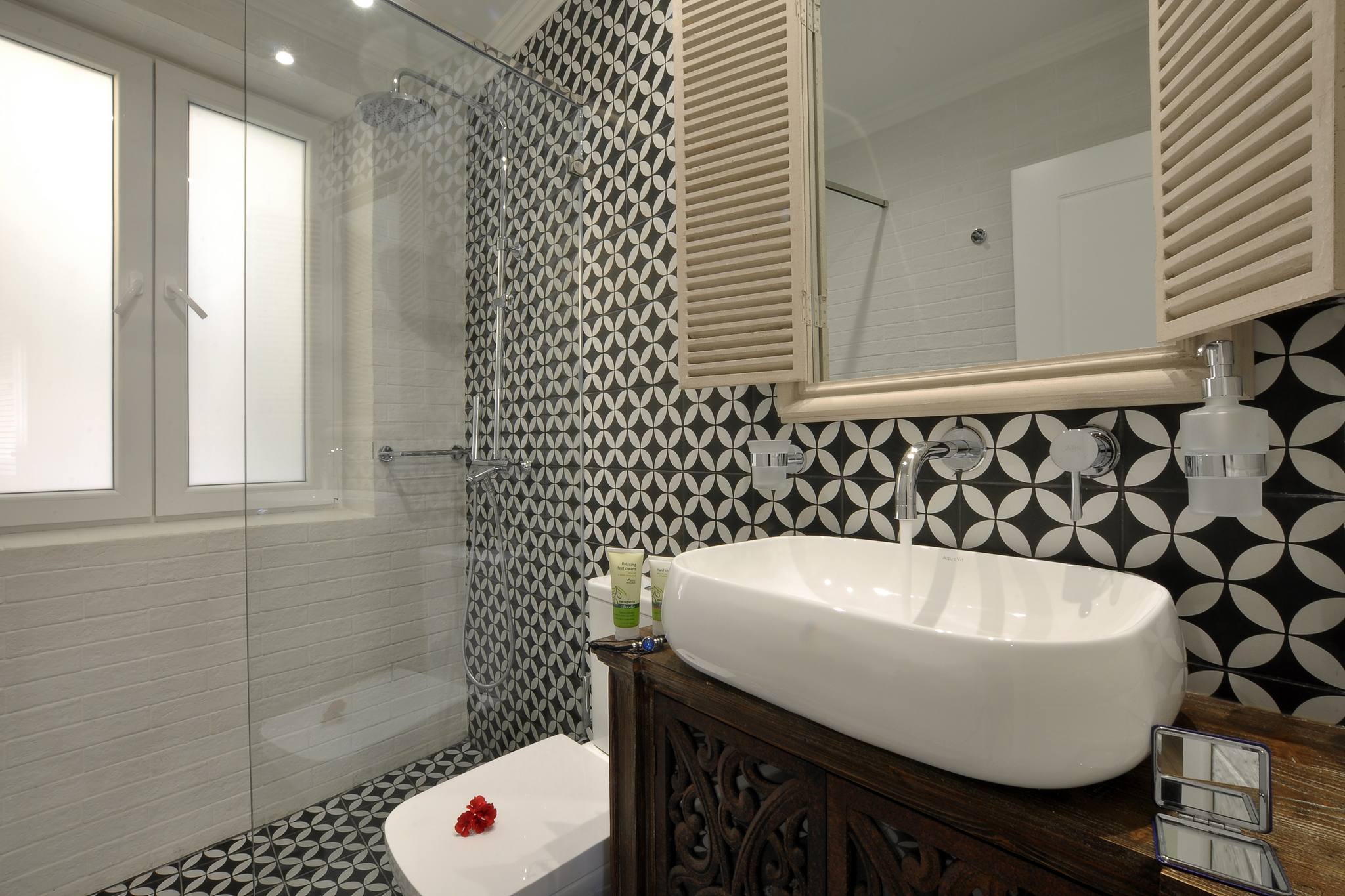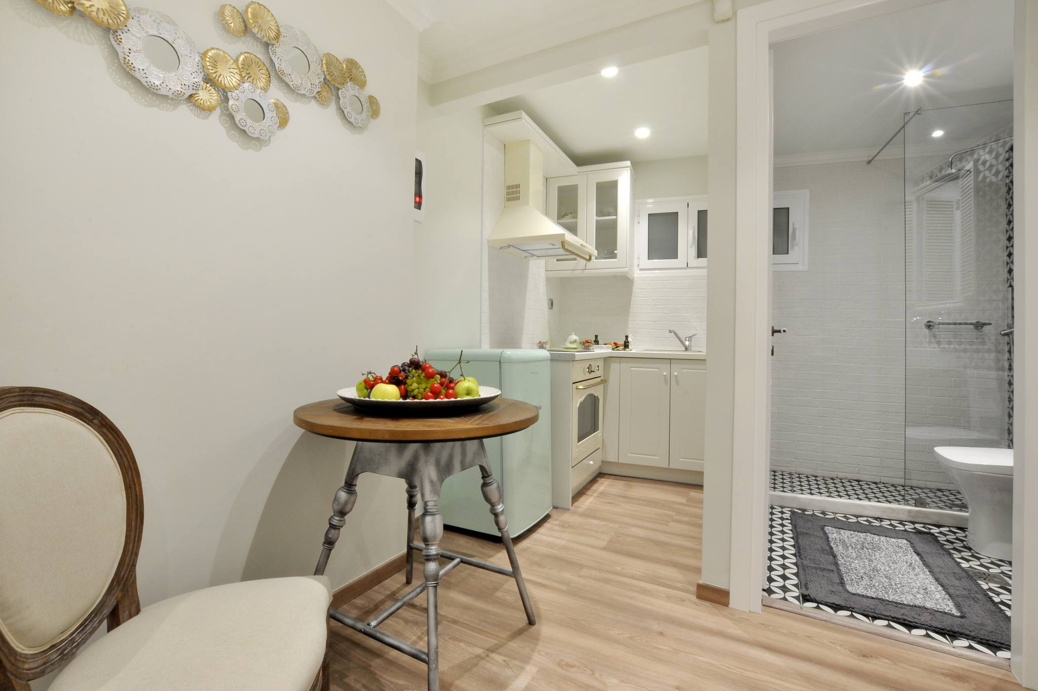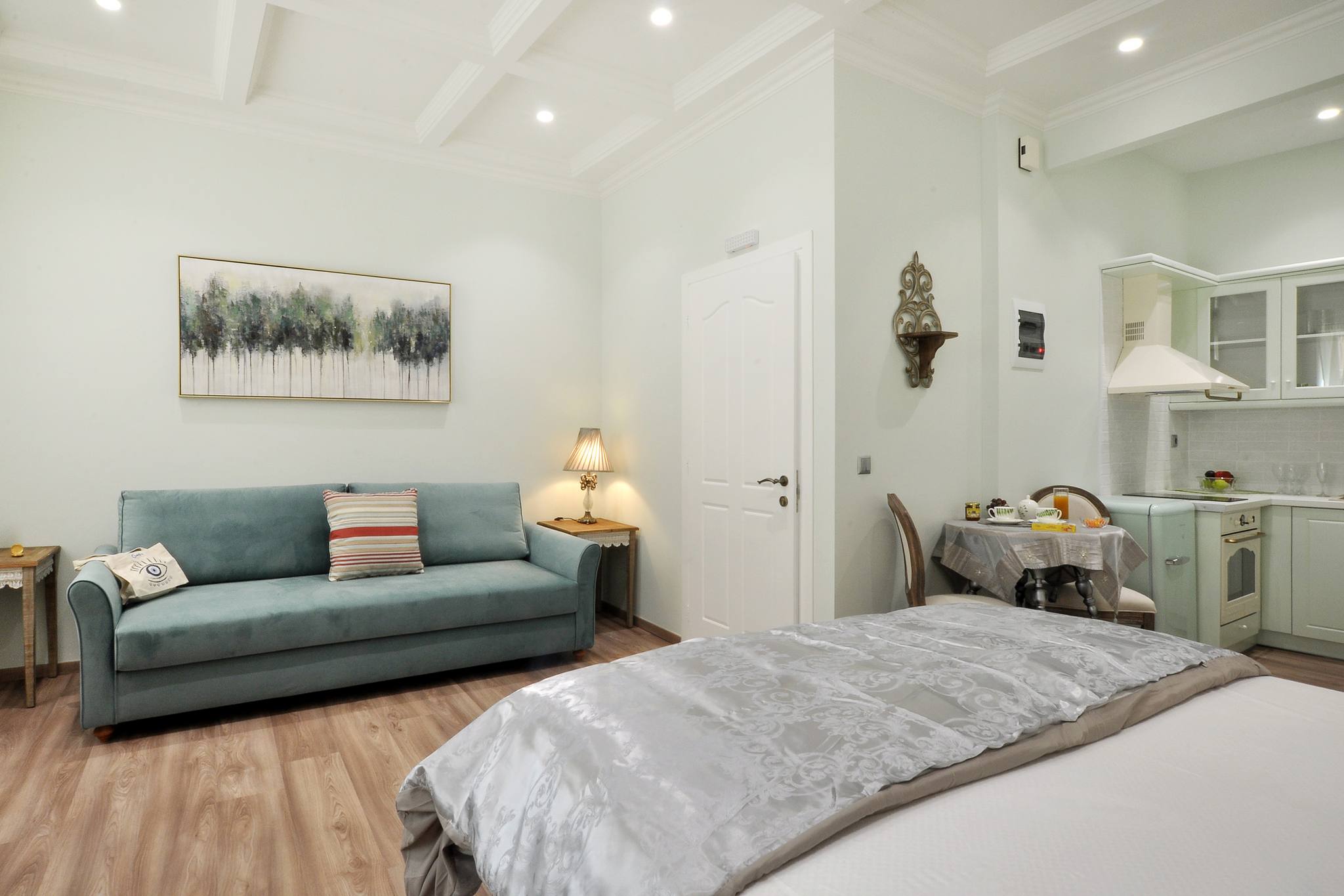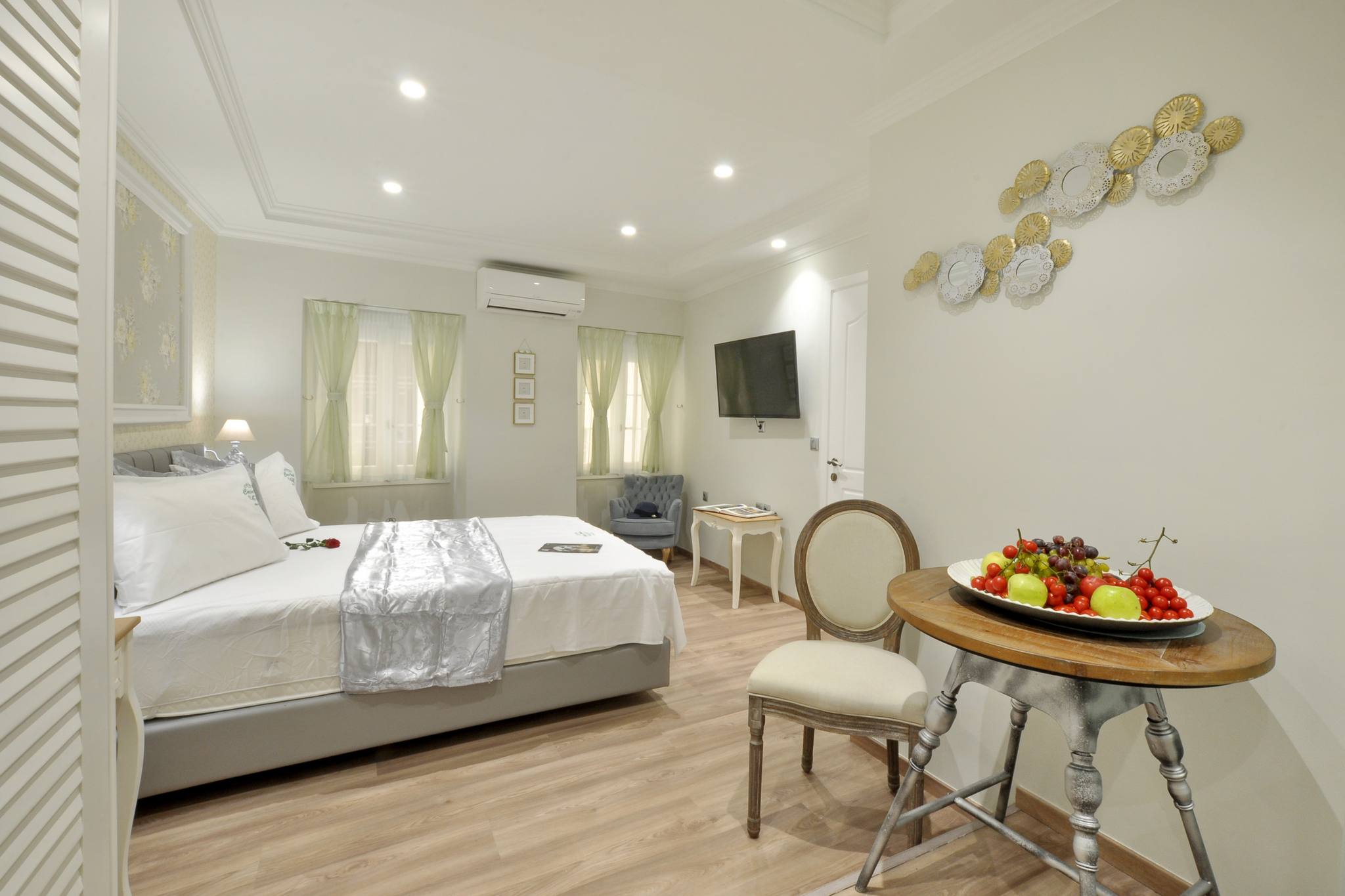 Today the building has been radically restored and renovated with natural materials and concerning its past and history. It consists of ground floor, 1st, 2nd and 3rd floor, 210sq.m total area approx. Internally, it has two staircases divided into 7 independent apartments (studios) from 18sq.m to 30sq.m, fully equipped, and decorated with elegant furniture and wooden floors. The decor exudes old-time glamor adapted to today. Large windows on both sides of the floors ensure adequate lighting and ventilation. In each studio apartment, there are fully equipped bathrooms, double beds, TVs, a/c, wardrobes, armchairs, tables, sofas, refrigerators, electric cookers, extractor hoods, kitchen cabinets, decorative elements, and small furniture, as well as small appliances-safes, clothes iron, fire extinguishers and clothing for hosting customers. On the ground floor, there are 2 washer-dryers and 3 ironing presses in specially designed work areas. For the largest part of the building, a license has been issued by the E.O.T. with benefits at the level of 3 keys.
