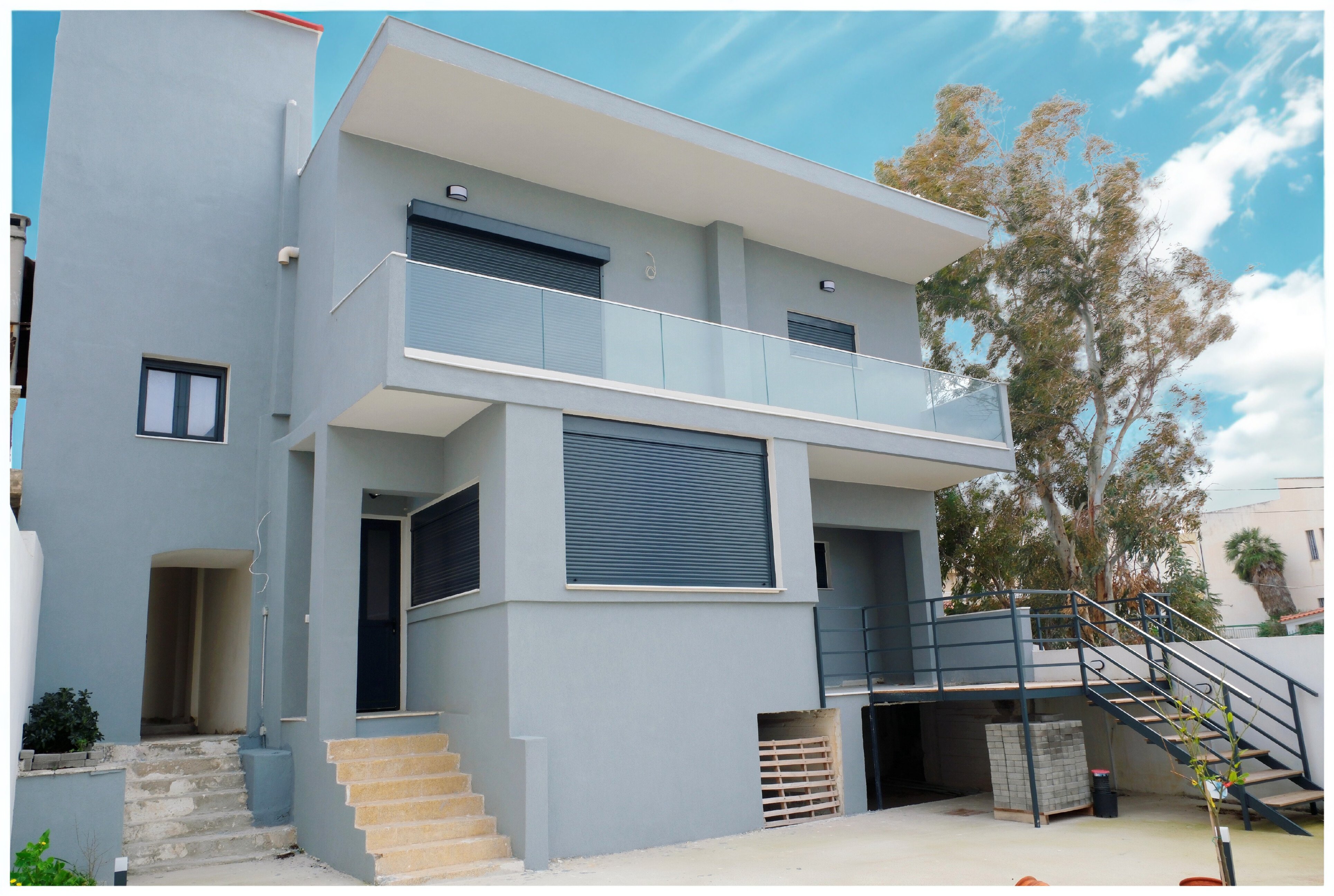 Beyond aesthetics, the renovation was comprehensive and technical. All utilities were replaced, solar panels and hot water systems were installed, waterproofing was completed, electric blinds reinforced, and security infrastructure prepared. The reinforced concrete structure complies with seismic regulations, offering peace of mind as well as comfort. Marble floors and architectural lighting add elegance throughout the interior and courtyard.