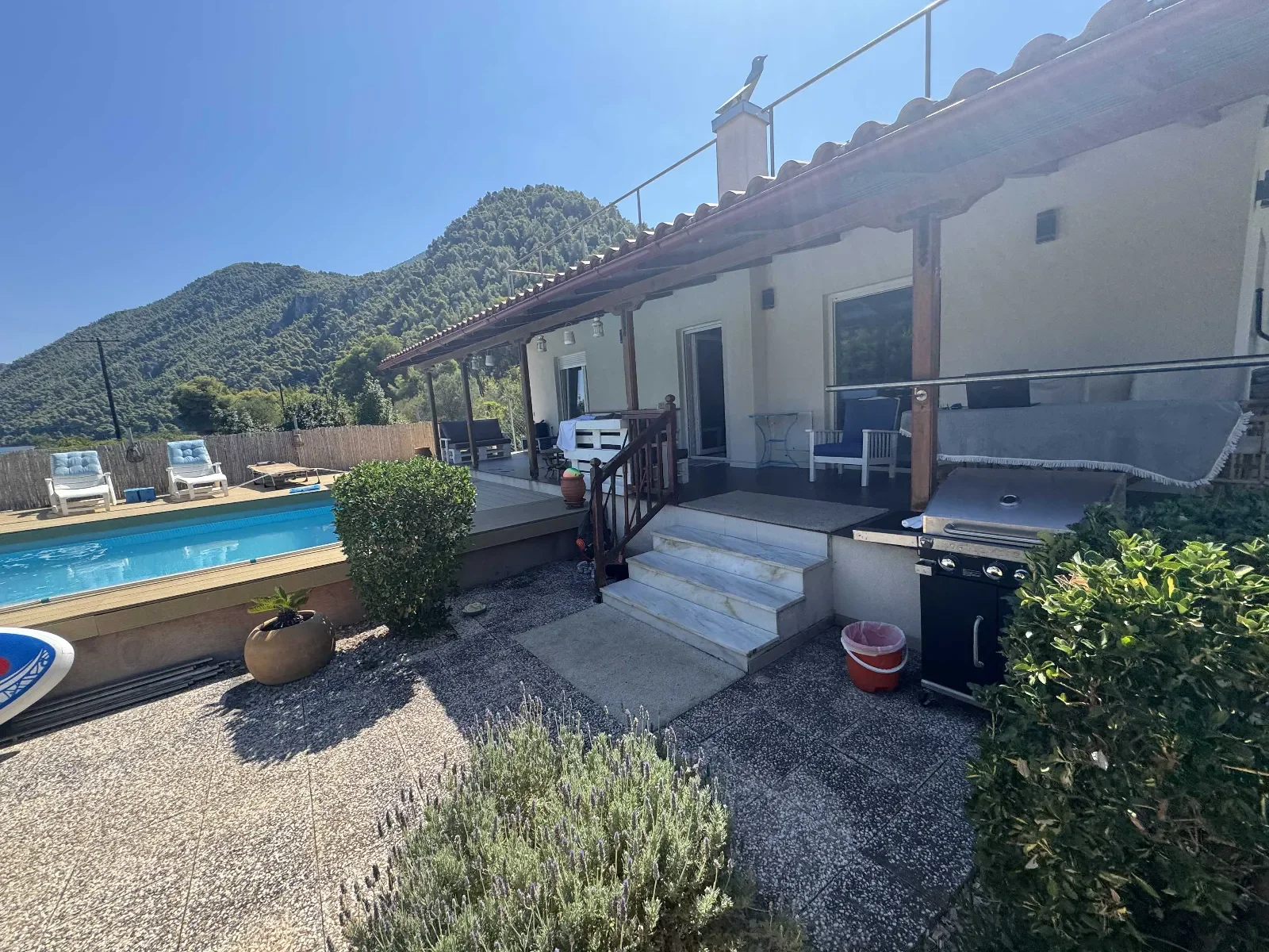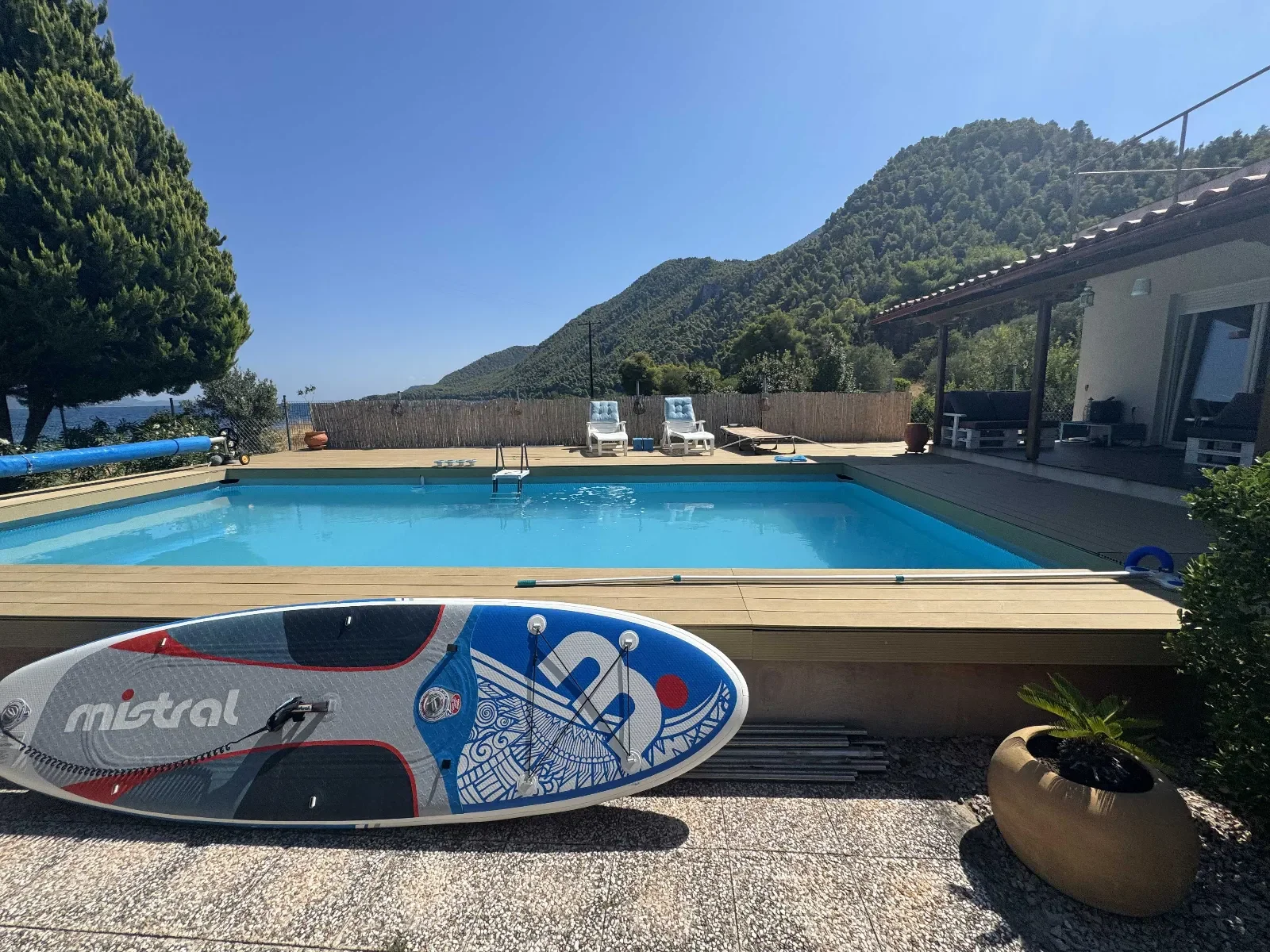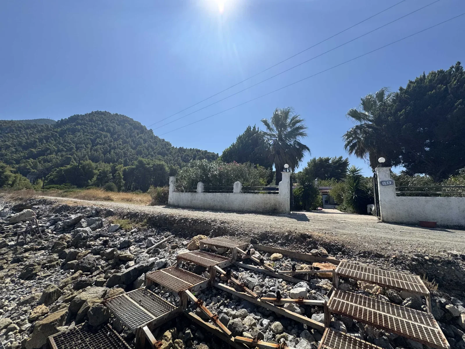 Practically speaking, the property is fully self-sufficient and well-equipped. Three-phase electricity, a well with a water purification system, full insulation including 10cm styrofoam throughout the roof and walls, air conditioning, and an automatic Italian pellet stove for central heating, everything needed for comfortable year-round living.