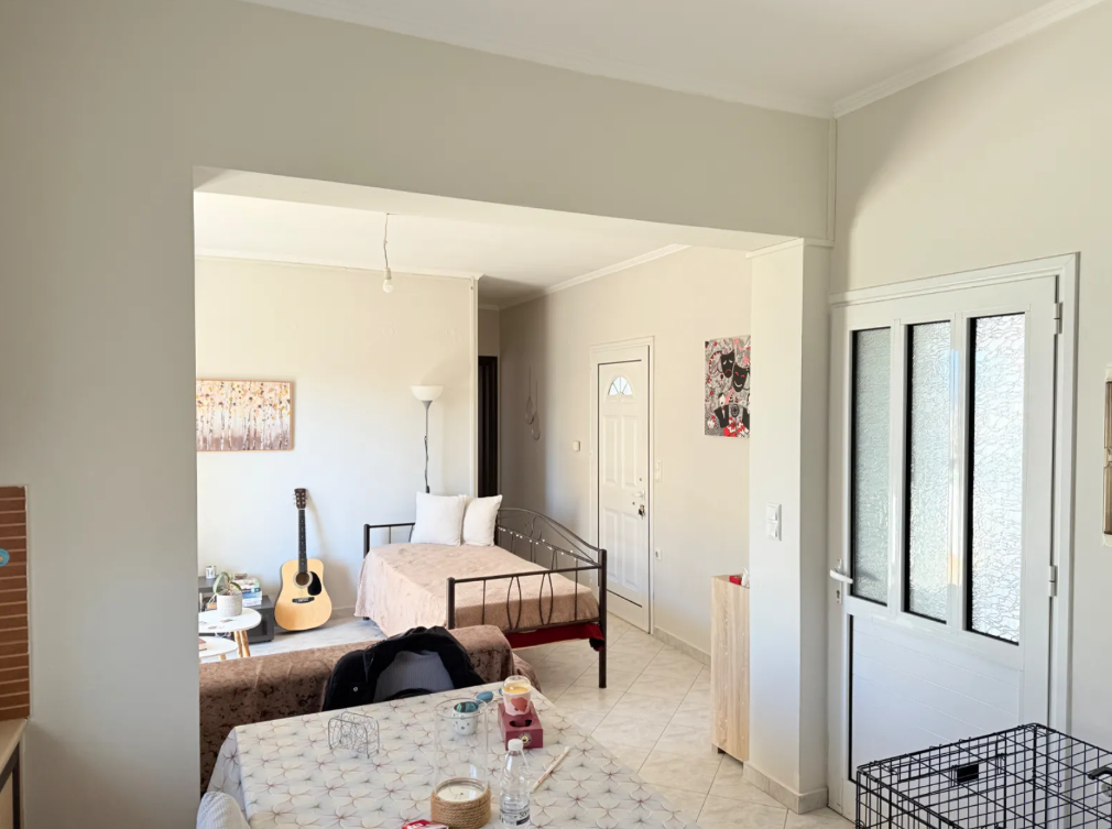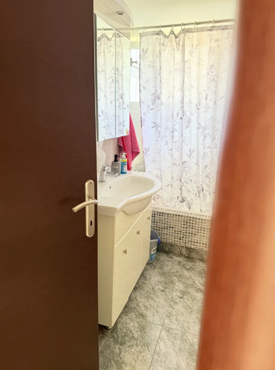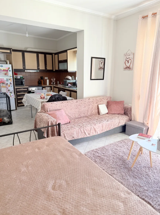 Current layout 53 m²: open-plan living-kitchen, 1 bedroom, bathroom; excellent condition, fully furnished.