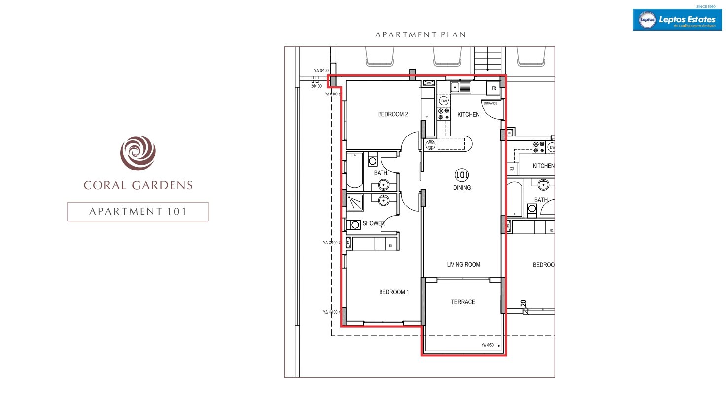 Coral Gardens Apartment No. 101 is located within the Coral Gardens project, nestled on the outskirts of Paphos Town in the enchanting Coral Bay. The property offers a lifestyle of unparalleled sophistication and contemporary elegance. Meticulously designed with a keen eye for detail, these residences stand as a testament to architectural finesse, blending modern aesthetics with the warmth of a Mediterranean atmosphere. The development provides easy access to the crystal-clear waters of the sea, inviting residents to embrace a coastal living experience enriched by the beauty of the surrounding landscape. Immersed in a tapestry of natural beauty, Coral Gardens introduces a harmonious blend of communal amenities and private sanctuaries. The communal swimming pool and meticulously landscaped gardens create spaces for relaxation and socializing, while the nearby Coral Beach Resort and Spa, archaeological sites, and blue flag awarded beaches beckon exploration. The thoughtful integration of these elements fosters a sense of community while allowing residents to enjoy the serenity of their private retreats.