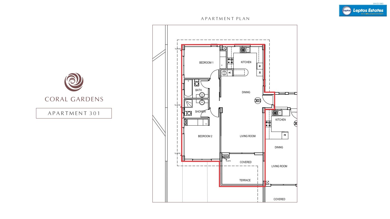 Coral Gardens Apartment No. 301 is located within the Coral Gardens project, nestled on the outskirts of Paphos Town in the enchanting Coral Bay. The property offers a lifestyle of unparalleled sophistication and contemporary elegance. Meticulously designed with a keen eye for detail, these residences stand as a testament to architectural finesse, blending modern aesthetics with the warmth of a Mediterranean atmosphere. The development provides easy access to the crystal-clear waters of the sea, inviting residents to embrace a coastal living experience enriched by the beauty of the surrounding landscape. Immersed in a tapestry of natural beauty, Coral Gardens introduces a harmonious blend of communal amenities and private sanctuaries. The communal swimming pool and meticulously landscaped gardens create spaces for relaxation and socializing, while the nearby Coral Beach Resort and Spa, archaeological sites, and blue flag awarded beaches beckon exploration. The thoughtful integration of these elements fosters a sense of community while allowing residents to enjoy the serenity of their private retreats.
