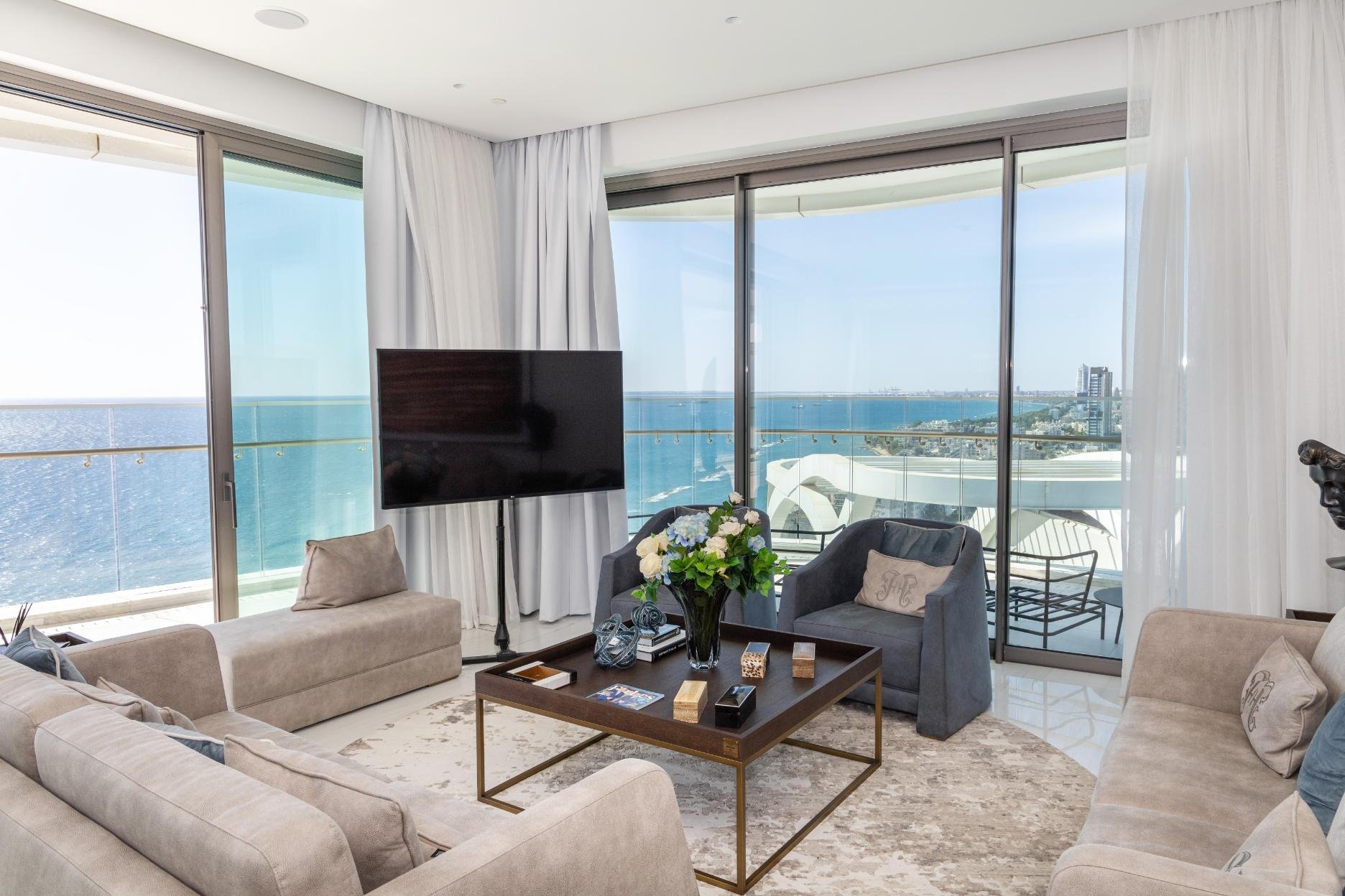 Limassol Del Mar Penthouse c2101 is a Seafront penthouse that enjoys breathtaking views of the Mediterranean Sea at every angle. Being part of Limassol Del Mar, it expresses the island's 'new wave' of architecture through its unique high-rise curvilinear design. It is strategically located right on the Limassol seafront, easily accessible and very close to the city's luxury hotels in the heart of the city's most vibrant and prestigious area. Limassol Del Mar, with its five-star services and facilities, will blend with a collection of gastronomic and shopping experiences at Cyprus' most sought-after residential and leisure address. Invest in property in Limassol, Cyprus, and enjoy a world of benefits.