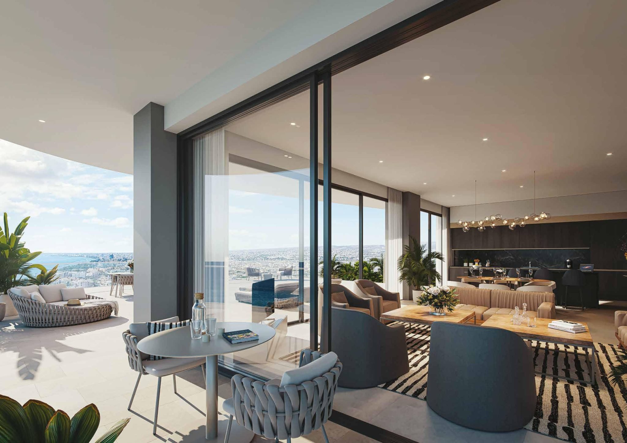 The Ruby Penthouse b1701-1702 is a Seafront 5-bedroom duplex penthouse apartment that enjoys breathtaking views of the Mediterranean Sea at every angle. Being part of Limassol Del Mar, it expresses the island's 'new wave' of architecture through its unique high-rise curvilinear design, which fully capitalises on the plot's long sea frontage. It is strategically located right on the Limassol seafront, easily accessible and very close to the city's luxury hotels in the heart of the city's most vibrant and prestigious area. Limassol Del Mar, with its five-star services and facilities, will blend with a collection of gastronomic and shopping experiences at Cyprus' most sought-after residential and leisure address. Invest in property in Limassol, Cyprus, and enjoy a world of benefits.