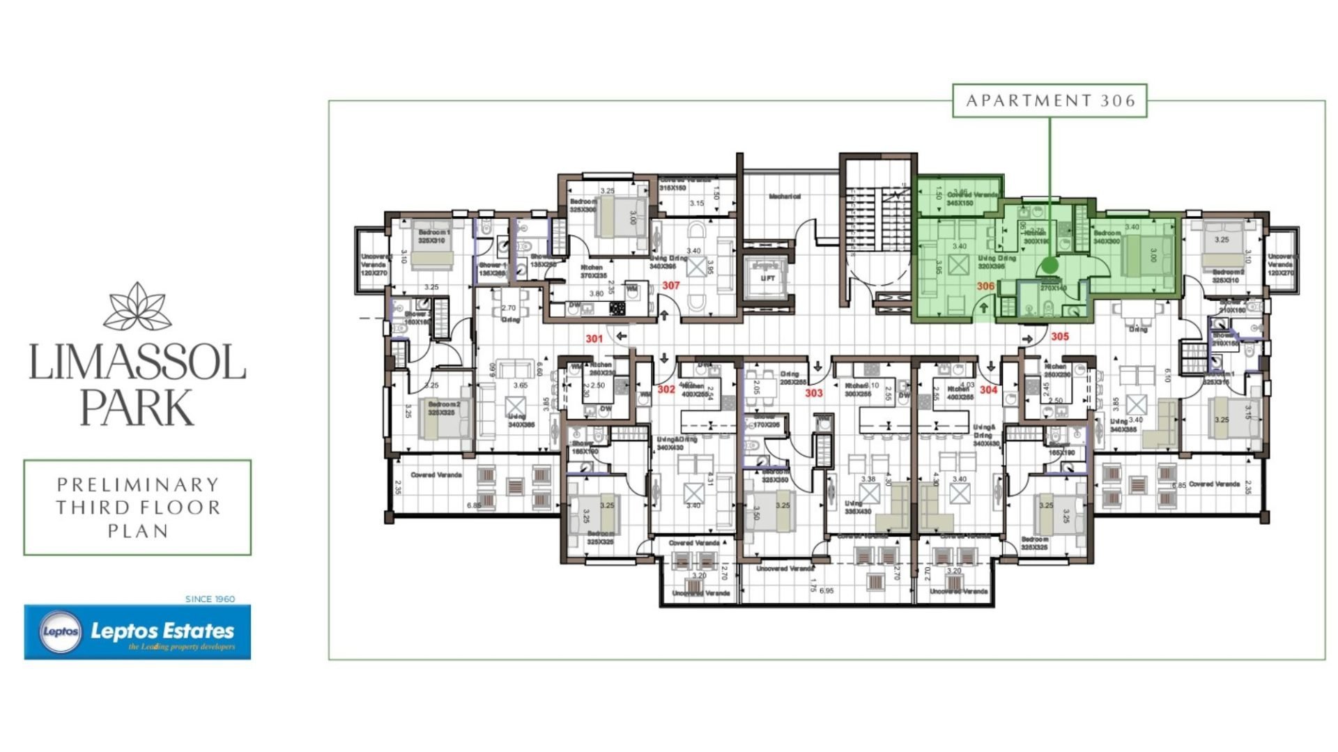 Limassol Park Mimoza Apartment No. 306 is part of the Limassol Park project, conveniently located southwest of the Limassol historic town centre in the Akrotiri Peninsula in one of the city's most upcoming and green areas. Leptos Limassol Park is just a few minutes drive away from Limassol's biggest Shopping Mall, the Fasouri Water Park, the British Sovereign Bases, the unspoilt beaches of Ladie's Mile and Kourion, the international schools and next to the new planned Fassouri Golf Course. Leptos Limassol Park also benefits from Limassol's central location. There is ample parking, a concierge service, and superior finishes. At Leptos Limassol Park emphasis has been given on creating the idyllic surroundings where the benefits of living in Cyprus can be enjoyed to the maximum. Because after all Lifestyle Living can be an affordable luxury.
