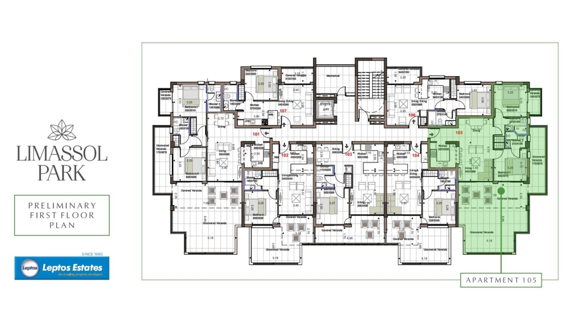 Limassol Park Mimoza Apartment No. 105 is part of the Limassol Park project, conveniently located southwest of the Limassol historic town centre in the Akrotiri Peninsula in one of the city's most upcoming and green areas. Leptos Limassol Park is just a few minutes drive away from Limassol's biggest Shopping Mall, the Fasouri Water Park, the British Sovereign Bases, the unspoilt beaches of Ladie's Mile and Kourion, the international schools and next to the new planned Fassouri Golf Course. Leptos Limassol Park also benefits from Limassol's central location. There is ample parking, a concierge service, and superior finishes. At Leptos Limassol Park emphasis has been given on creating the idyllic surroundings where the benefits of living in Cyprus can be enjoyed to the maximum. Because after all Lifestyle Living can be an affordable luxury.
