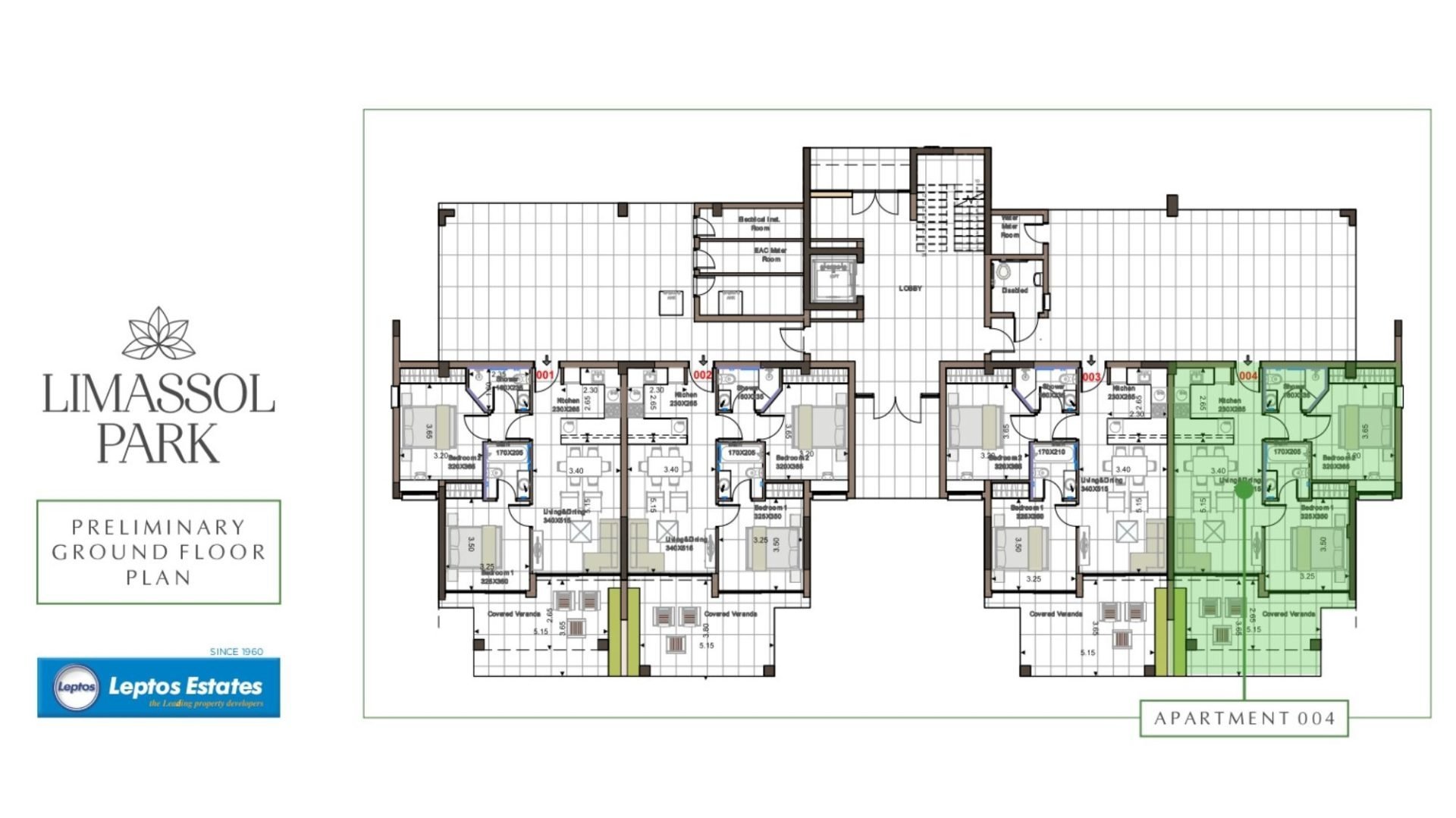 Limassol Park Jasmine Apartment No. 004 is part of the Limassol Park project, conveniently located southwest of the Limassol historic town centre in the Akrotiri Peninsula in one of the city's most upcoming and green areas. Leptos Limassol Park is just a few minutes drive away from Limassol's biggest Shopping Mall, the Fasouri Water Park, the British Sovereign Bases, the unspoilt beaches of Ladie's Mile and Kourion, the international schools and next to the new planned Fassouri Golf Course. Leptos Limassol Park also benefits from Limassol's central location. There is ample parking, a concierge service, and superior finishes. At Leptos Limassol Park emphasis has been given on creating the idyllic surroundings where the benefits of living in Cyprus can be enjoyed to the maximum. Because after all Lifestyle Living can be an affordable luxury.