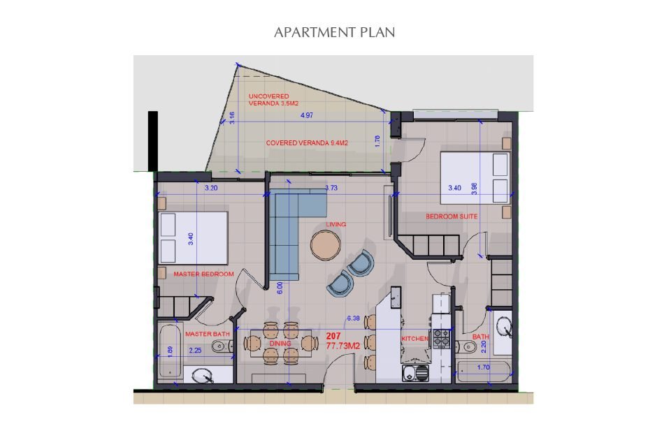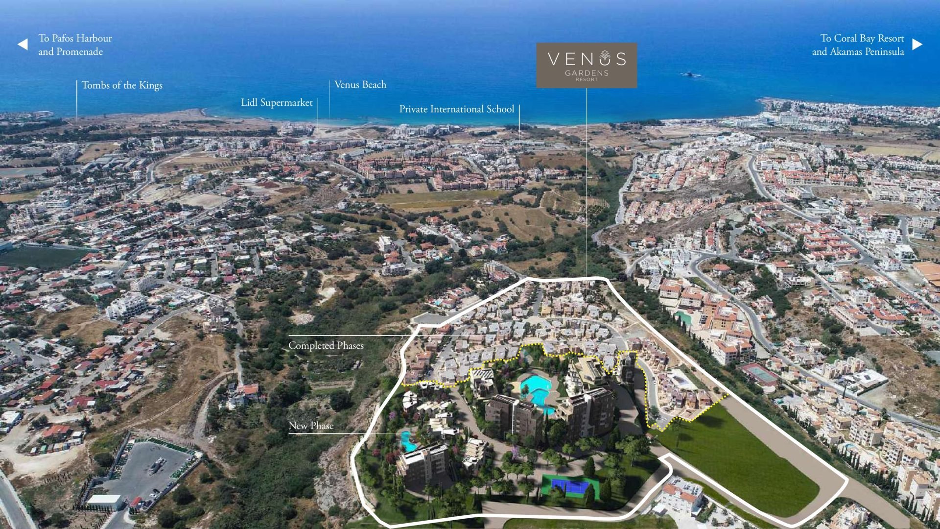 Venus Gardens Apartment No. 207 is located within a unique residential resort, just a short walk from the Paphos coastline and the blue waters of the Mediterranean Sea. These hilltop homes in Chloraka have a relaxing contemporary design with distinct Mediterranean features. All living areas have direct access to large verandas, terraces and gardens which surround the properties. All interior designs allow the sun and air to flow through. Venus Gardens is a luxury gated community that will boast large communal greens, two communal swimming pools, a clubhouse as well as a tennis court. In this special collection of exclusive homes, you will experience a mix of design and architecture with traditional features, comfort and construction into Mediterranean living. Mediterranean references to Cypriot stone villas, volumes, openings, large covered outdoor spaces, materials, stone, plaster, wood, tiled roofs, earthy colours, Mediterranean landscaped gardens.