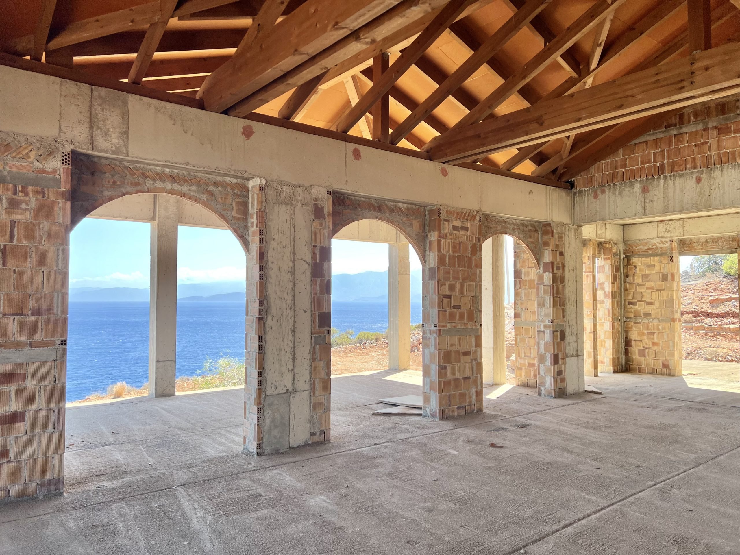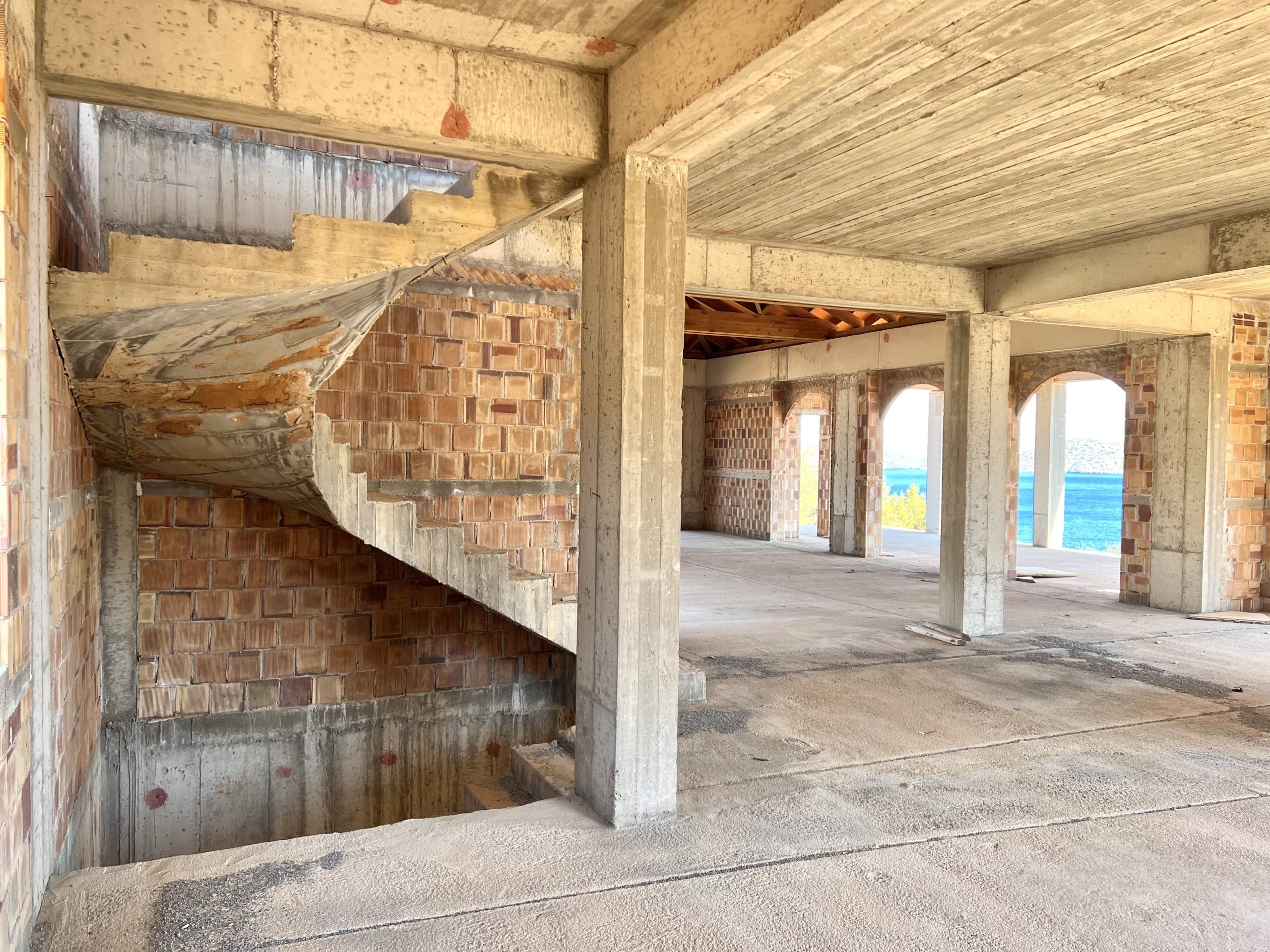 The villa is ideally positioned only 50 meters from the shoreline, ensuring uninterrupted vistas and a serene sense of privacy. Its six spacious bedrooms, each with a private bathroom, provide exceptional comfort and privacy for family and guests. Expansive living areas with floor-to-ceiling windows connect seamlessly to the terraces, allowing the coastal landscape to become part of everyday living. The kitchen, ready for customization, offers the perfect canvas for tailored functionality, whether for intimate family use or sophisticated entertaining.