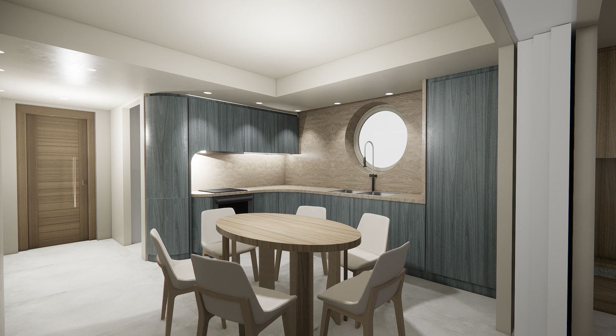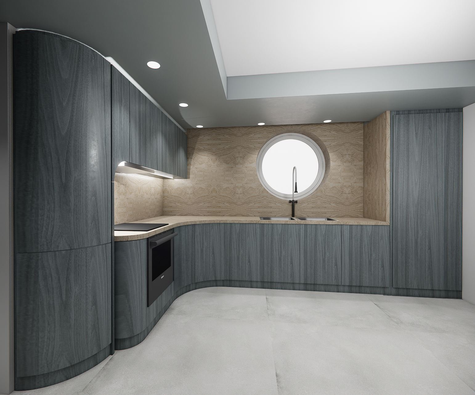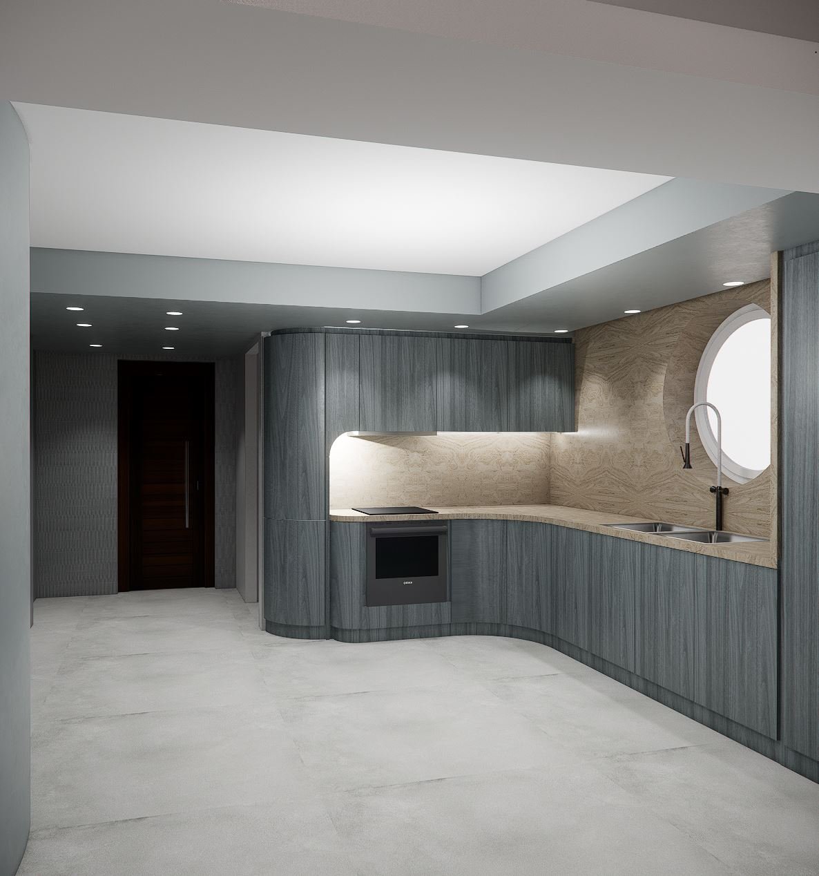 The design follows clean, minimal lines, emphasizing the purity of volumes and the natural flow of light, resulting in an atmosphere of tranquility, balance, and understated luxury. Every element has been carefully curated, from the bespoke kitchen crafted with natural oak veneer to the seamless Corian® surfaces used across countertops and wall finishes-offering both durability and a flawless aesthetic.