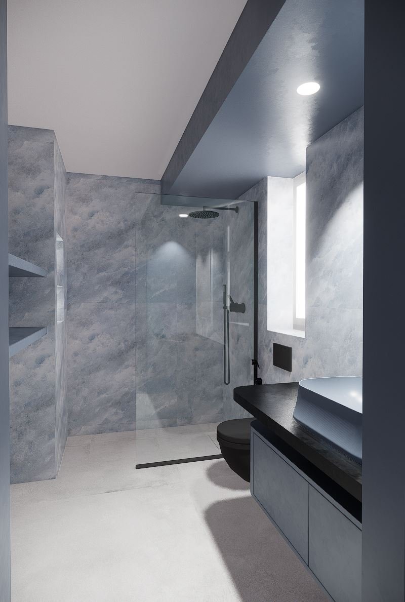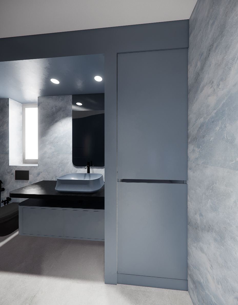The bathroom continues the same design philosophy, with custom Corian® compositions that create a spa-like environment, defined by precision, quality, and attention to detail. Architecturally designed lighting enhances textures and depth throughout the apartment, while the timeless palette ensures elegance that goes beyond trends.