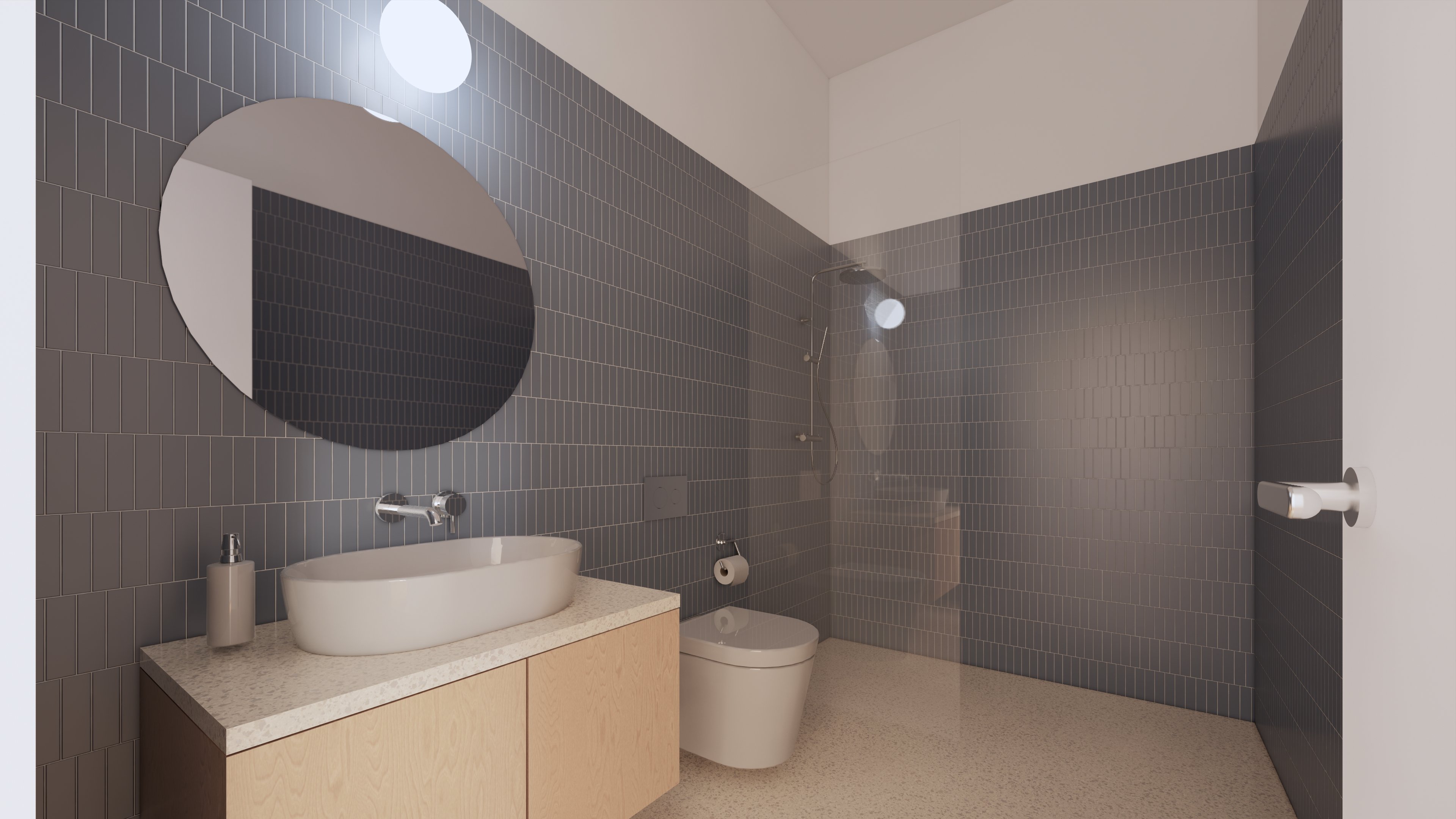 1 stylish bathroom + 1 guest WC