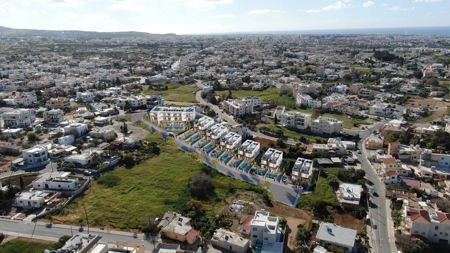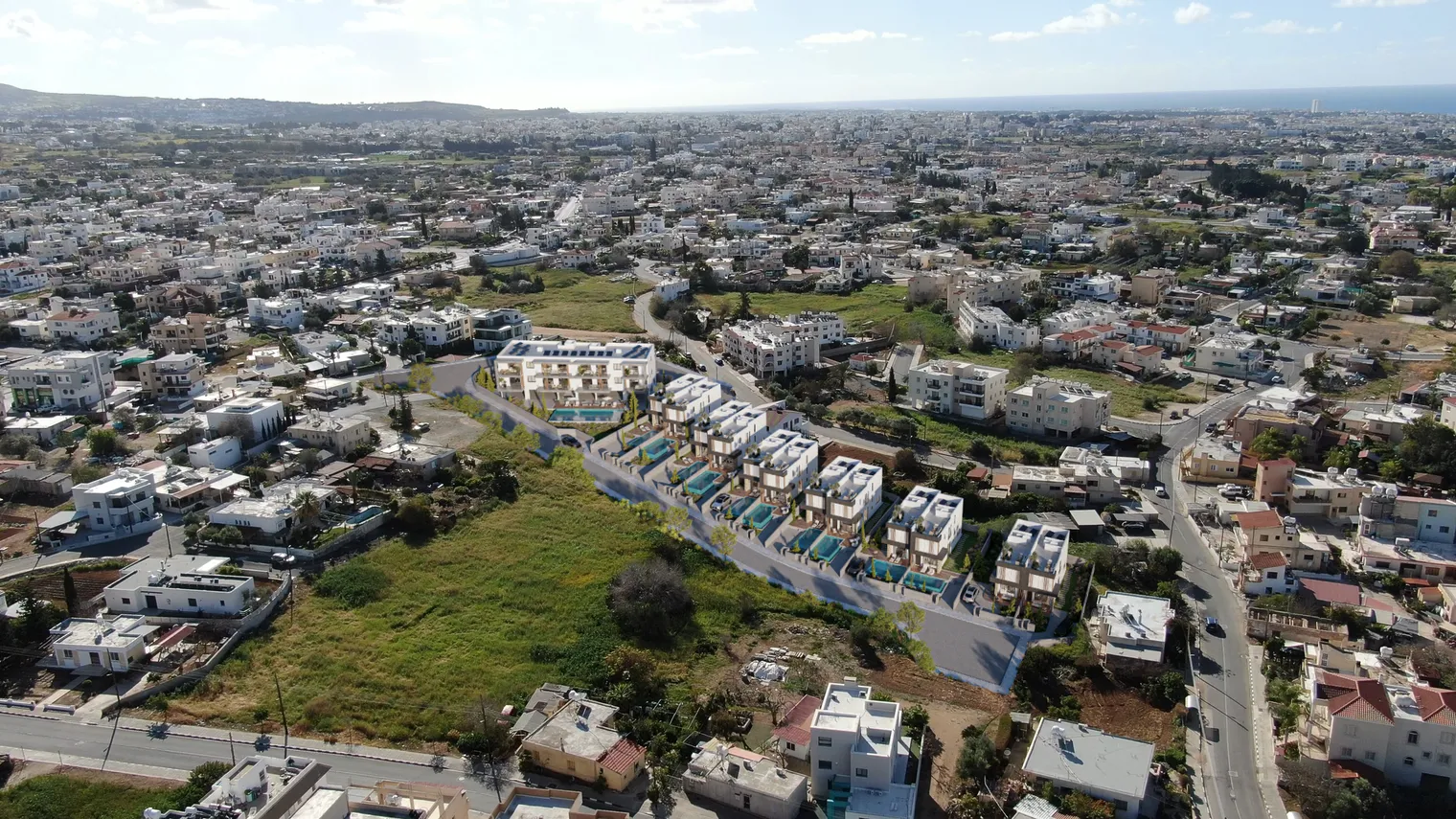 Located in a peaceful residential setting in Paphos, VIRGO Villas form part of an exclusive gated community designed for both comfortable living and strong investment potential. The development consists of 12 elegant two-storey, three-bedroom villas alongside a boutique collection of apartments, offering a balanced lifestyle within a private and secure environment. Each villa is thoughtfully designed with a modern architectural approach that blends seamlessly with the natural surroundings, creating spacious, functional interiors filled with natural light. Homeowners have the option to enhance their property with a private swimming pool and a roof garden, ideal for enjoying the Mediterranean climate and outdoor lifestyle. Surrounded by natural landscape, the project offers a sense of privacy and tranquility, while remaining highly convenient with all essential amenities just two minutes away. VIRGO Villas present an excellent opportunity for those seeking a permanent residence or a high-potential investment in Paphos.