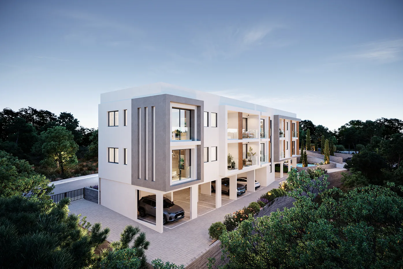 Cirvis is an exclusive gated residential development in the serene coastal area of lower Chloraka, seamlessly blending modern comfort with Mediterranean charm. This contemporary project features two stylish blocks, offering a total of 18 thoughtfully designed apartments, 10 one-bedroom and 8 two-bedroom units, ideal for both homeowners and investors seeking a prime location. Located in one of Paphos' most sought-after areas, Tombs of the Kings, Cirvis is just moments from the sea, the town center, and Aspire Private School, ensuring convenience without compromising tranquility. The development is surrounded by lush landscaped gardens and boasts premium amenities, including two communal swimming pools, changing rooms, outdoor showers, and dedicated BBQ and recreational areas, perfect for relaxation and social gatherings. Live the elegance. Embrace the lifestyle.