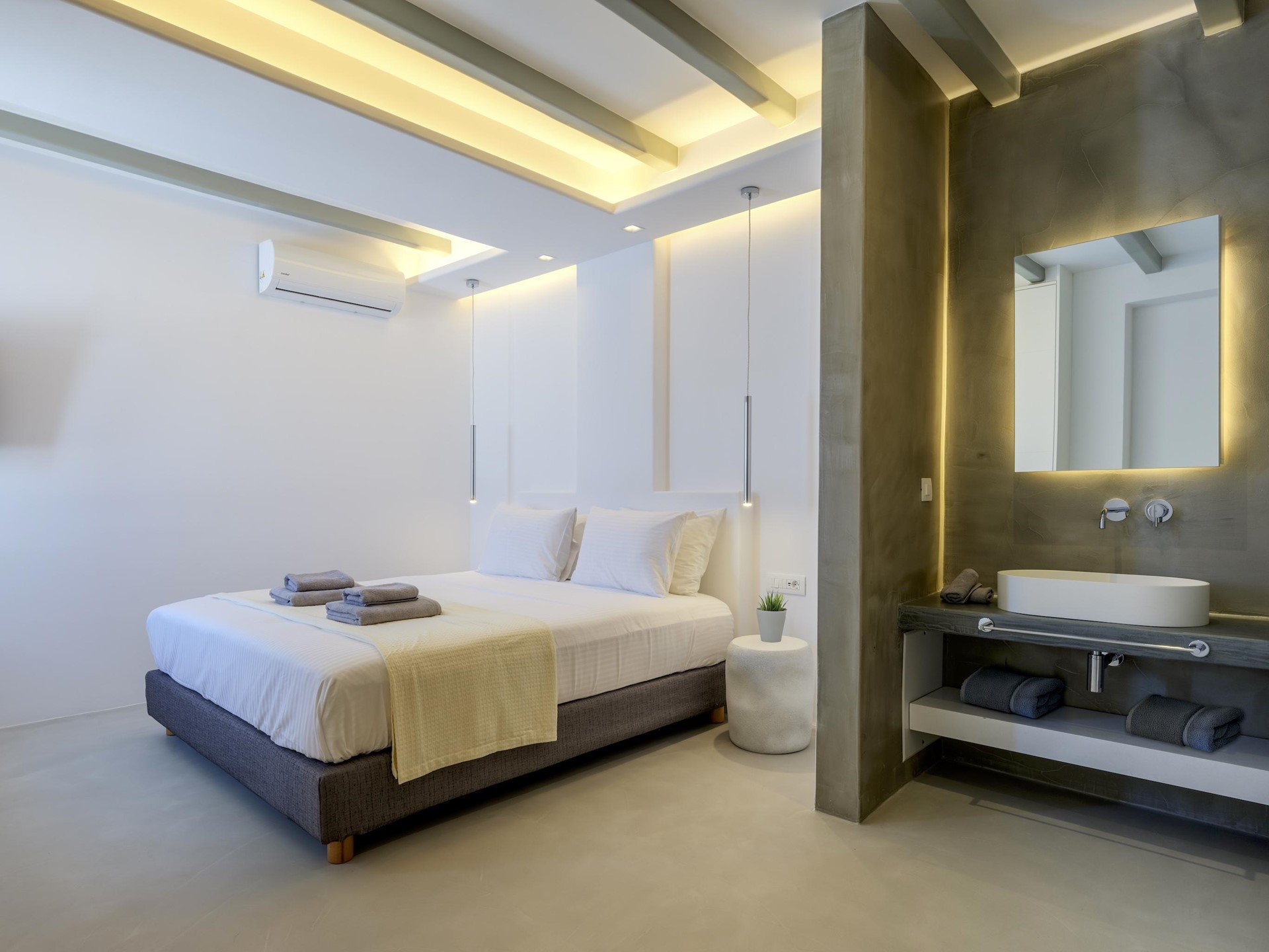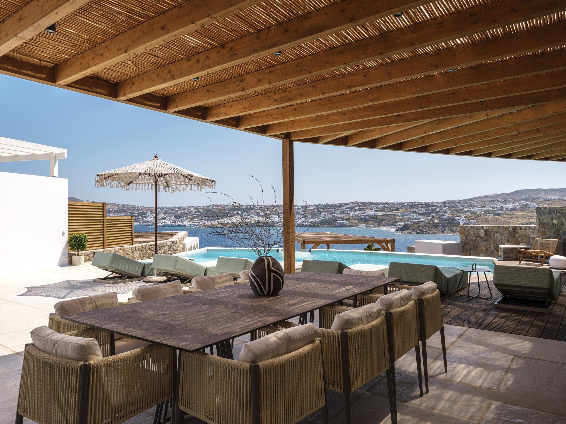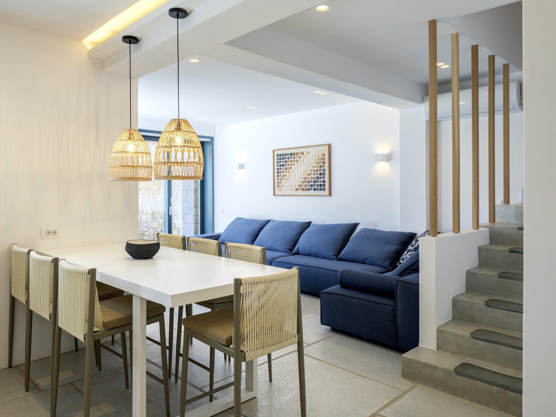 The villa features 6 spacious bedrooms, each with its own bathroom, ensuring privacy and comfort for residents and guests. The open-plan living and dining areas connect seamlessly to shaded verandas and expansive terraces overlooking the Aegean, creating the ideal setting for entertaining or relaxing.