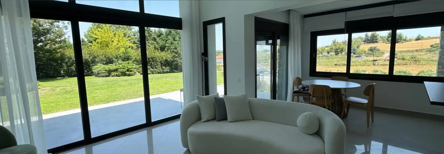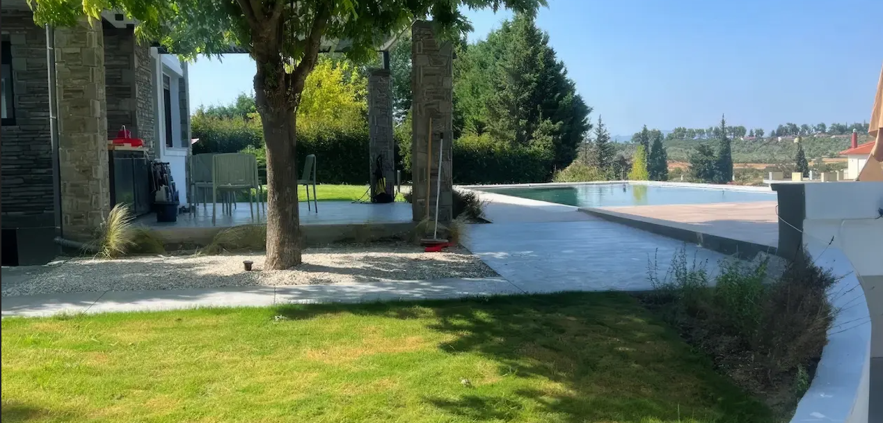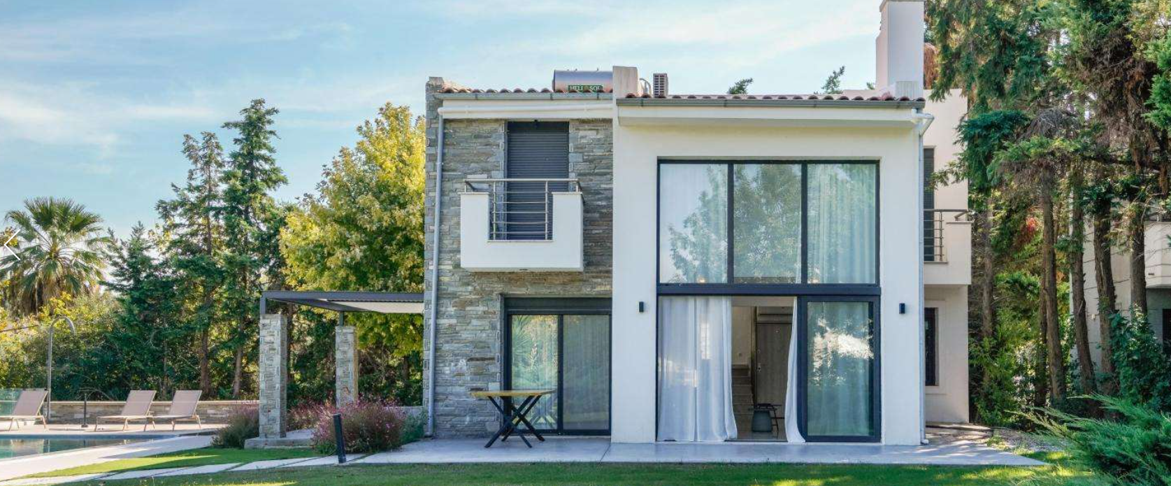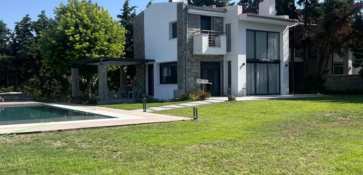 Located just a few minutes from the renowned Sani Resort in Kassandra, this beautifully renovated home offers a peaceful escape surrounded by nature. Set on a landscaped plot, the property features a large private pool, mature gardens, and shaded outdoor dining areas perfect for relaxed summer living.