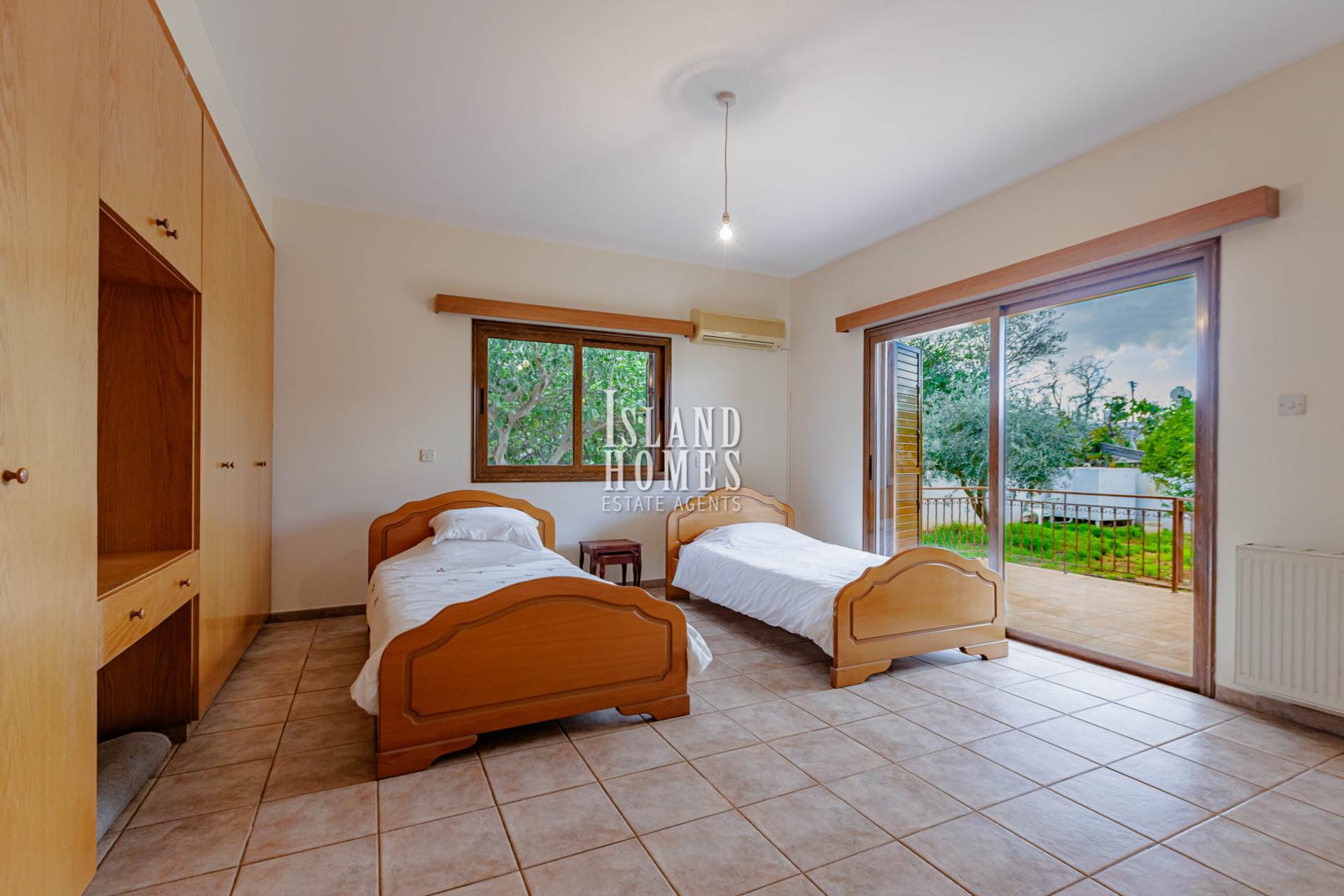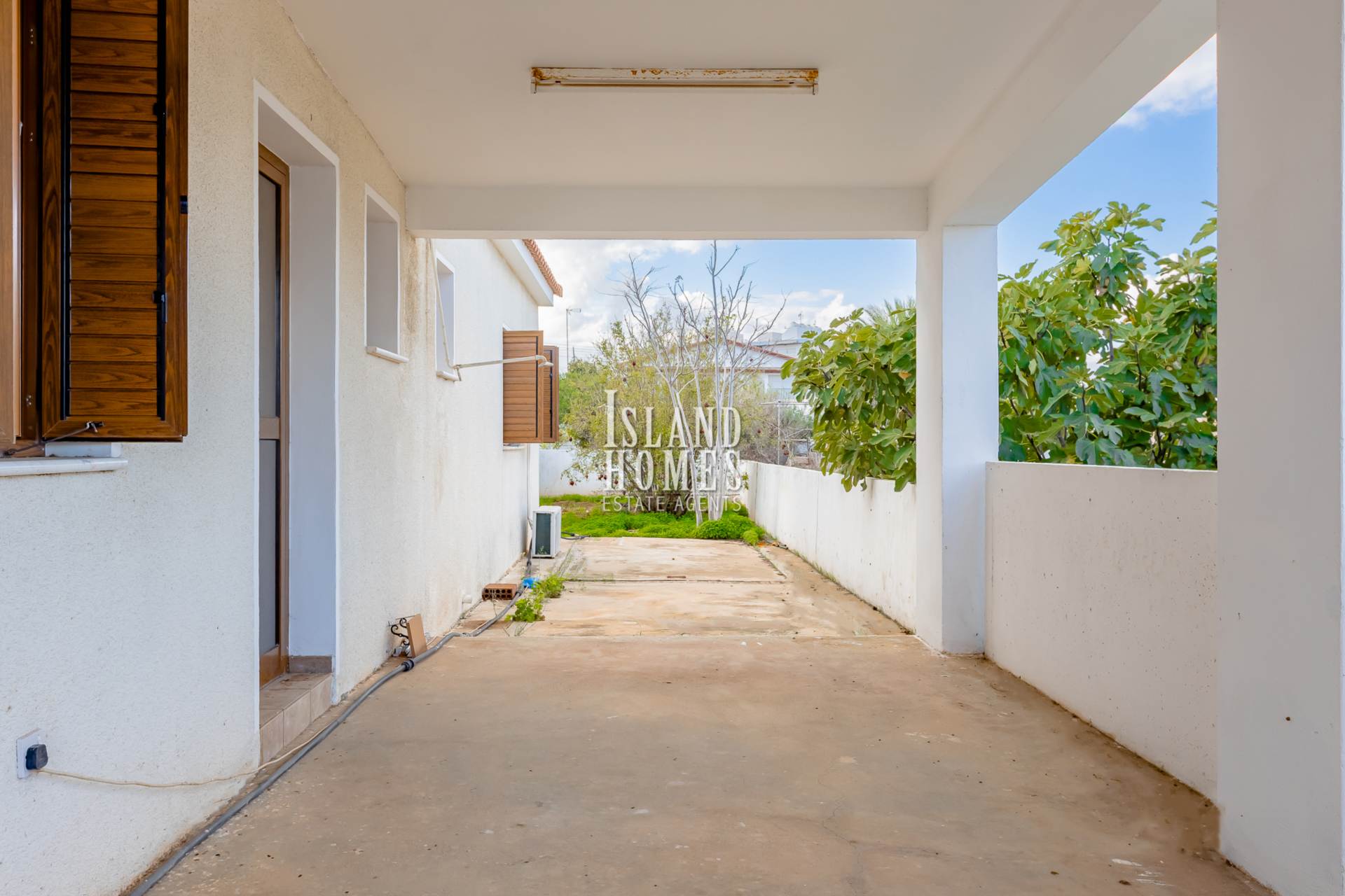 This is a superb opportunity to own a family home in the popular village of Deryneia. With a gated drive offering access to the large front garden and covered car port, this low maintenance outside space includes well established trees and plants.