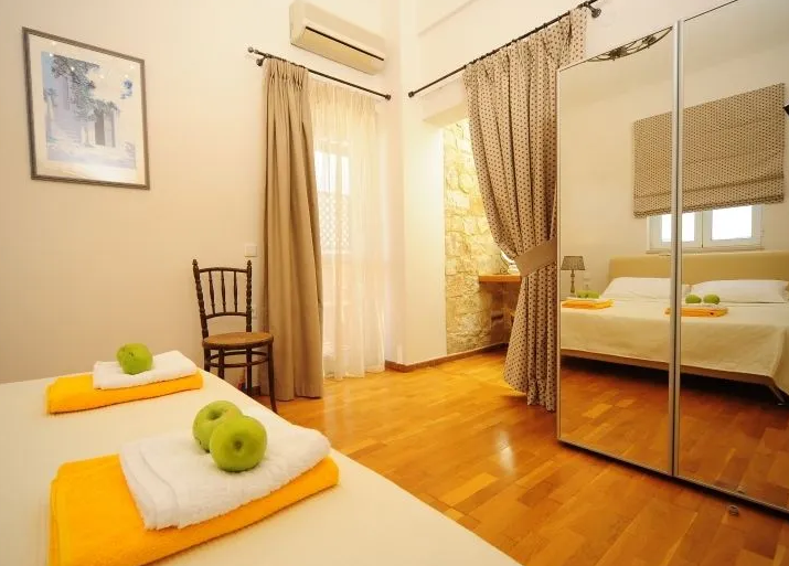 One offers two single beds and access to a balcony with an abundance of natural light and scenic views, while the other includes a double bed and its own private terrace, the perfect retreat for relaxation.
