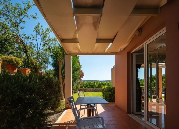 Built in 2001 and meticulously maintained, the home sits on a 500 m² private plot, surrounded by greenery and offering seamless indoor-outdoor living.