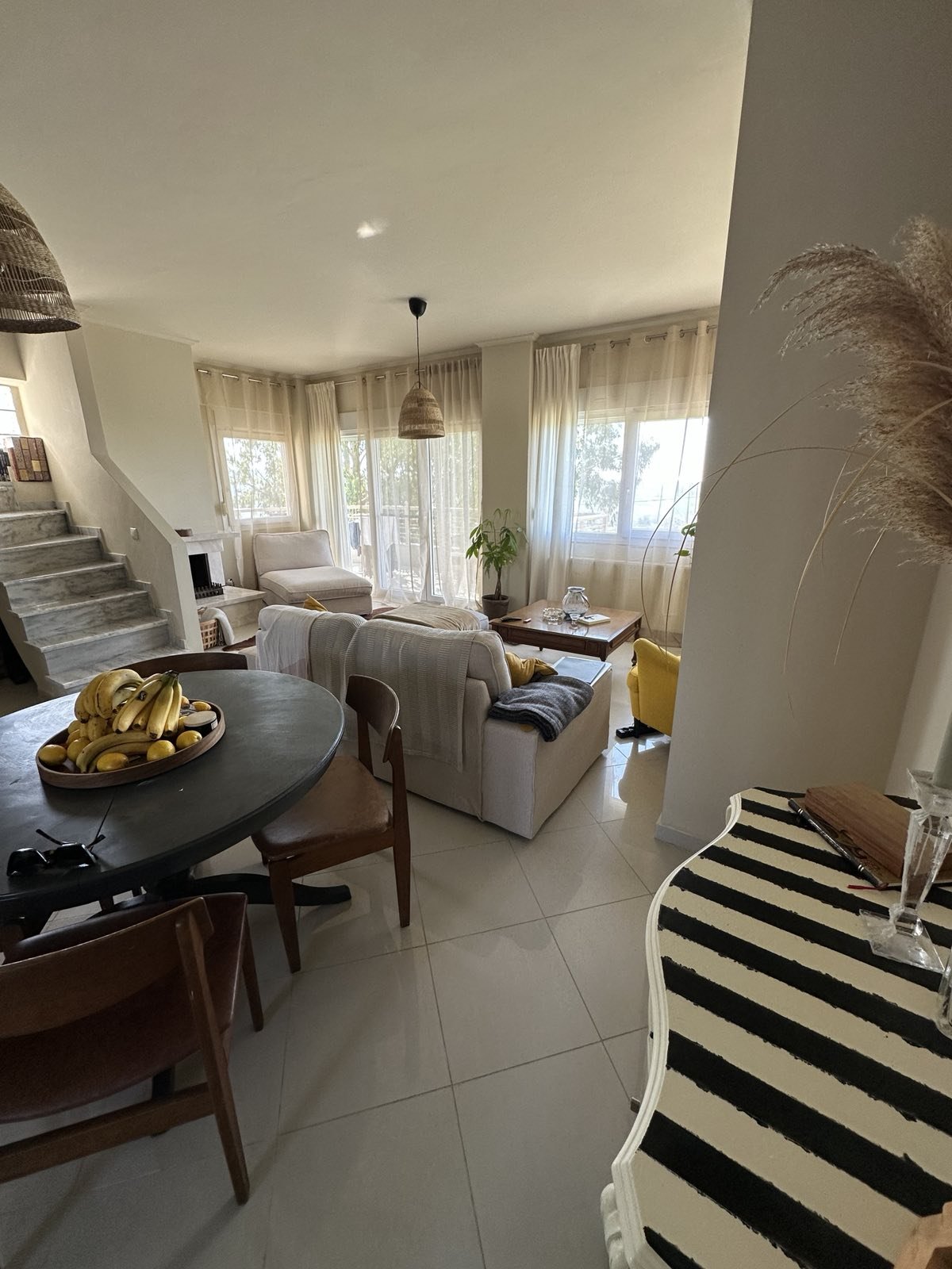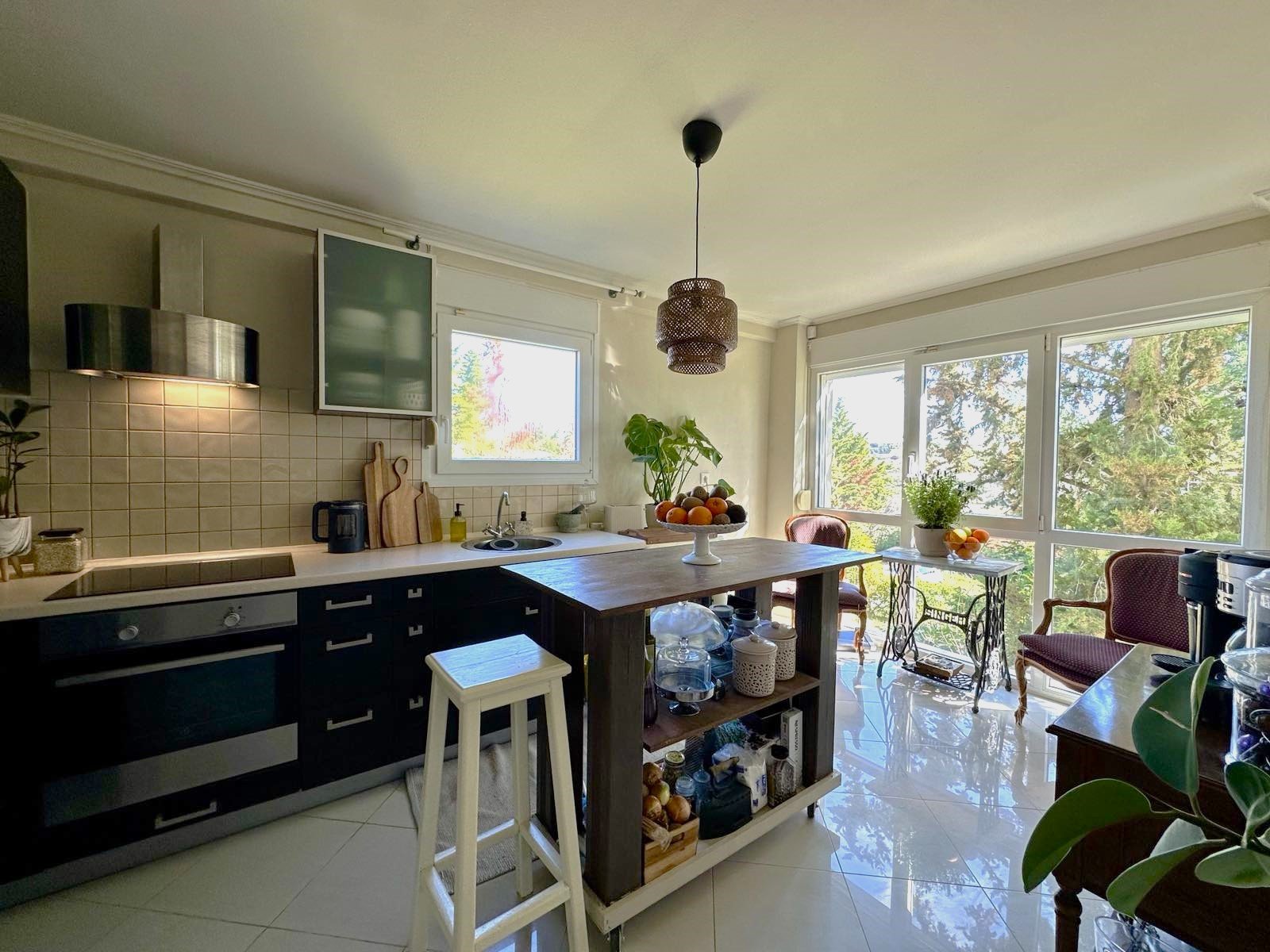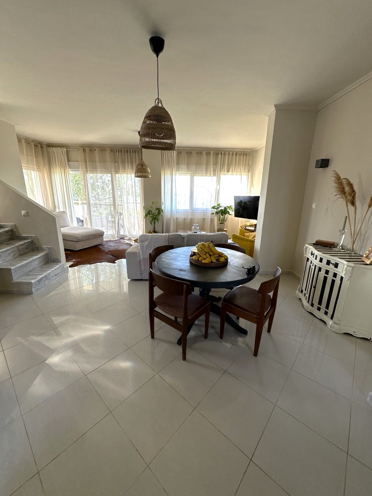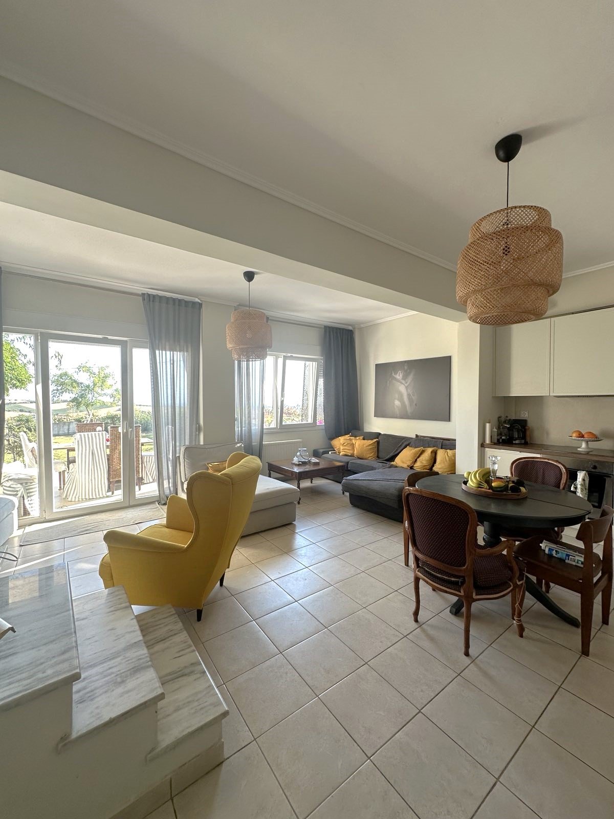 Spread across three levels, the maisonette offers four spacious bedrooms, two inviting living rooms, and two fully equipped kitchens, allowing flexibility for family living or hosting guests. Large windows fill the interior with natural light and frame breathtaking sea views, creating a calm and uplifting atmosphere throughout the home.