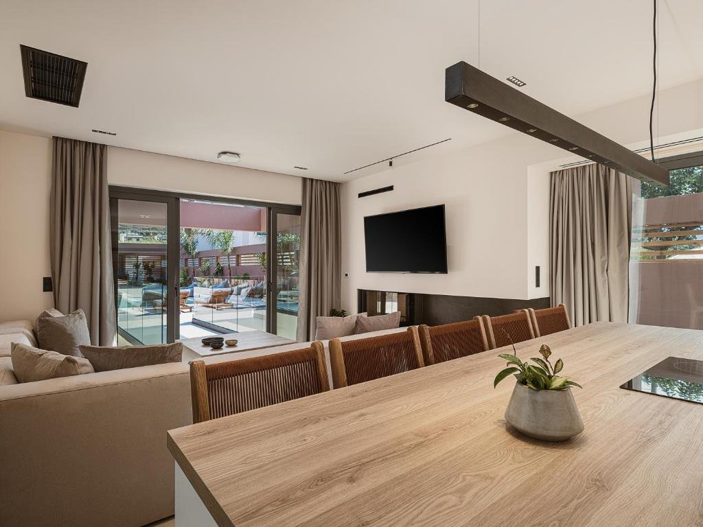 Outdoors, a private swimming pool, landscaped garden with mature trees, BBQ area, and open parking for two vehicles create the perfect setting for relaxation and entertaining. Ideally located just 1.5 km from Malia Beach and 3.4 km from Potamos Beach, and only 28 km from Heraklion International Airport, this exceptional property is ideal as a luxury holiday retreat, high-end rental investment, or permanent residence in Crete.