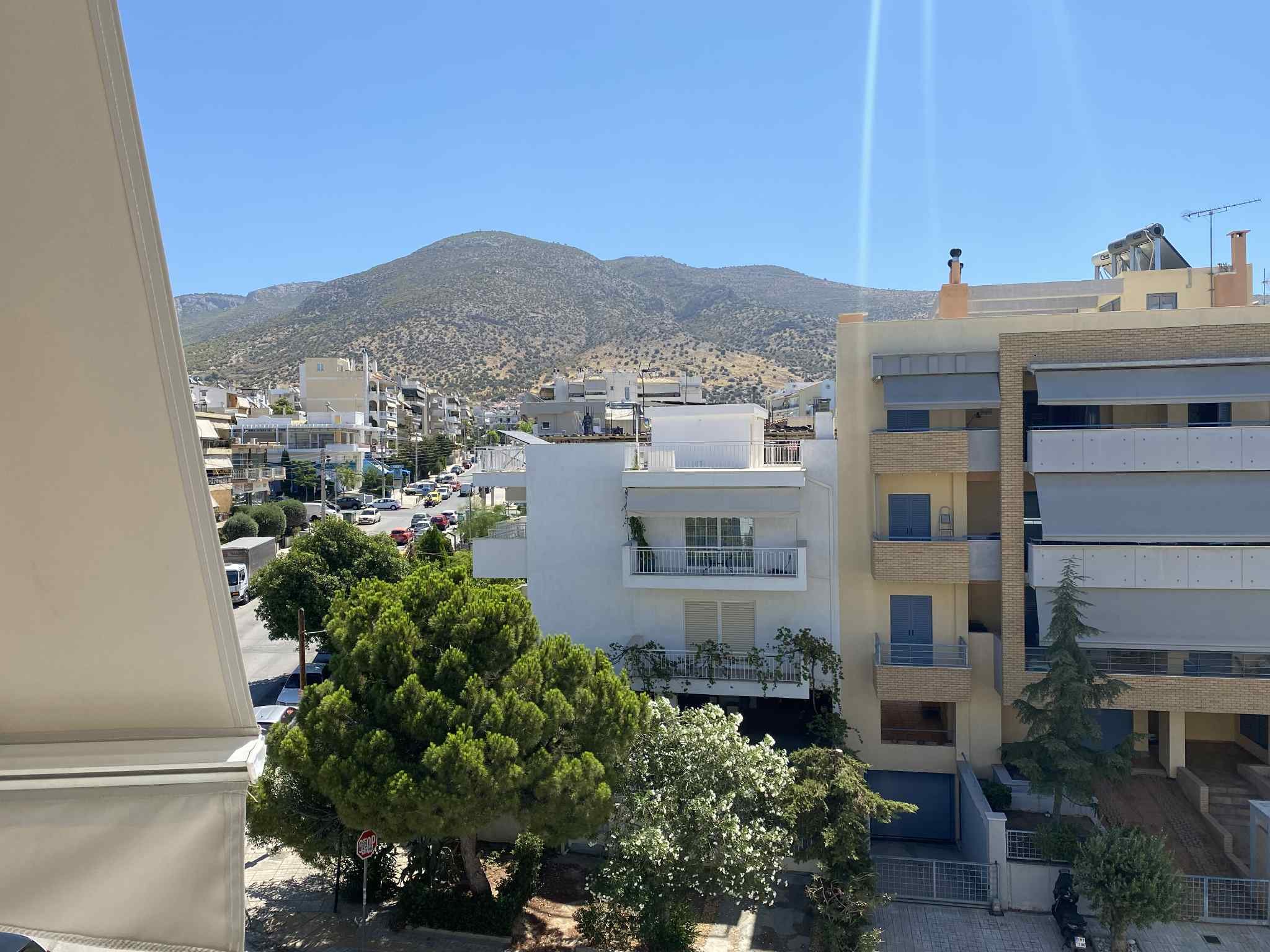 Stylish and sunlit apartment located in the heart of Ano Glyfada, offering open-plan living, a modern kitchen, and a spacious balcony with mountain views. Ideal for living.