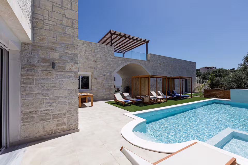 A beautifully designed stone-built villa of 281m², completed in 2021, set on a private 850m² plot in the charming village of Pigi, just 4km from the beach and 8km from Rethymno. The property perfectly blends modern luxury with authentic Cretan character, offering privacy, tranquillity, and easy access to all amenities.