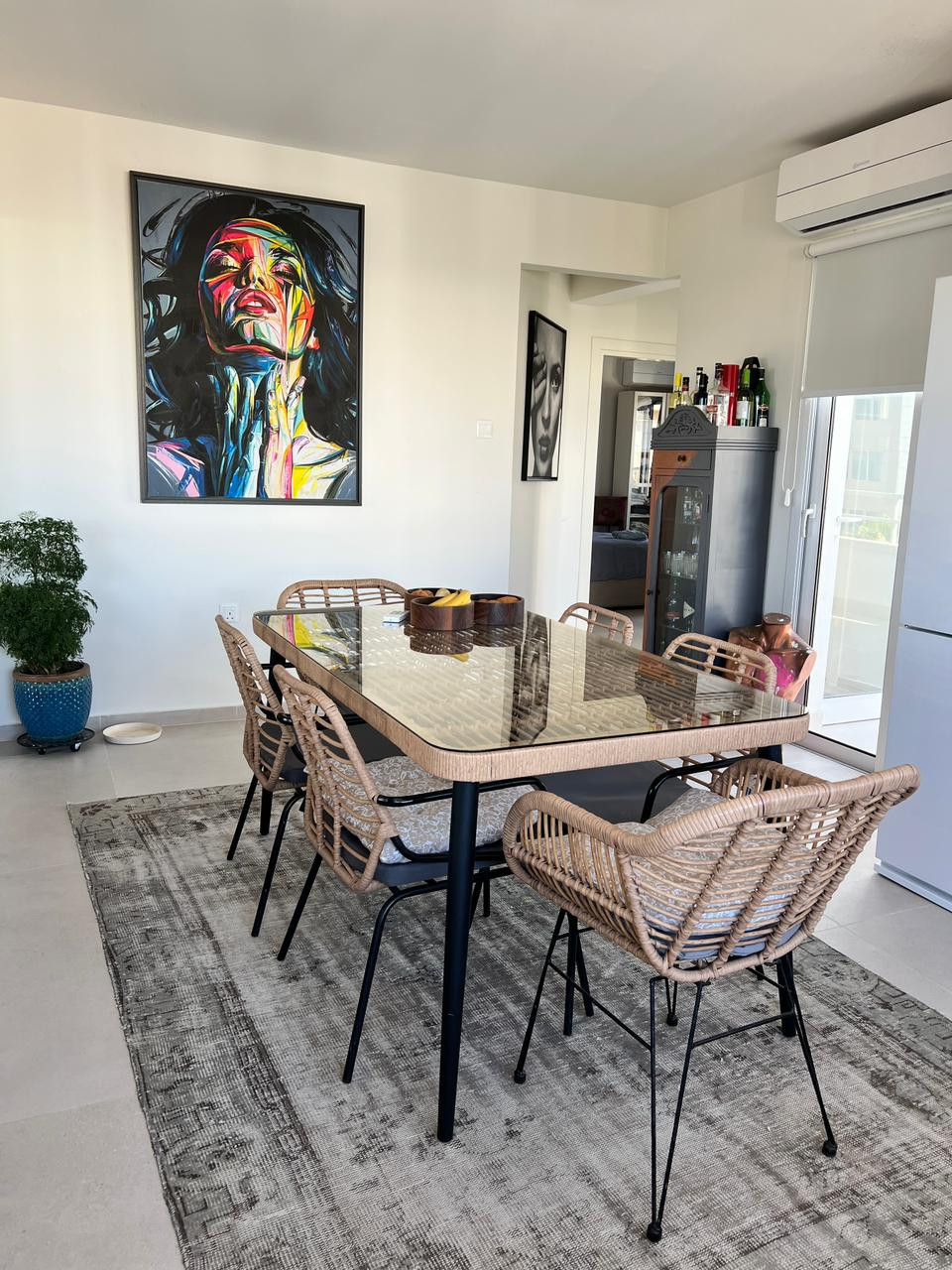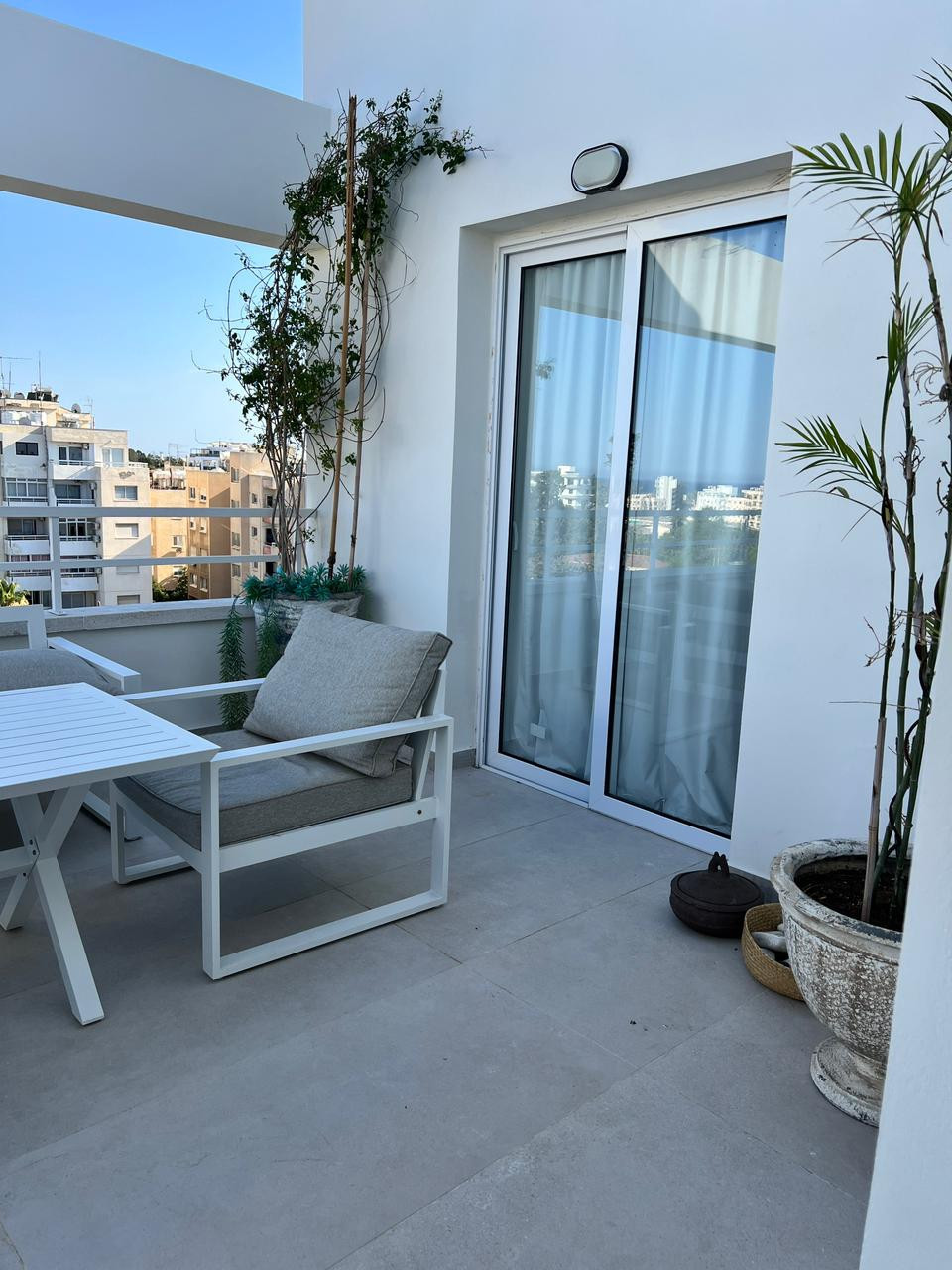 Available for rent is a spacious, fully renovated apartment located on the top floor of a well-maintained building in Faneromeni. Covering 100 square meters, this modern home features two bright bedrooms and an open-plan living area filled with natural light. The property includes stylish furnishings and tasteful décor, making it ready to move in. An elevator gives convenient access directly to the fifth floor.