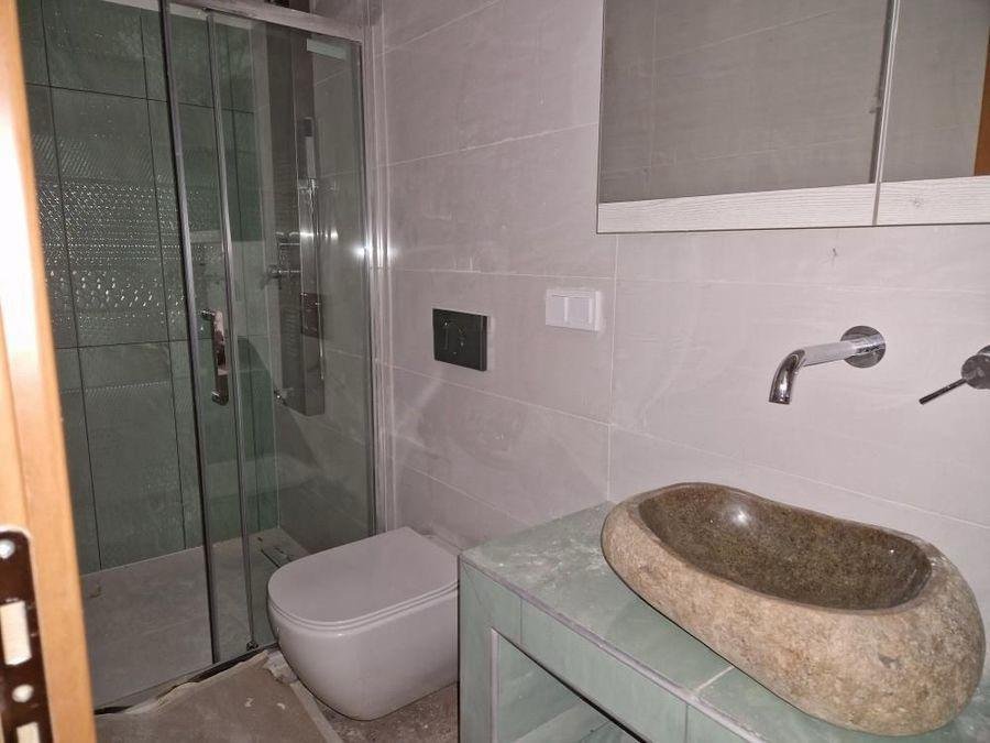 It features a bright living area, modern kitchen, 2 bedrooms (including a master with en-suite), and an extra WC. High-quality finishes include wooden floors, double-glazed aluminum windows with insect screens, and a reinforced door with alarm.