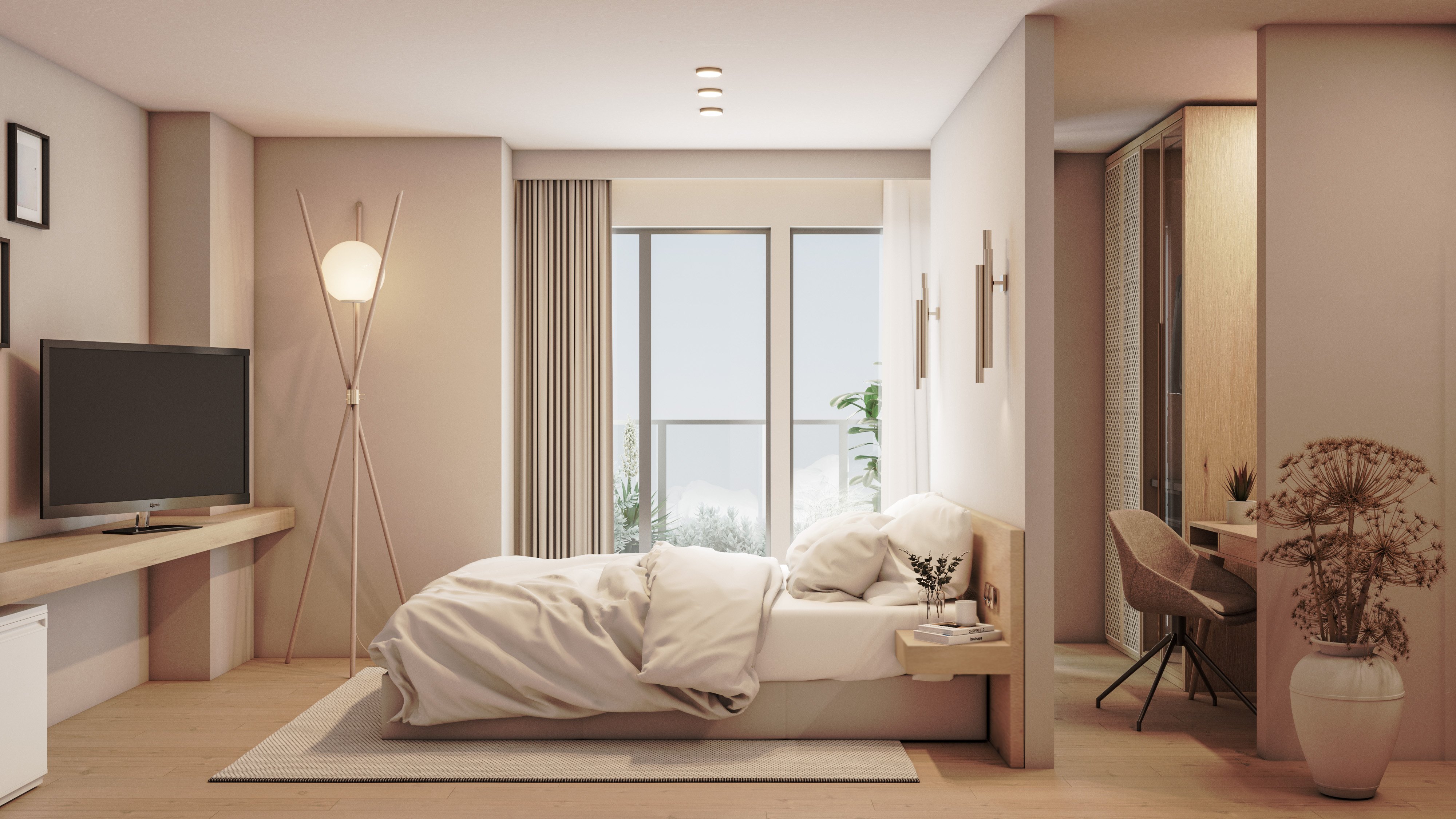 This premium 8th-floor apartment offers a rare opportunity for investors seeking EU residency through real estate, wrapped in modern comfort and managed convenience. Featuring a sleek layout, high-end finishes, and its own private jacuzzi, this turnkey unit is part of a fully managed, hotel-style residence in the very heart of the city.