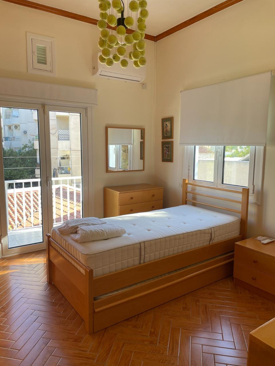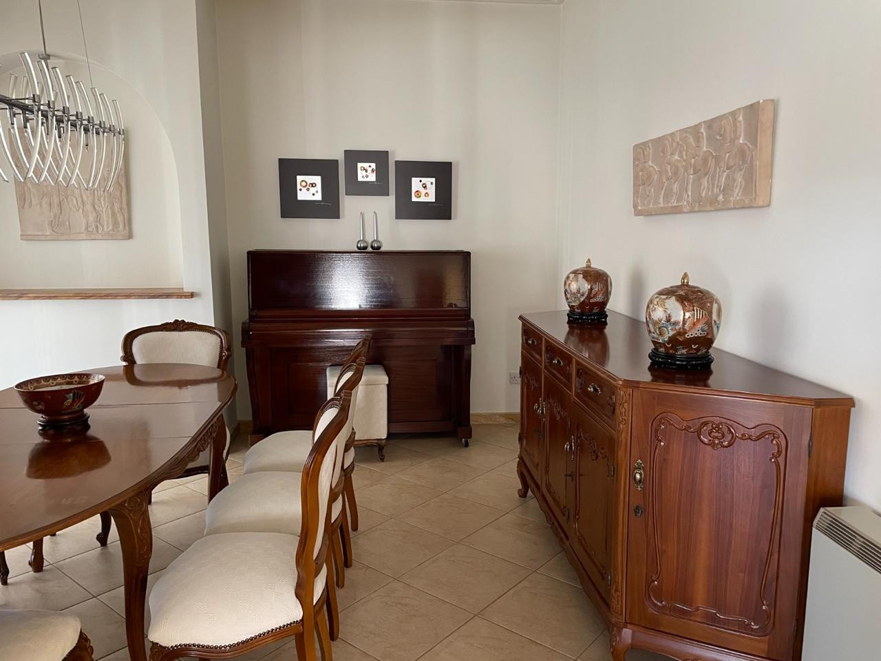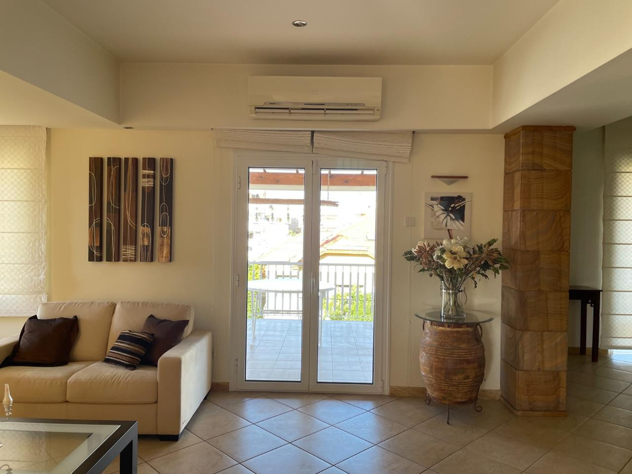 Step into a generously sized living space, fully furnished with tasteful, high-quality furniture. The central air conditioning system ensures a pleasant atmosphere throughout the year. Enjoy city views from the bright living room, creating an inviting space to relax or entertain guests.