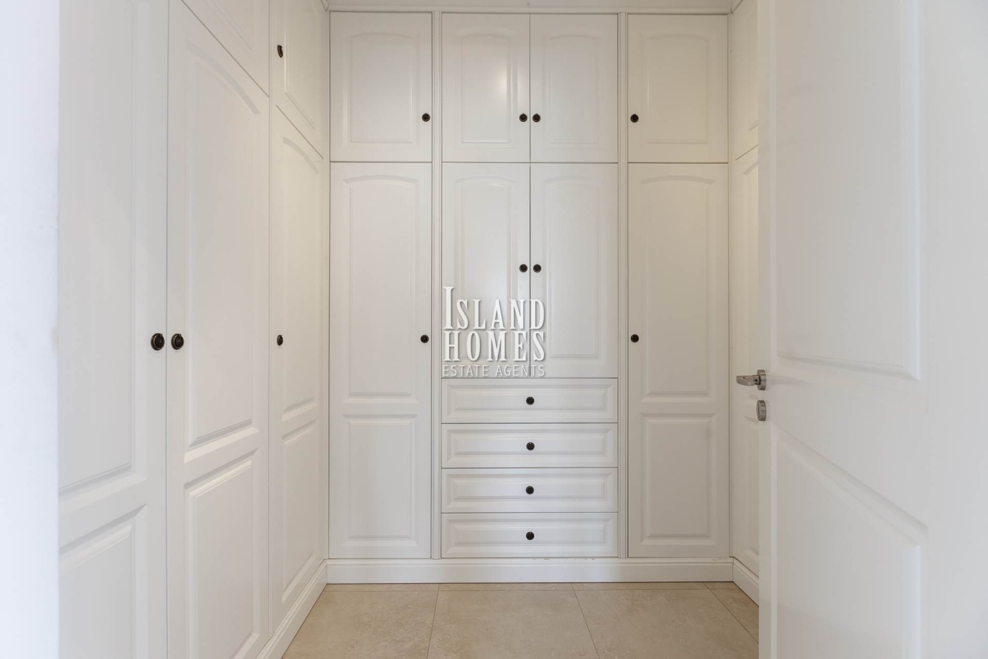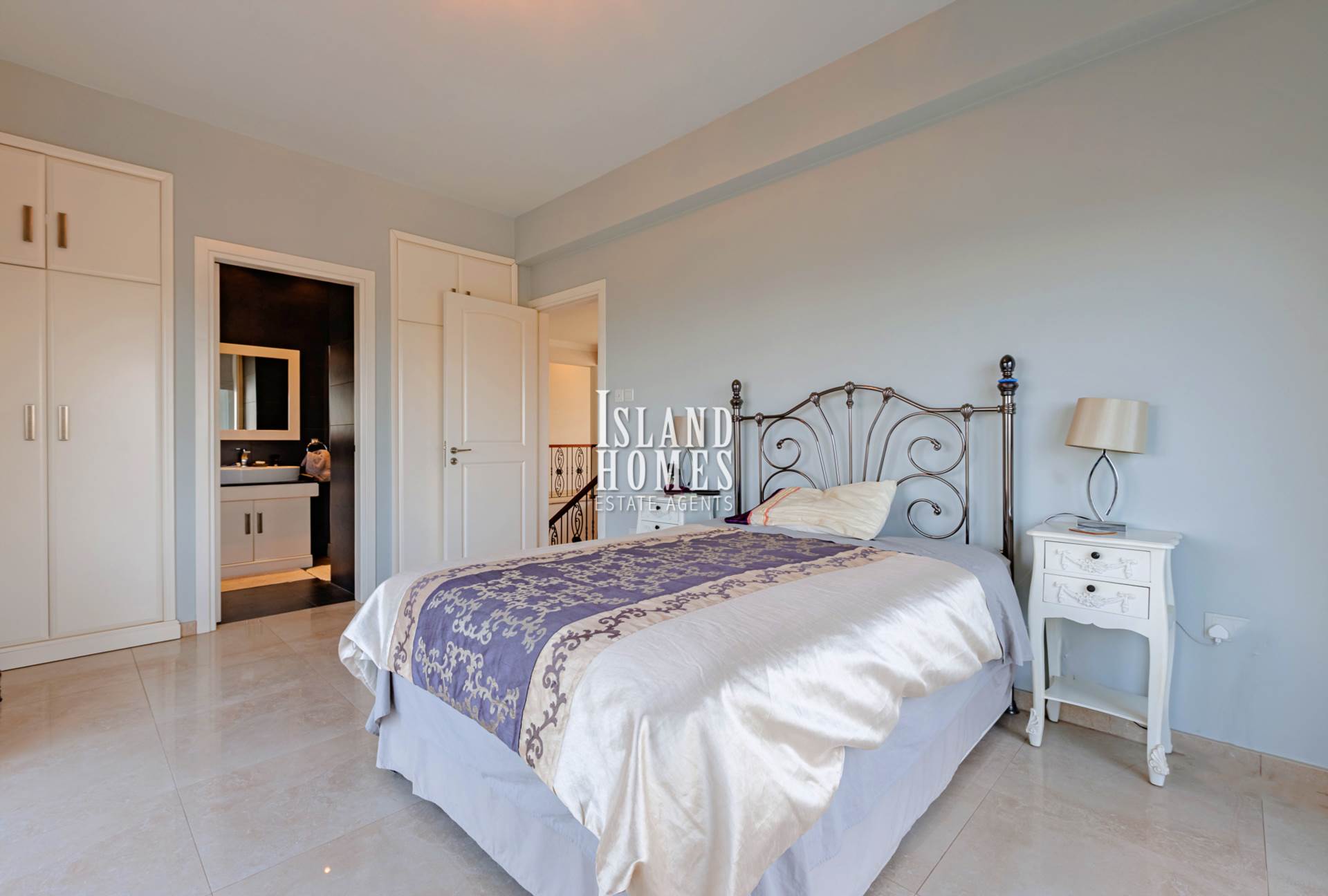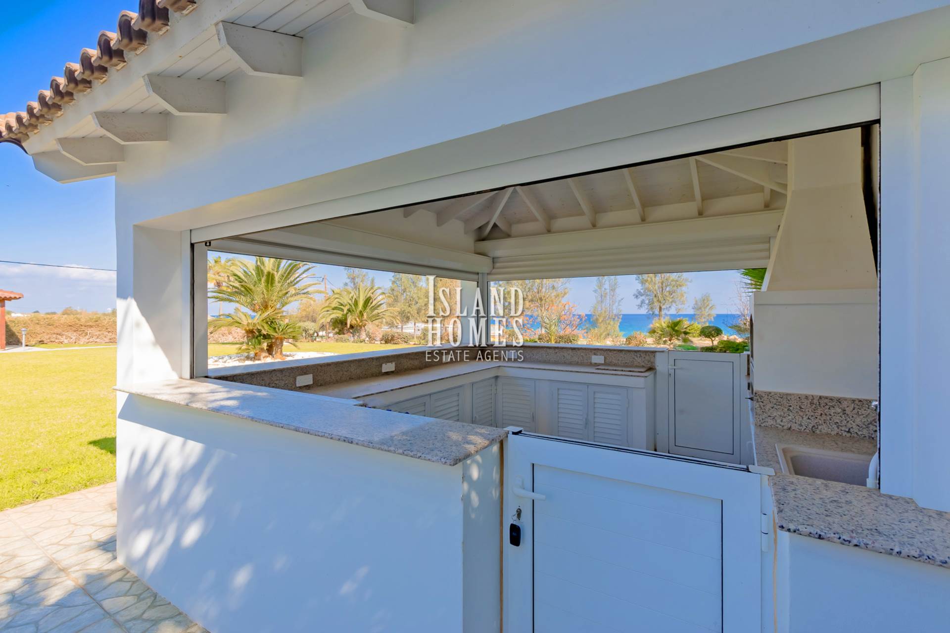 The real jewel in the crown must be the gardens, outside space and location. In contrast to the interior, the exterior is designed in a traditional style and finished in modern grey and white colour tones. The garden is a sprawling grass carpet which leads to the Mediterranean Sea, along a public walk way, on your door step. The garden includes a large inviting swimming pool with roman steps, jacuzzi area and huge sun terrace. There is a designated covered seating area for when the sun just becomes too much. The property has an outdoor kitchen/bar area with sink, open chimney BBQ, plentiful worktop space and an abundance of storage. The outdoor kitchen which is fully enclosed with electric shutters to allow an open and covered kitchen, a superb touch to this exclusive villa.