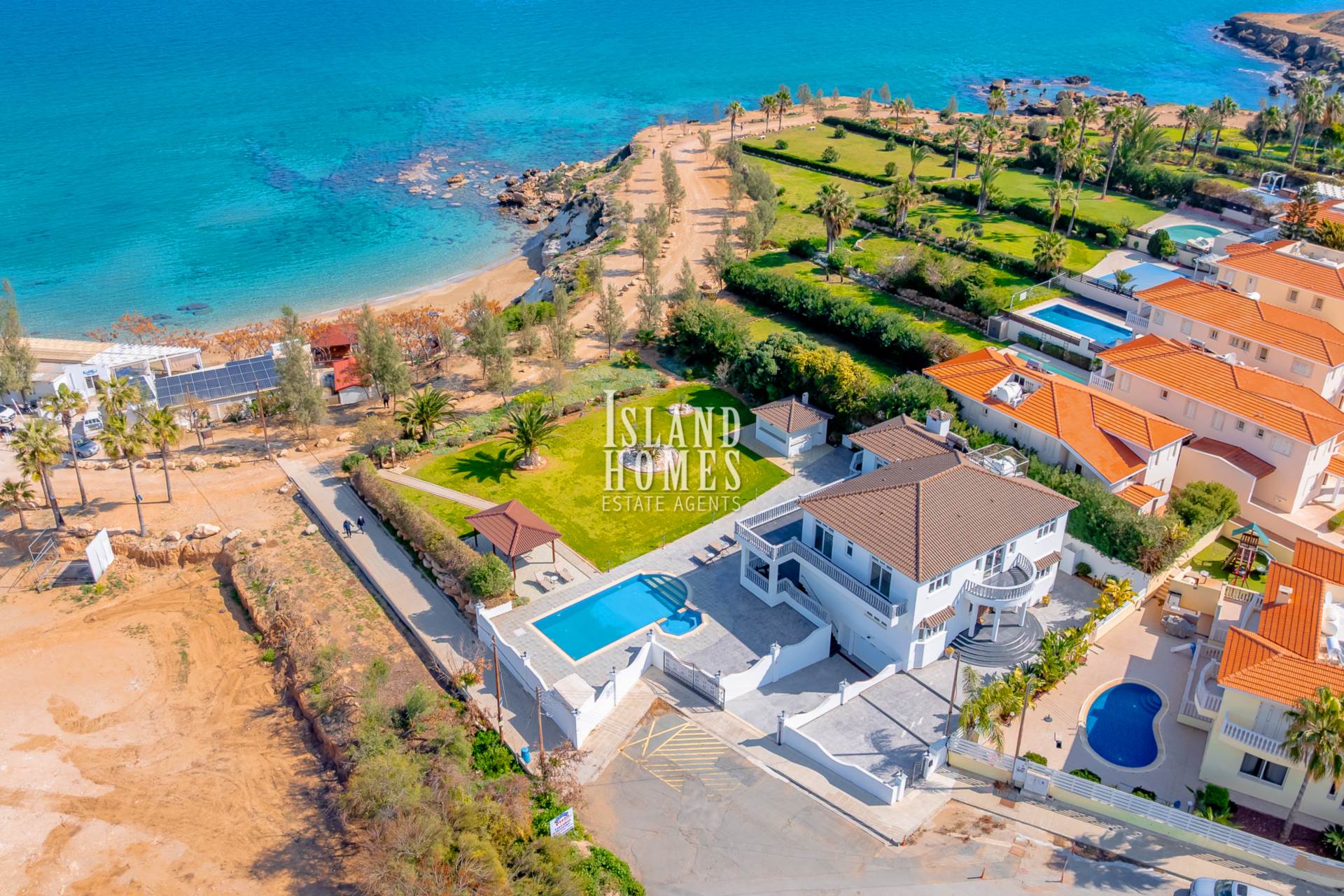 4/5 bedroom, 5 bathroom, 1 WC detached villa with underground parking, swimming pool with jacuzzi, separate staff quarters, TITLE DEEDS for land, superb panoramic SEA VIEWS from a front line position in stunning area of Kapparis - KAP152