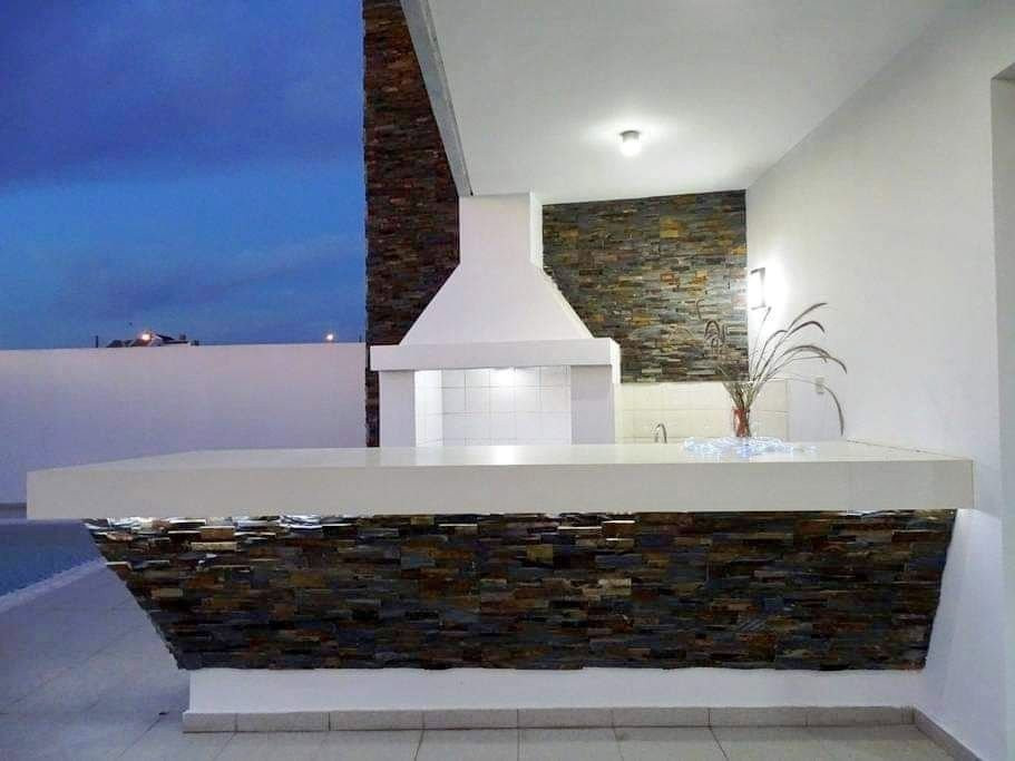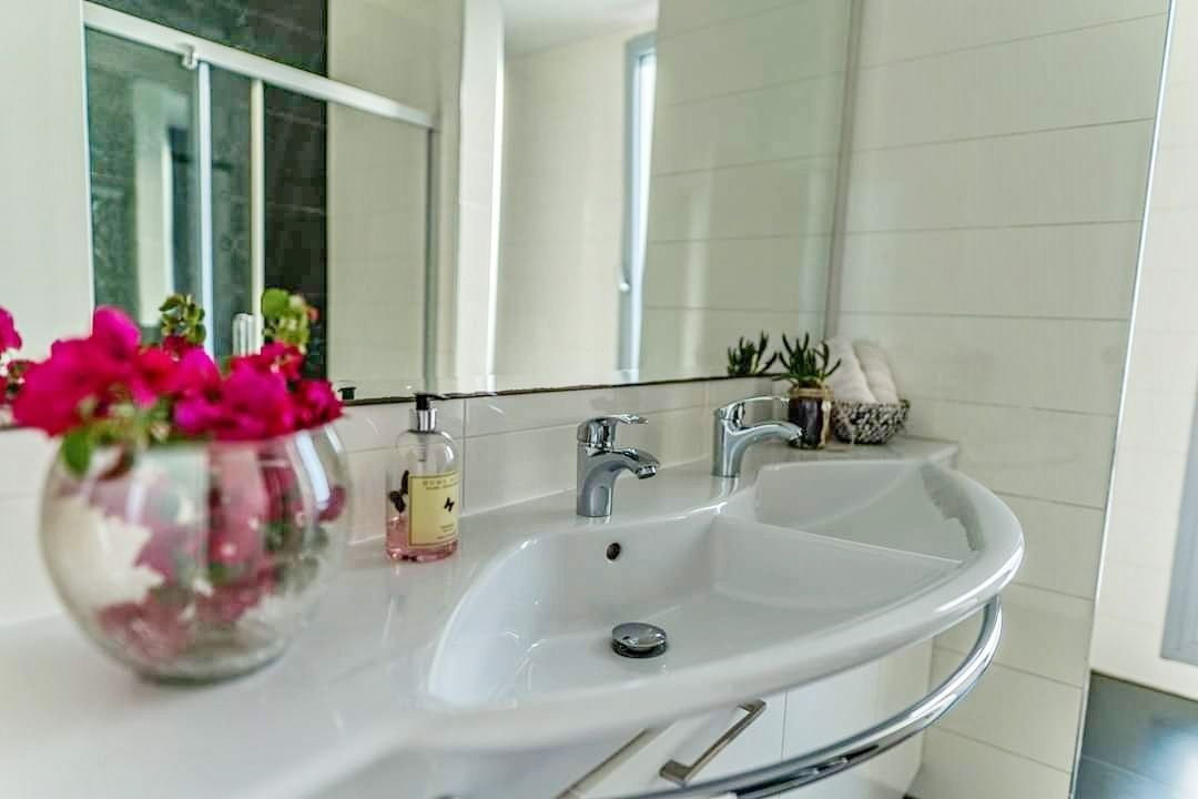 Furthermore on the property there is one service room outside of the house with en suite shower and w.c. There are two covered parking areas, one single and one double with automatic electric garage door. The main entrance of the house has high technology opening (touch and phone), Sound System in all areas, ground floor and outside in the swimming pool area. Also there is a barbeque area and a shower and w.c. by the pool area.