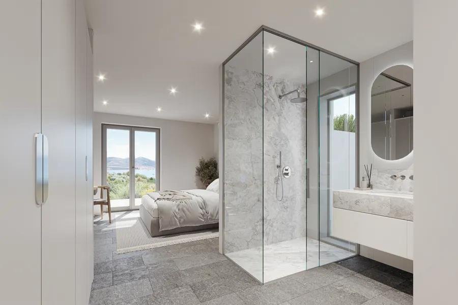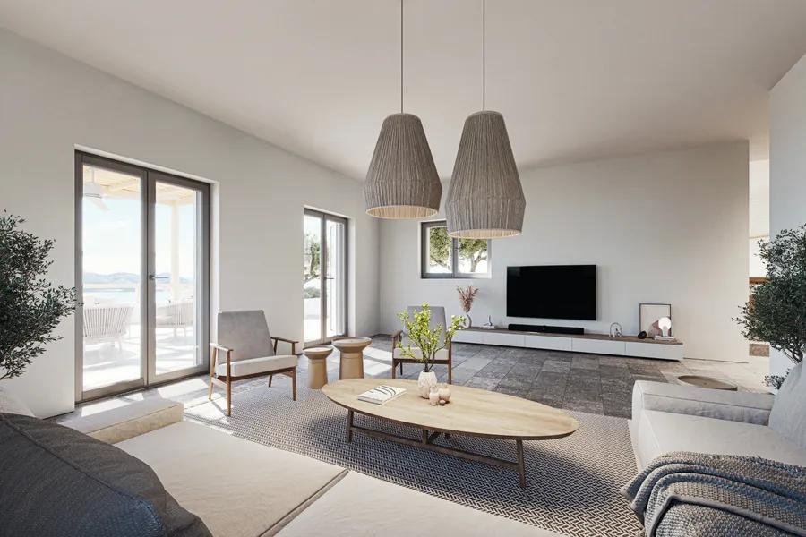 Every design detail has been carefully considered to respect the island's natural setting and architectural heritage. Natural materials, traditional textures, and refined modern finishes come together in perfect harmony, creating a timeless aesthetic of discreet luxury.