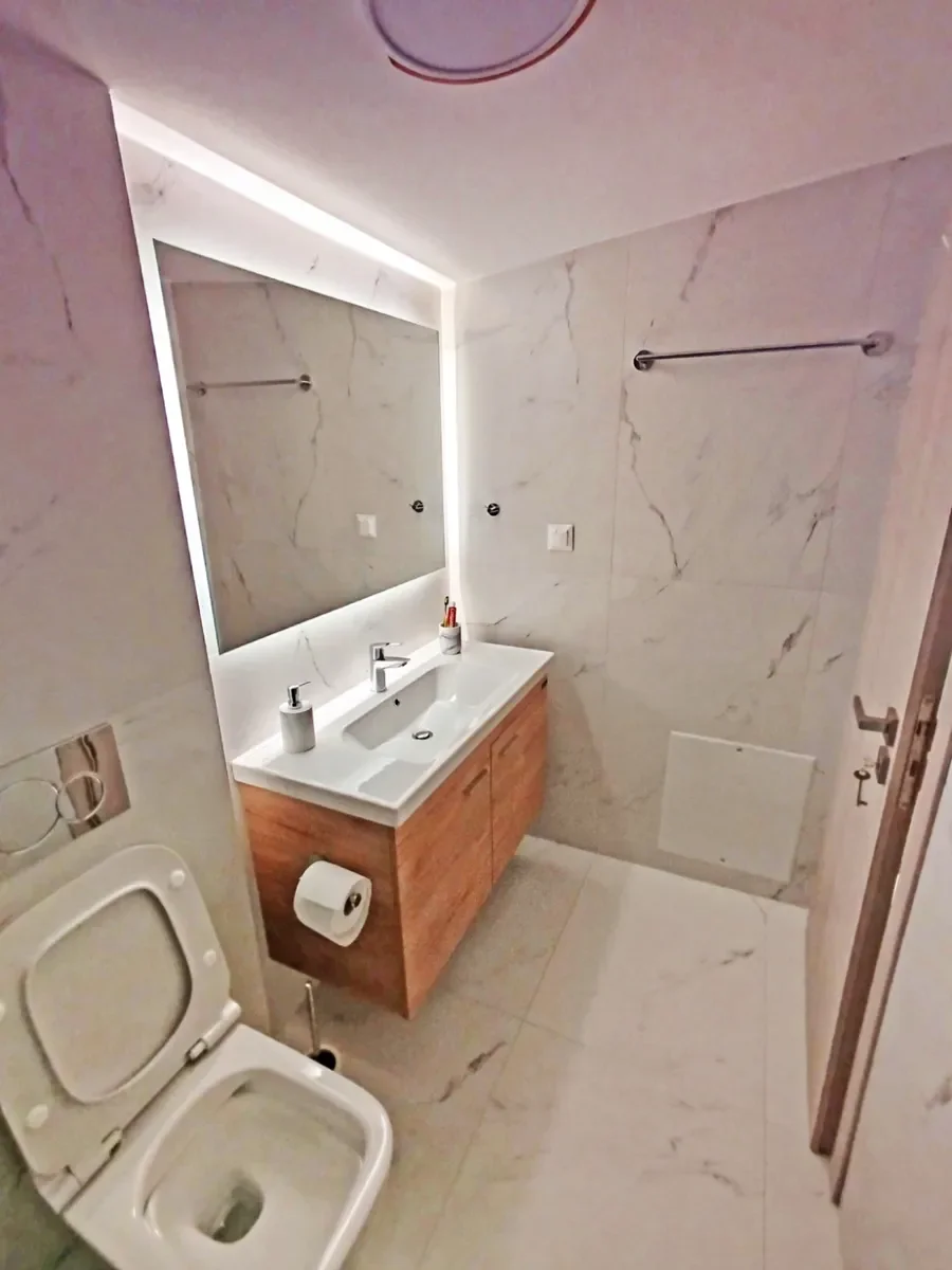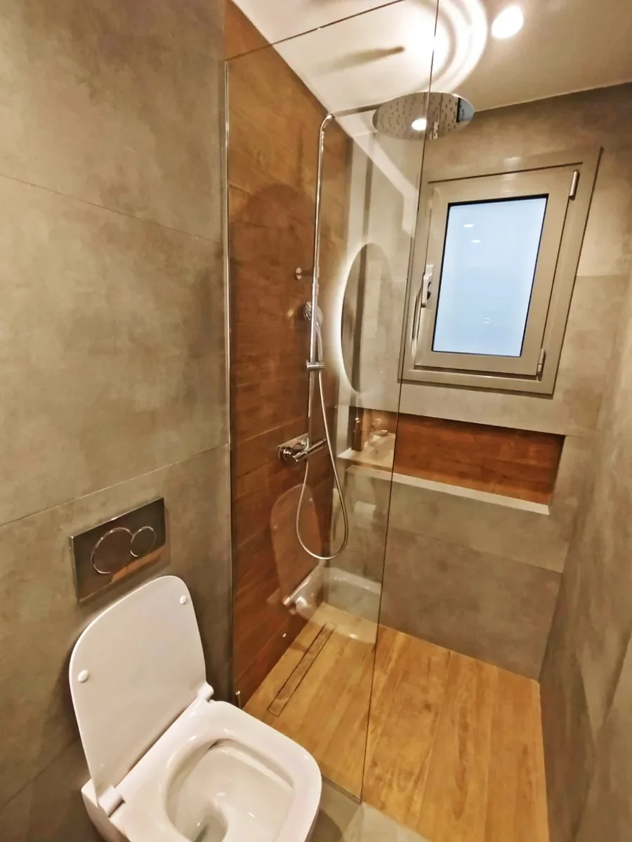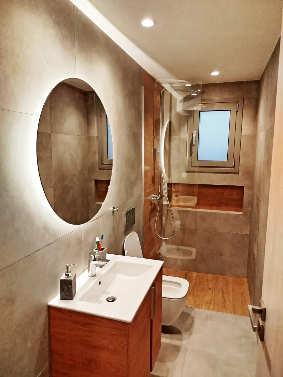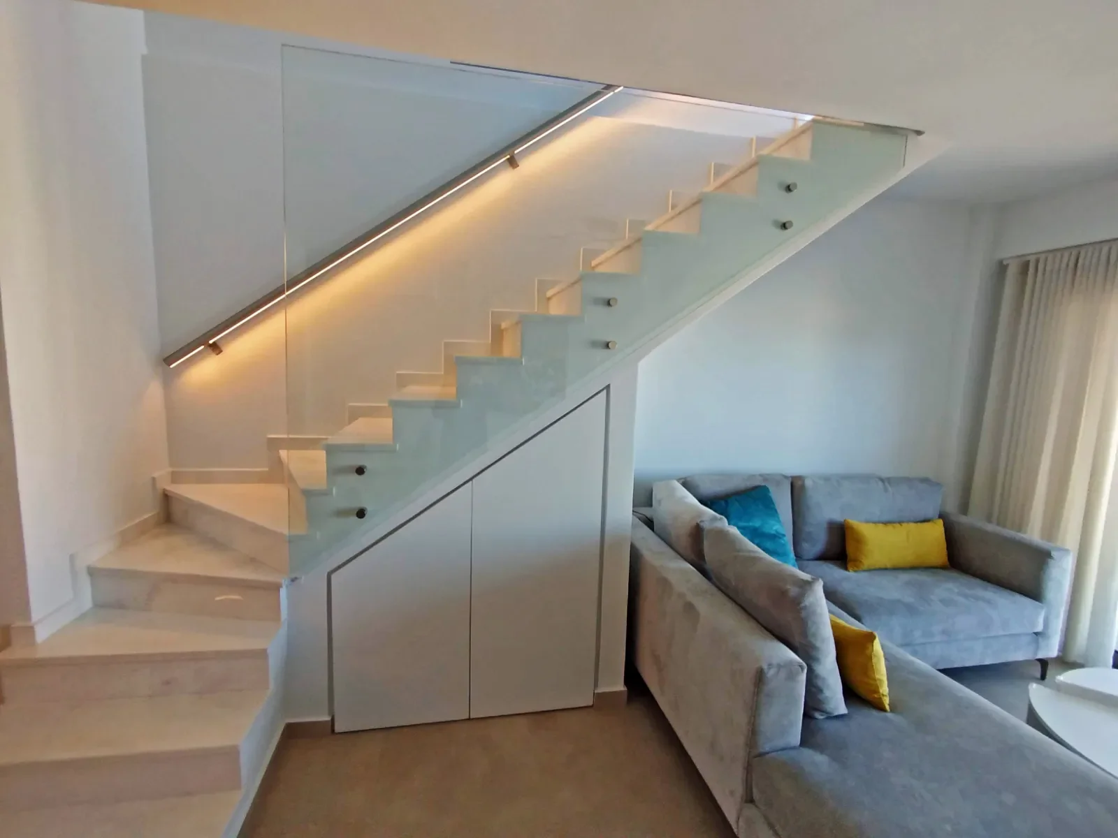 The loft incorporates the latest modern specifications, including underfloor heating, photovoltaic panels, fast charging for electric cars in the underground parking space, and a 10 cm thermal shell, achieving an A+ energy rating.