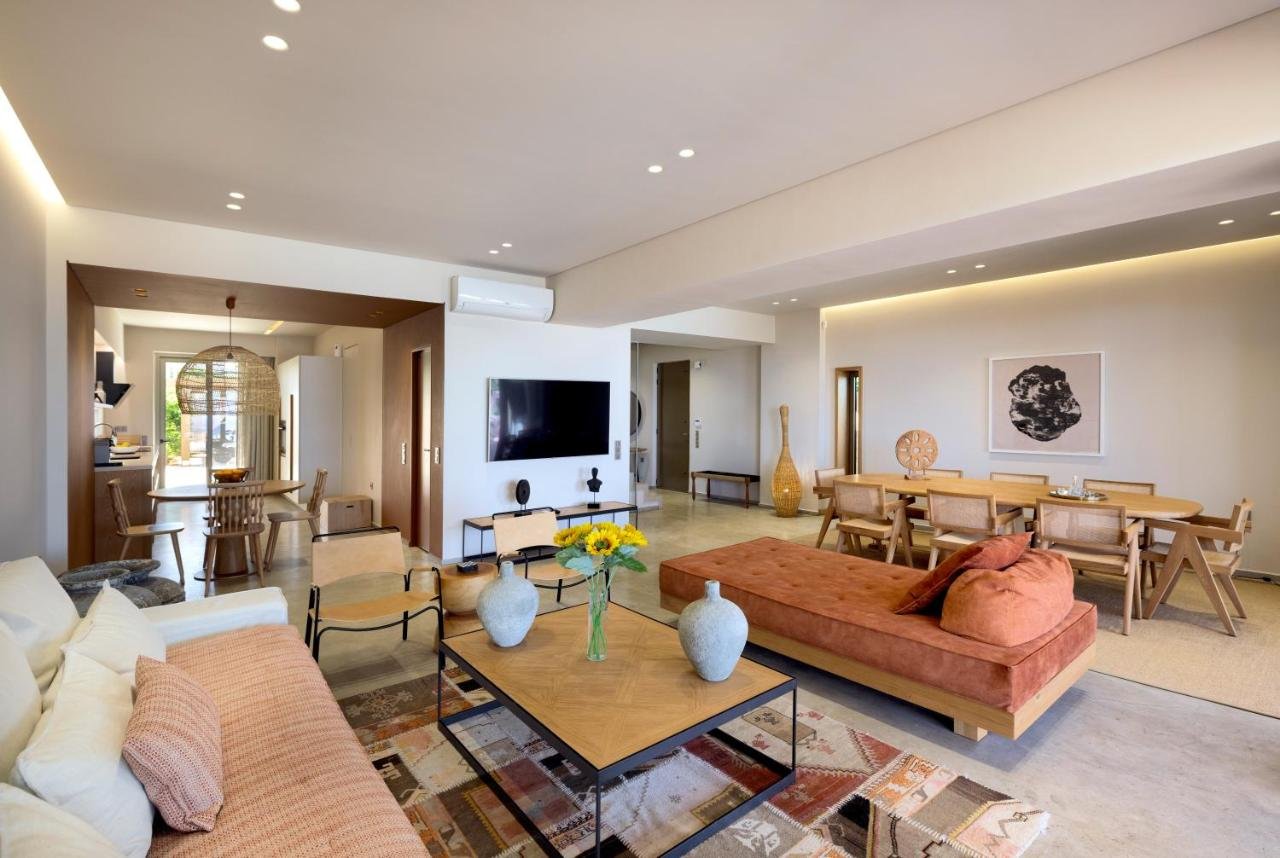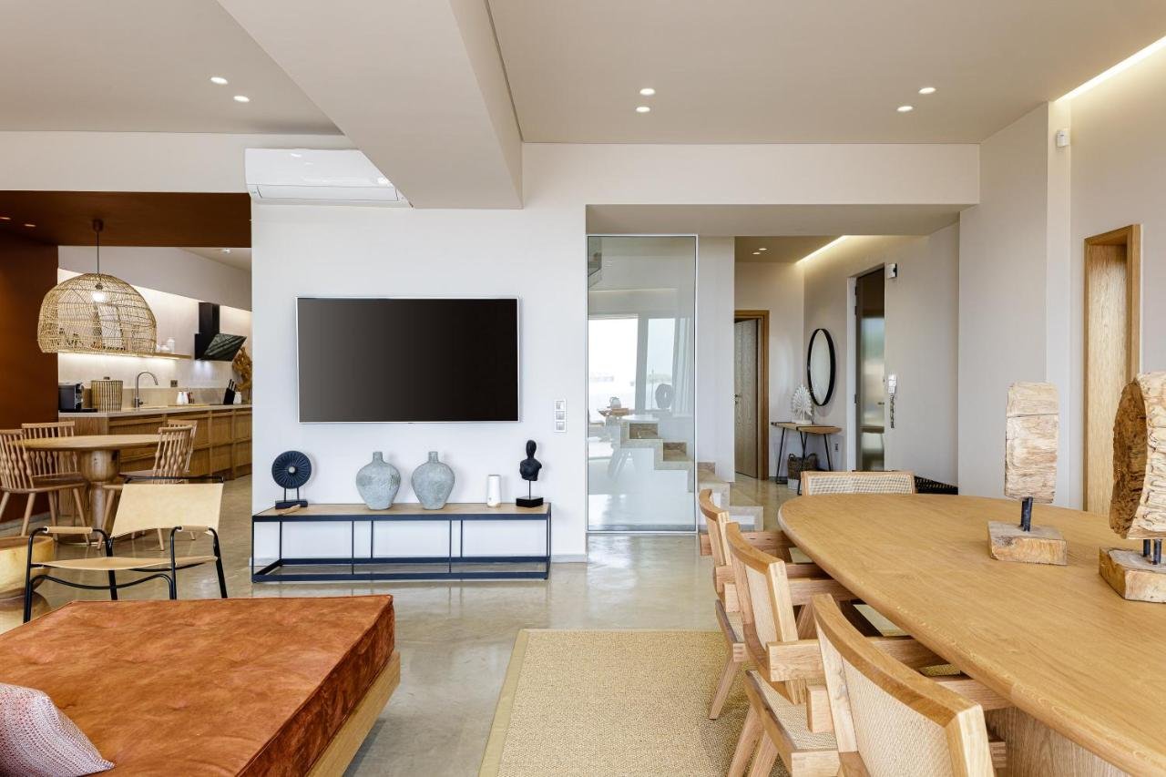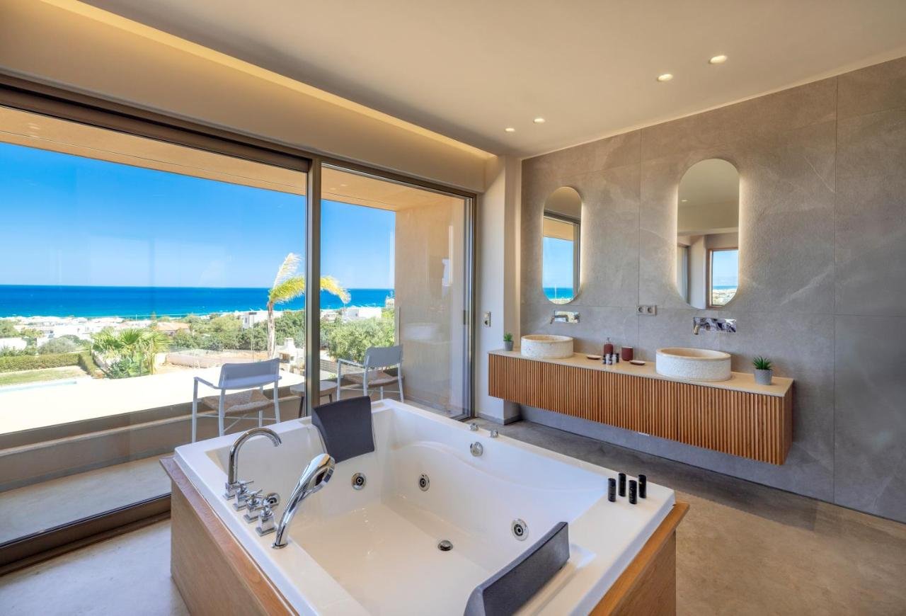 Auralis is a stunning 250 sq.m. contemporary villa set on a 600 sq.m. plot in Anissaras, Hersonissos, just a short walk from the beach, offering unobstructed views of the Cretan Sea. Designed with natural materials and soft Mediterranean tones, the residence unfolds over two levels with four spacious bedrooms and four bathrooms, accommodating up to ten guests. The 40 sq.m. master suite features panoramic sea views, an indoor jacuzzi, and a private sauna, creating a true wellness retreat. Expansive open-plan living areas, a modern kitchen, and sea views from nearly every space enhance the sense of light and luxury. Outdoors, a 50 sq.m. infinity pool, landscaped garden, fire pit, covered dining area with natural gas BBQ, playground, and mini football field create the ultimate setting for relaxation and entertaining. With A+ energy efficiency, smart home technology, fireplace, storage and laundry rooms, walk-in closet, and private parking, this exceptional seafront property is ideal as a private sanctuary or a high-yield investment in one of Crete's most sought-after coastal locations.