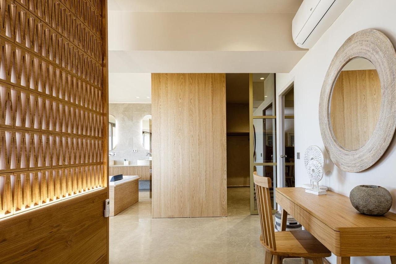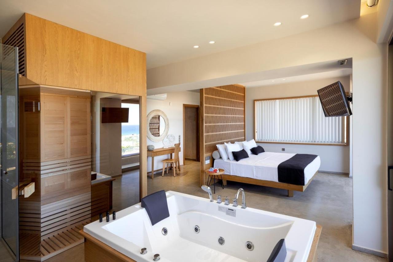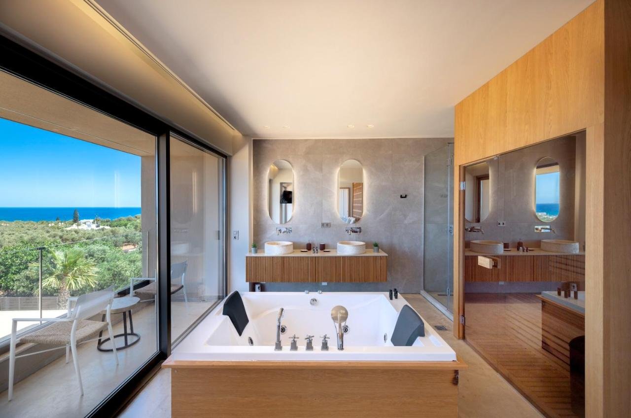 Auralis is a stunning 250 sq.m. contemporary villa set on a 600 sq.m. plot in Anissaras, Hersonissos, just a short walk from the beach, offering unobstructed views of the Cretan Sea. Designed with natural materials and soft Mediterranean tones, the residence unfolds over two levels with four spacious bedrooms and four bathrooms, accommodating up to ten guests. The 40 sq.m. master suite features panoramic sea views, an indoor jacuzzi, and a private sauna, creating a true wellness retreat. Expansive open-plan living areas, a modern kitchen, and sea views from nearly every space enhance the sense of light and luxury. Outdoors, a 50 sq.m. infinity pool, landscaped garden, fire pit, covered dining area with natural gas BBQ, playground, and mini football field create the ultimate setting for relaxation and entertaining. With A+ energy efficiency, smart home technology, fireplace, storage and laundry rooms, walk-in closet, and private parking, this exceptional seafront property is ideal as a private sanctuary or a high-yield investment in one of Crete's most sought-after coastal locations.