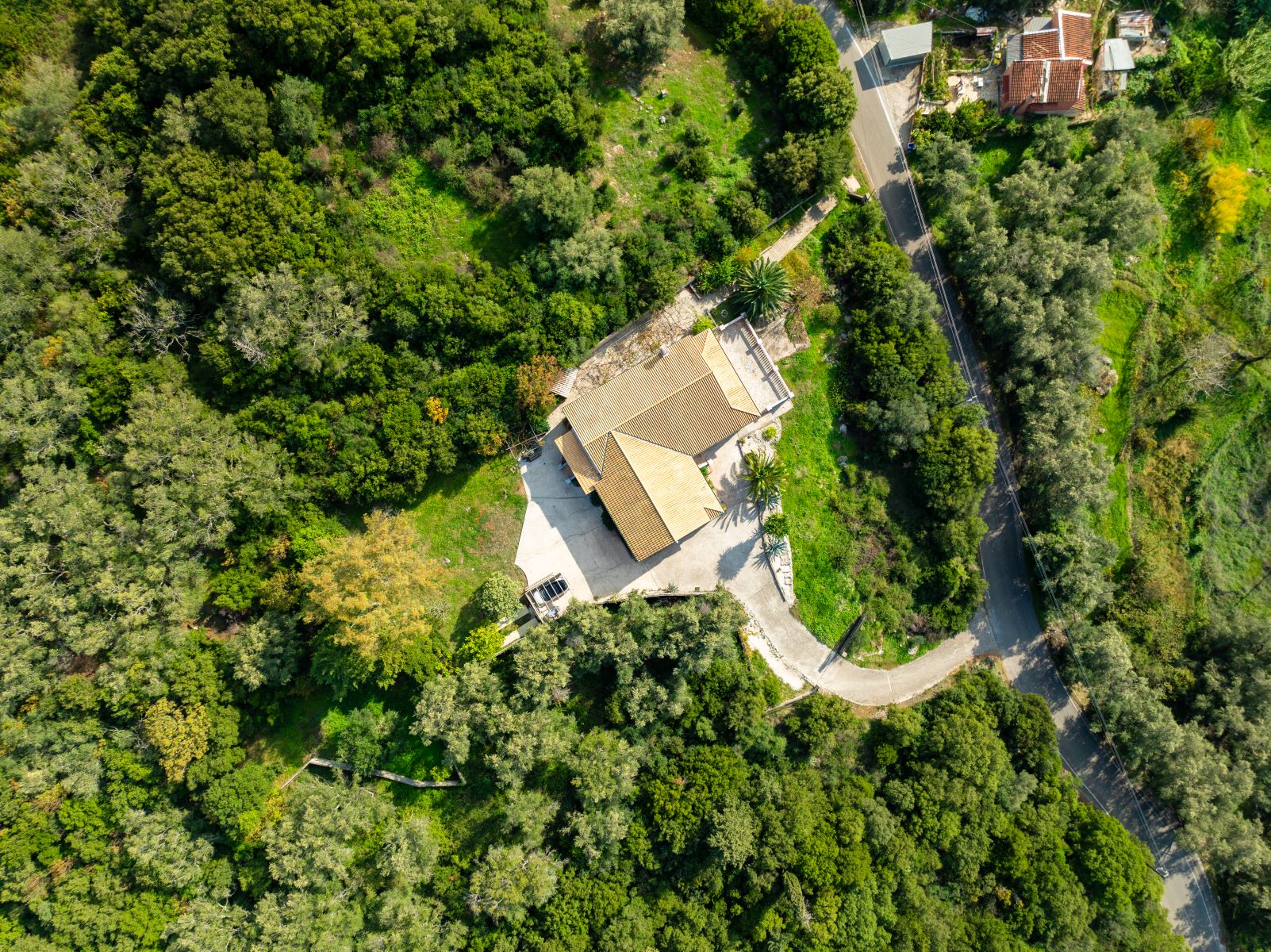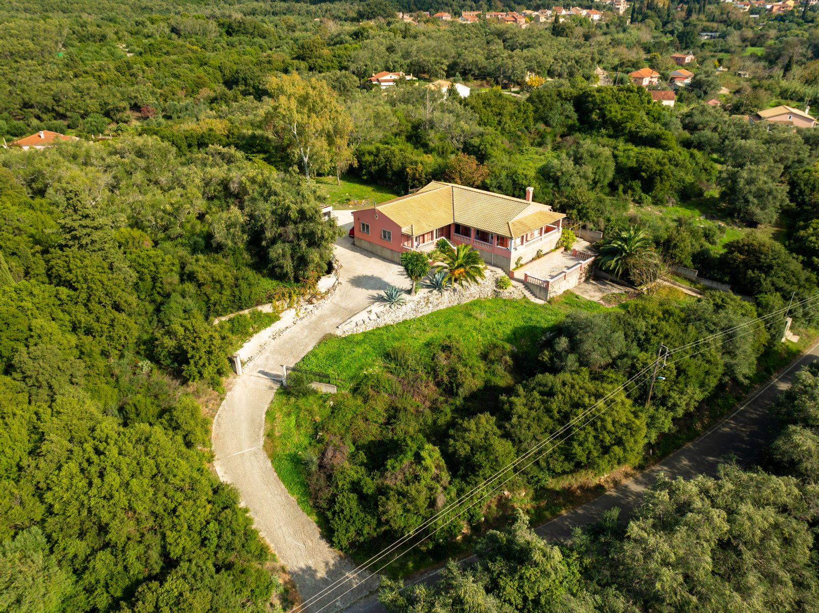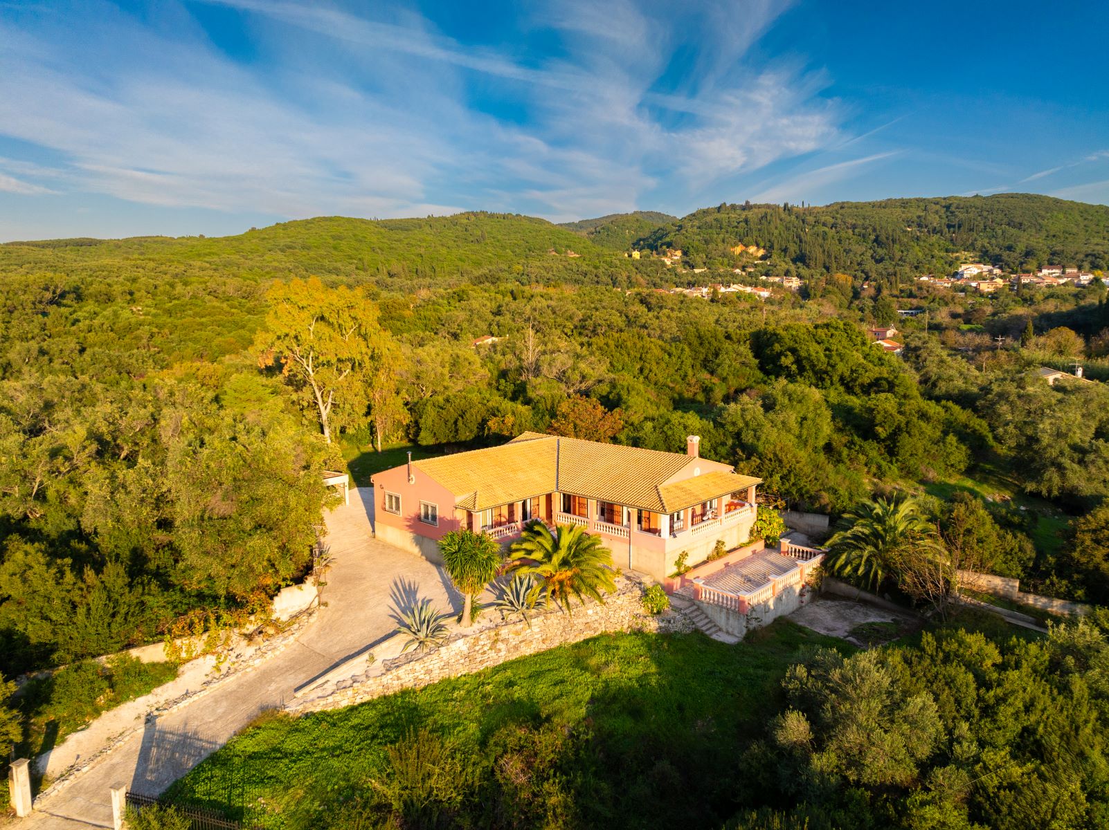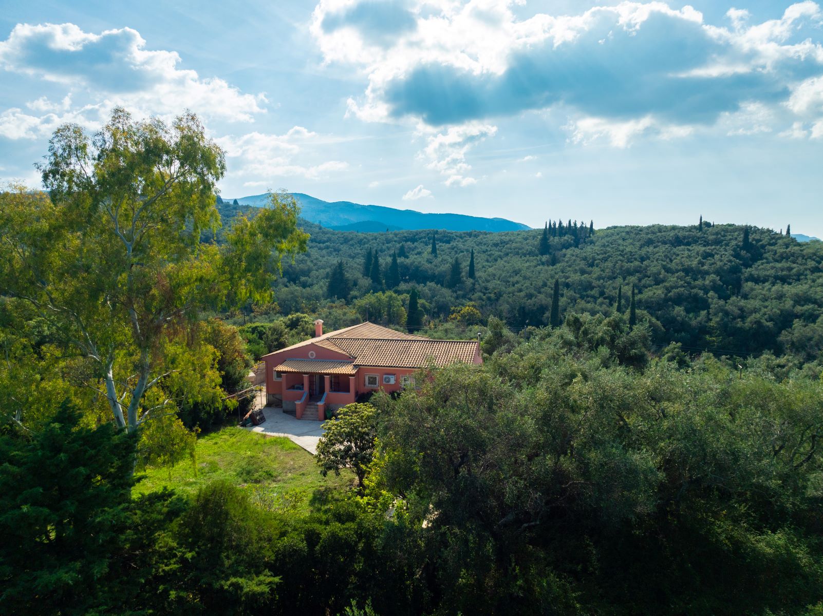 It is located near the Waterfalls of Kiprianades in a unique natural landscape while the spot is ideal for hiking throughout the NW part of Pantokrator. The area where it is built is one of the greenest in Corfu, if not the greenest, with numerous points in the wider area to explore while in close proximity are the Waterfall of the Nymphs as well as the “Anthropograva” Cave of Klimatia.