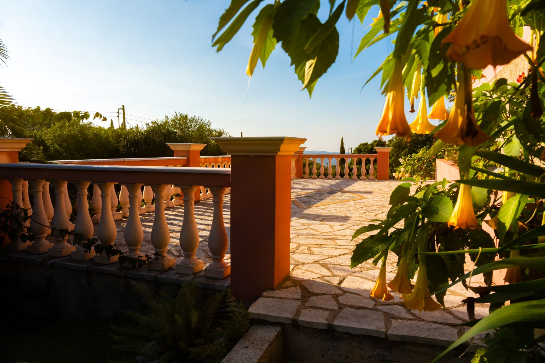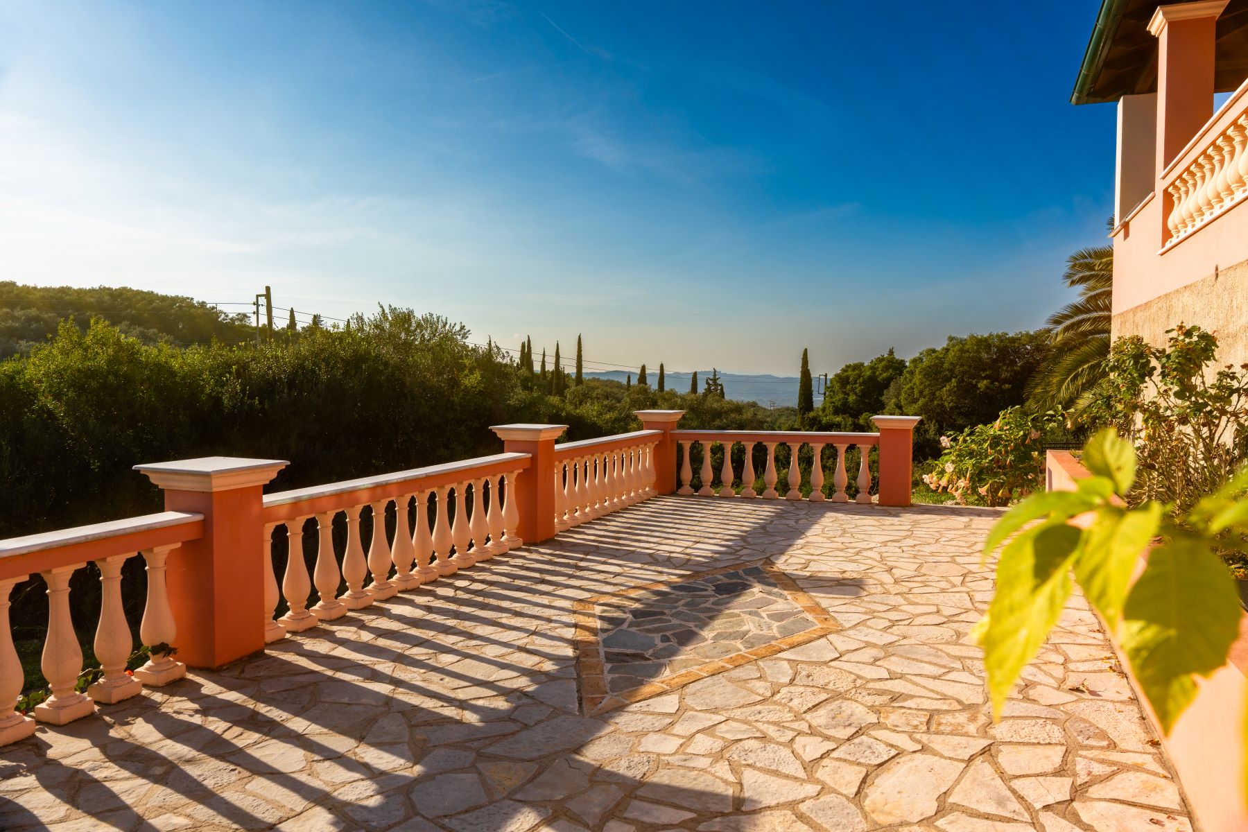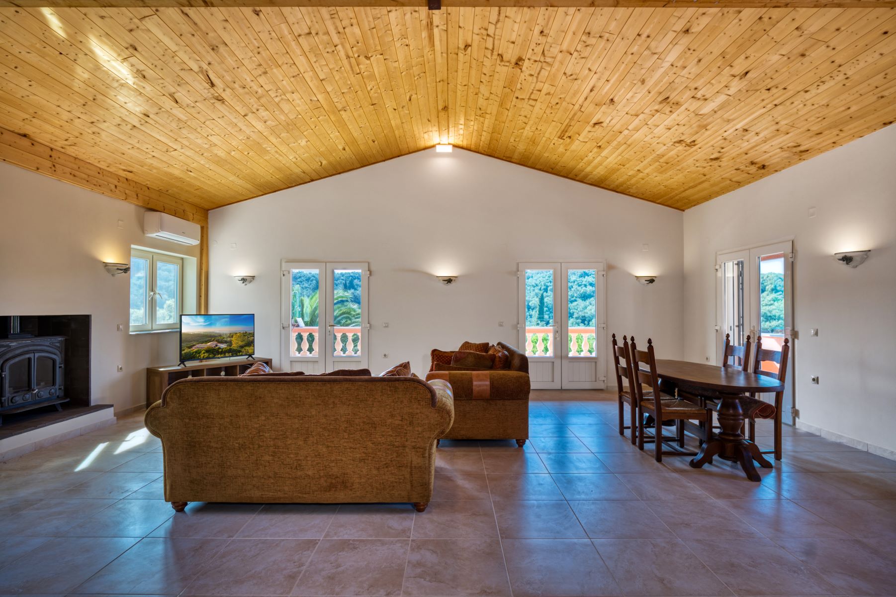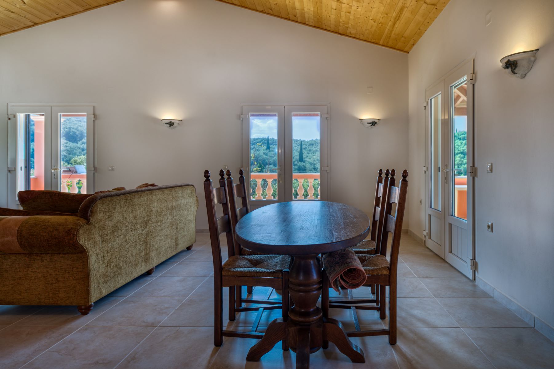 It is located near the Waterfalls of Kiprianades in a unique natural landscape while the spot is ideal for hiking throughout the NW part of Pantokrator. The area where it is built is one of the greenest in Corfu, if not the greenest, with numerous points in the wider area to explore while in close proximity are the Waterfall of the Nymphs as well as the “Anthropograva” Cave of Klimatia.