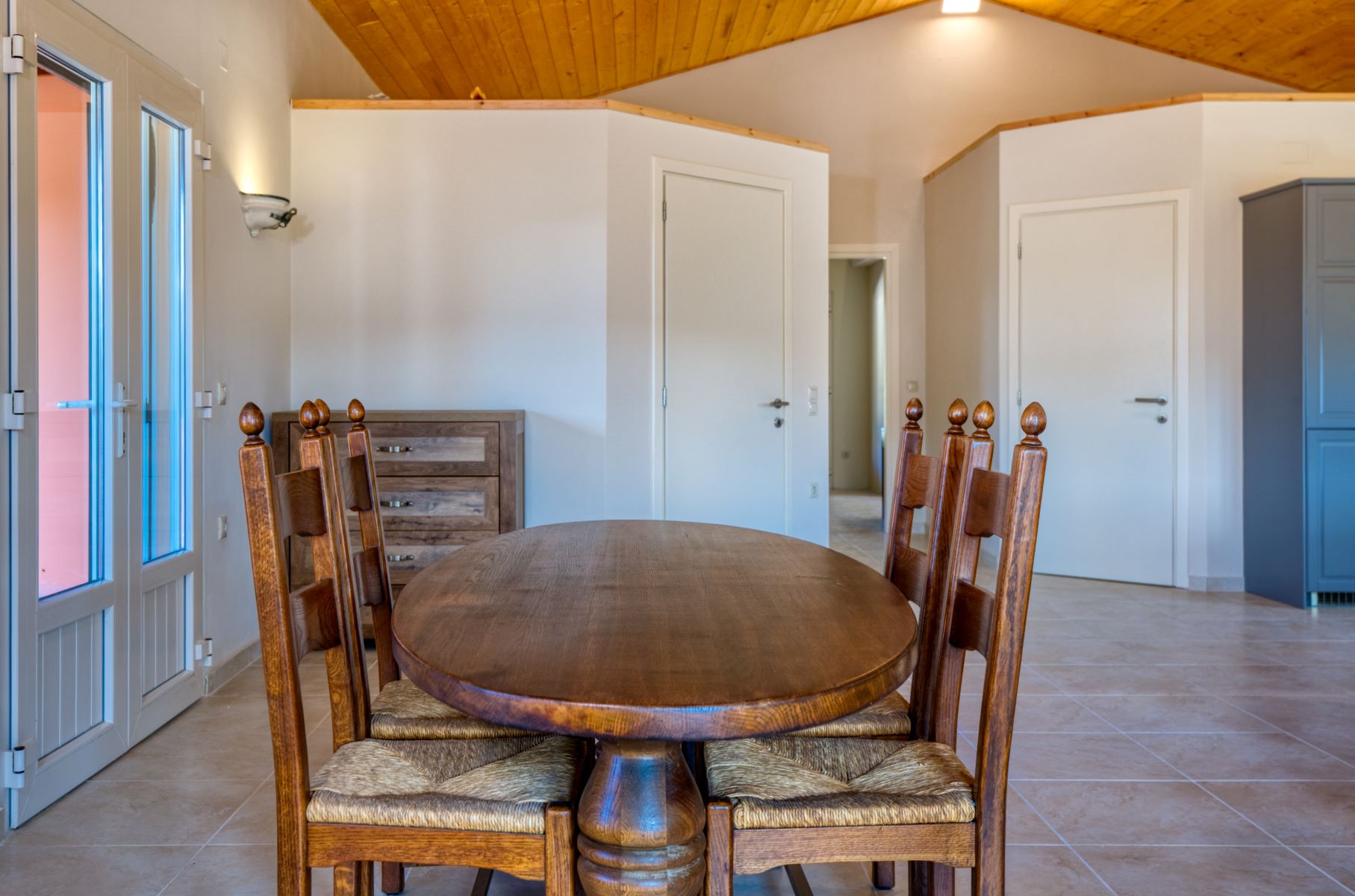 For sale is a spacious newly built villa, built in 2020 in the area of Klimatia in North Corfu. It is located 10 minutes by car from the coast, built on the edge of a lush green hill before the entrance of the village with a view of all the green hills of the area. Its view starts from the hill of Klimatia, the hills of Kiprianades and reaches the Canal D’Amour at the bottom of the olive grove.