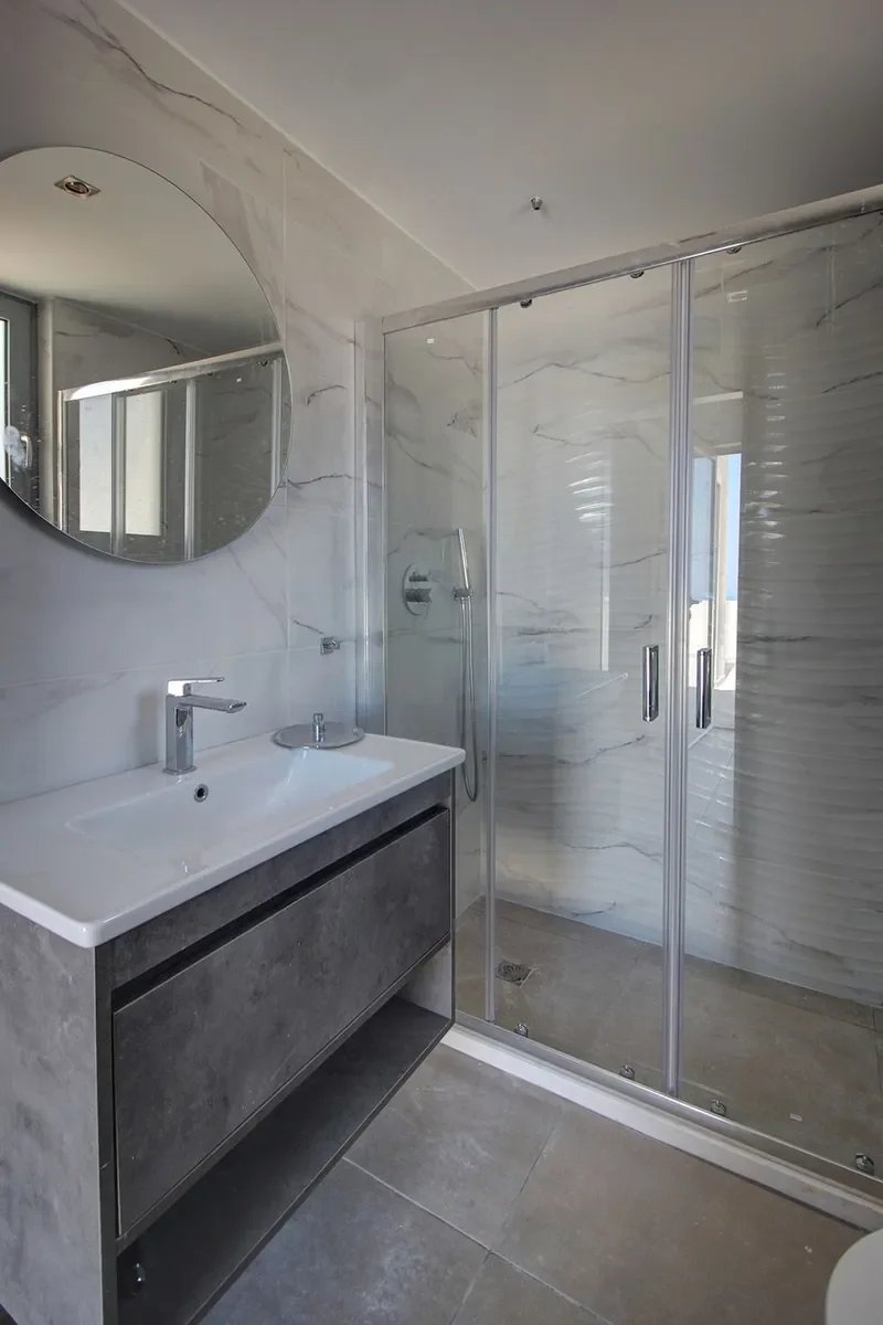 The maisonette includes a private garden and a veranda with open sea views. Both levels enjoy beautiful sea views and serene scenery with lush trees, creating a peaceful and naturally elegant environment.