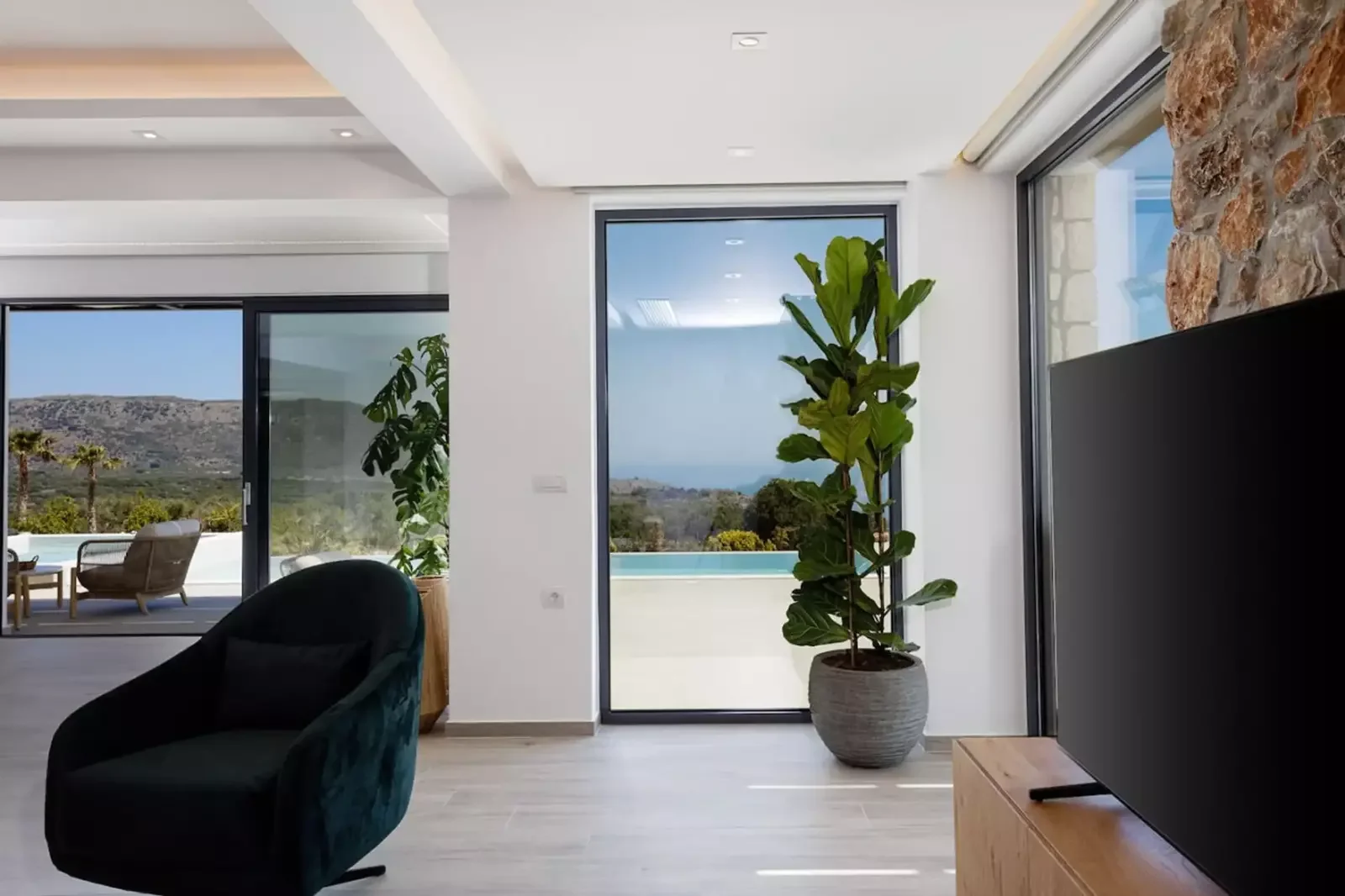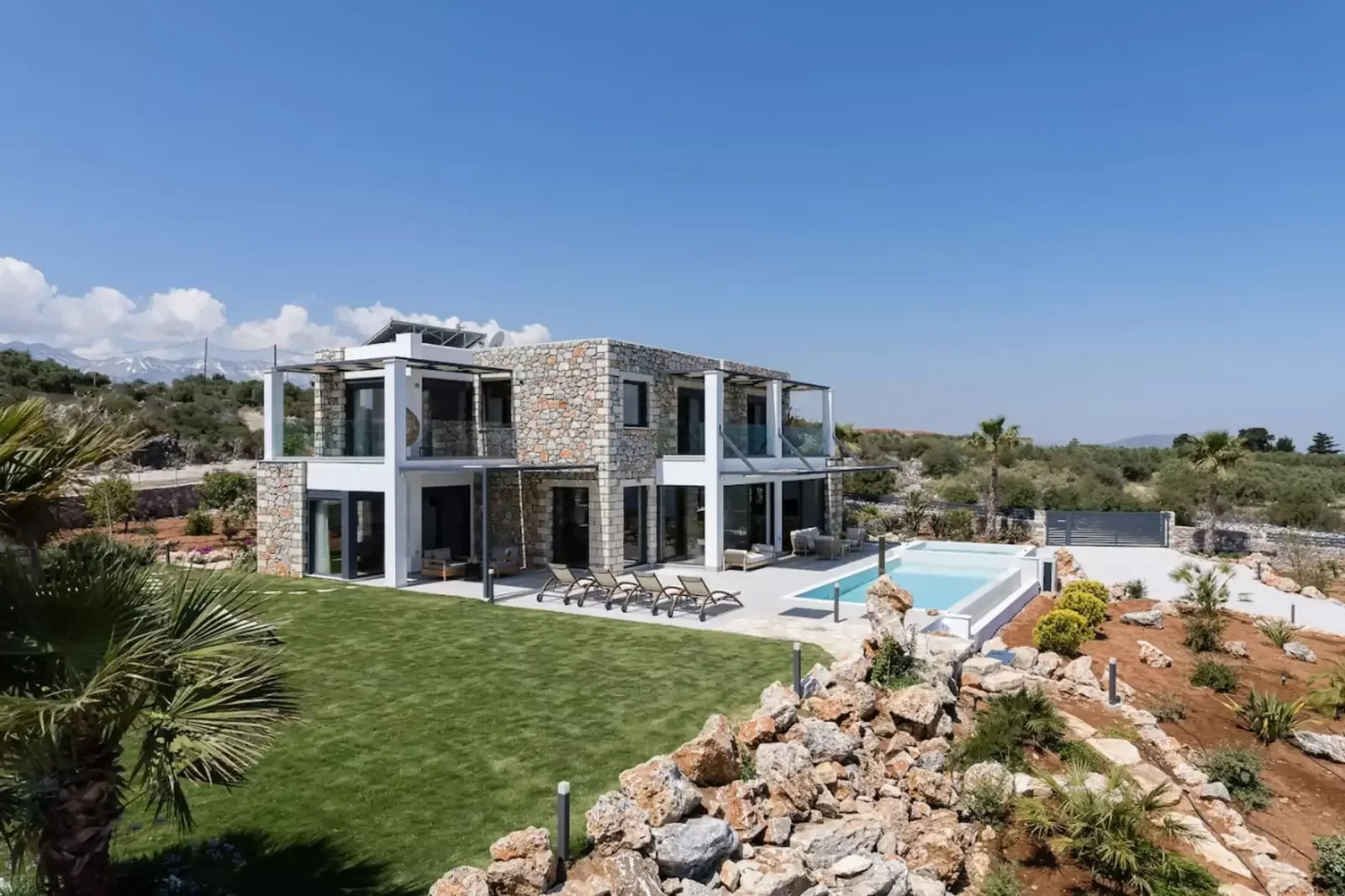 Set on a peaceful hillside in Kefalas, in the Apokoronas region of Western Crete, Oasis Villas represents the essence of modern Mediterranean living. With breathtaking 180° views of the sea, the White Mountains, and the distant coastline of Rethymno, this newly built villa combines architectural elegance, privacy, and strong investment potential.
