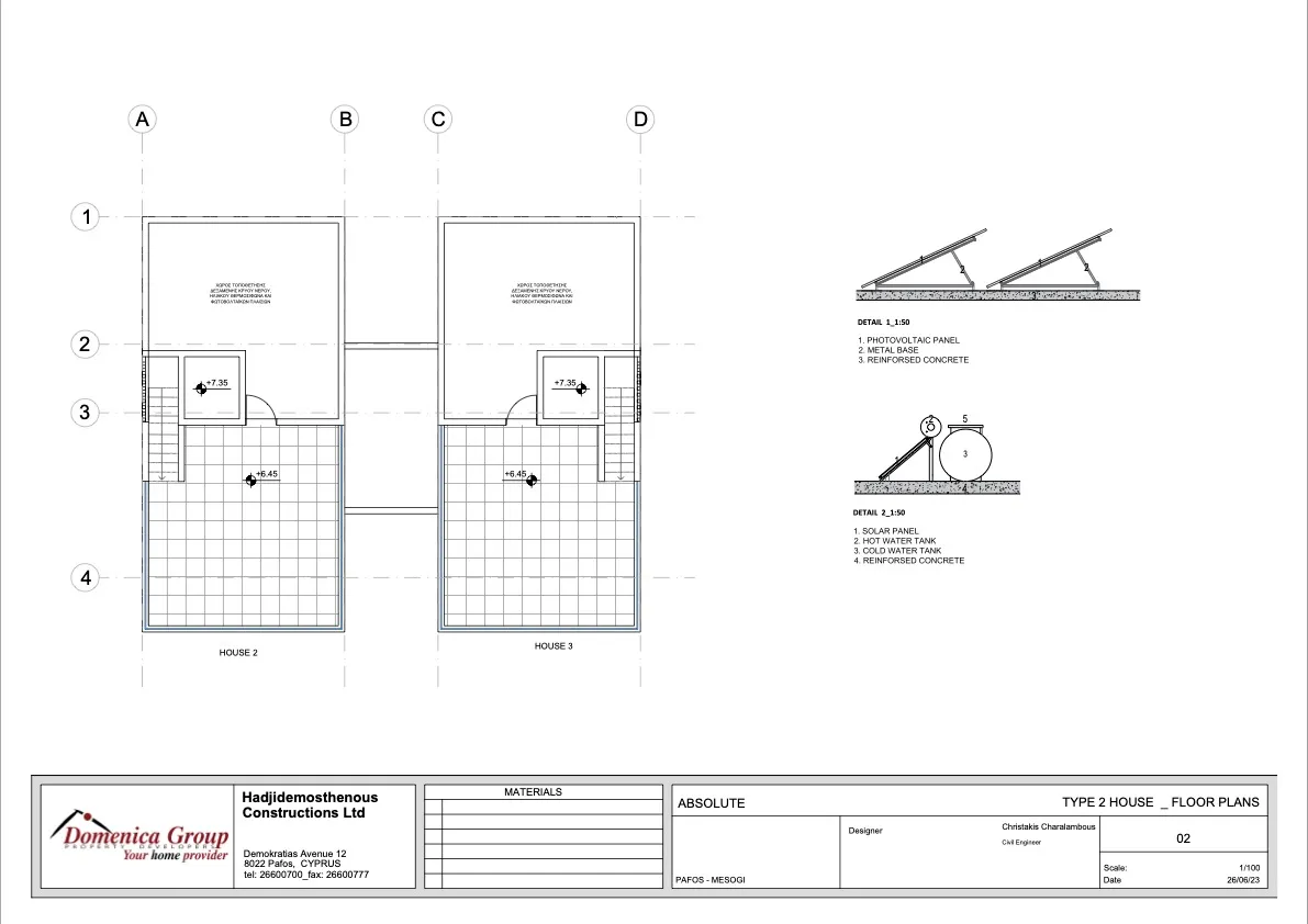 Located in a residential area just 500 meters from the International School of Pafos, these three-bedroom, three-bathroom villas are perfect for permanent living. Situated within the designated Pafos Educational Area, there are seven schools within a four-minute drive, and Pafos General Hospital is only three minutes away. The project features 14 exceptionally spacious and stunning villas, each elegantly designed. All villas offer the added benefit of a spacious roof terrace equipped with a roof bar, perfect for enjoying the Cypriot outdoor lifestyle and maximizing the surrounding views. The price includes an alarm system, security cameras, an intercom and a 3kW photovoltaic system, with provisions for an electric car charger. The project also provides the option for added swimming pools.